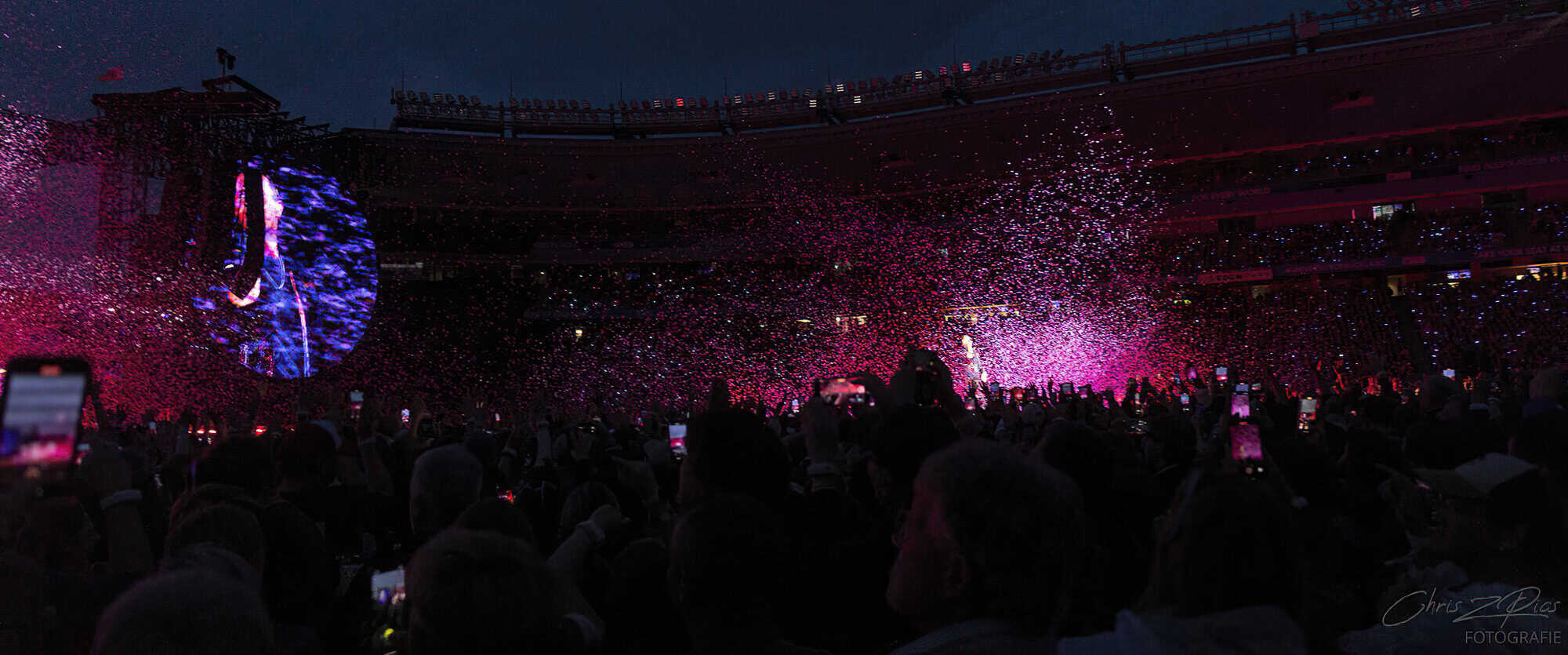 ColdplayWe are asked to put our phones away for A Sky Full Of Stars and are rewarded with tiny stars fluttering down from the night sky.