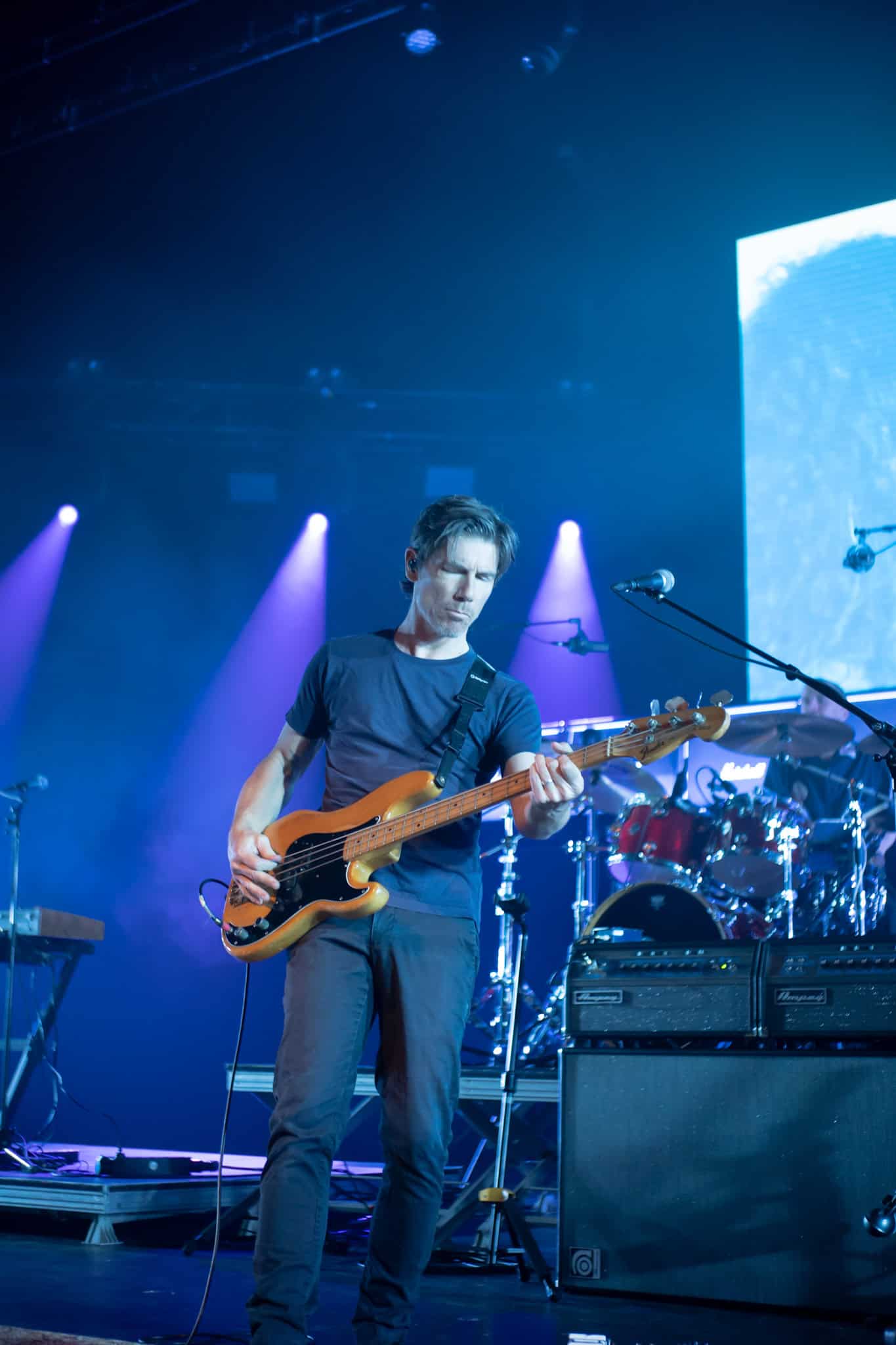 Next, Never Tear Us Apart gave the audience another chance to flex their vocal cords in preparation for the unexpected highlight: Jennie, in a Cold Chisel tee, leading a full-venue singalong of You’re the Voice. Turns out we were all the voices — Jennie said she was going to run out of hers. She and her T-shirt held the spotlight with Forever Now, followed by Jon giving Reckless the full treatment, with some lovely guitar work from Mulholland.