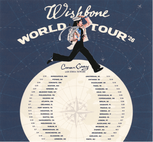 Multi-platinum singer-songwriter Conan Gray has announced his highly anticipated 2026 Wishbone World Tour with special guest Esha Tewari, in support of his critically acclaimed fourth studio album Wishbone (Republic Records).