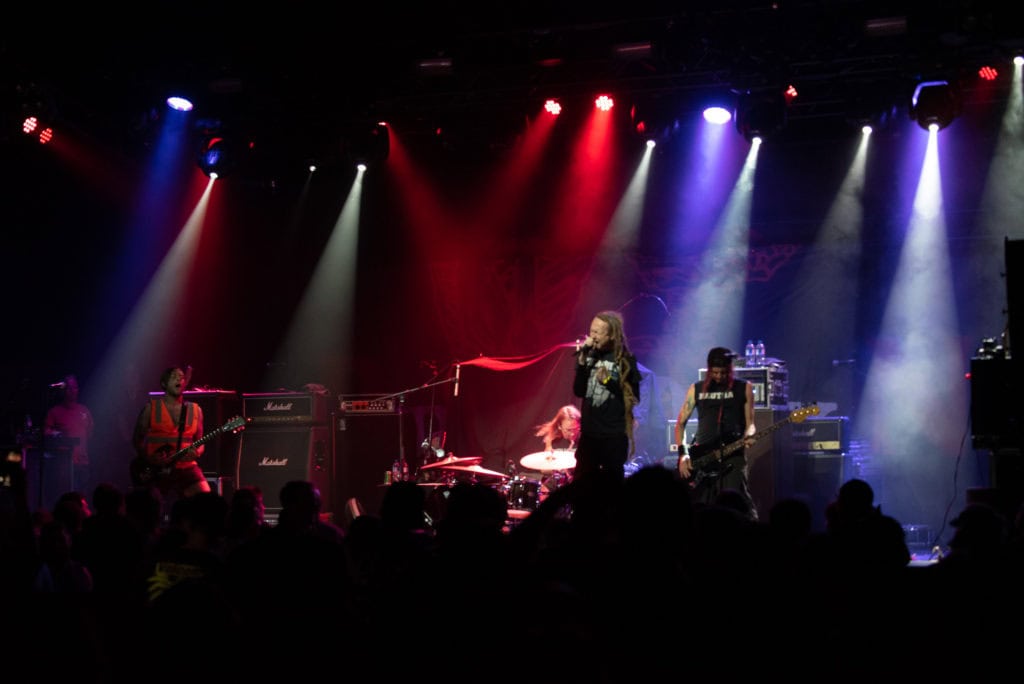 The only issue with their performance was an imbalance of volume – with vocals largely drowned out amidst thunderous drums and screeching guitar – which thankfully cleared up shortly before the end of their set. This wasn’t too distracting for the majority of their time on stage, as many of their numbers were clearly developed for aggressive head-banging and moshing, but it meant that any lyrically dense songs fell flat, consequently flattening the feel of the instruments together as a whole.
