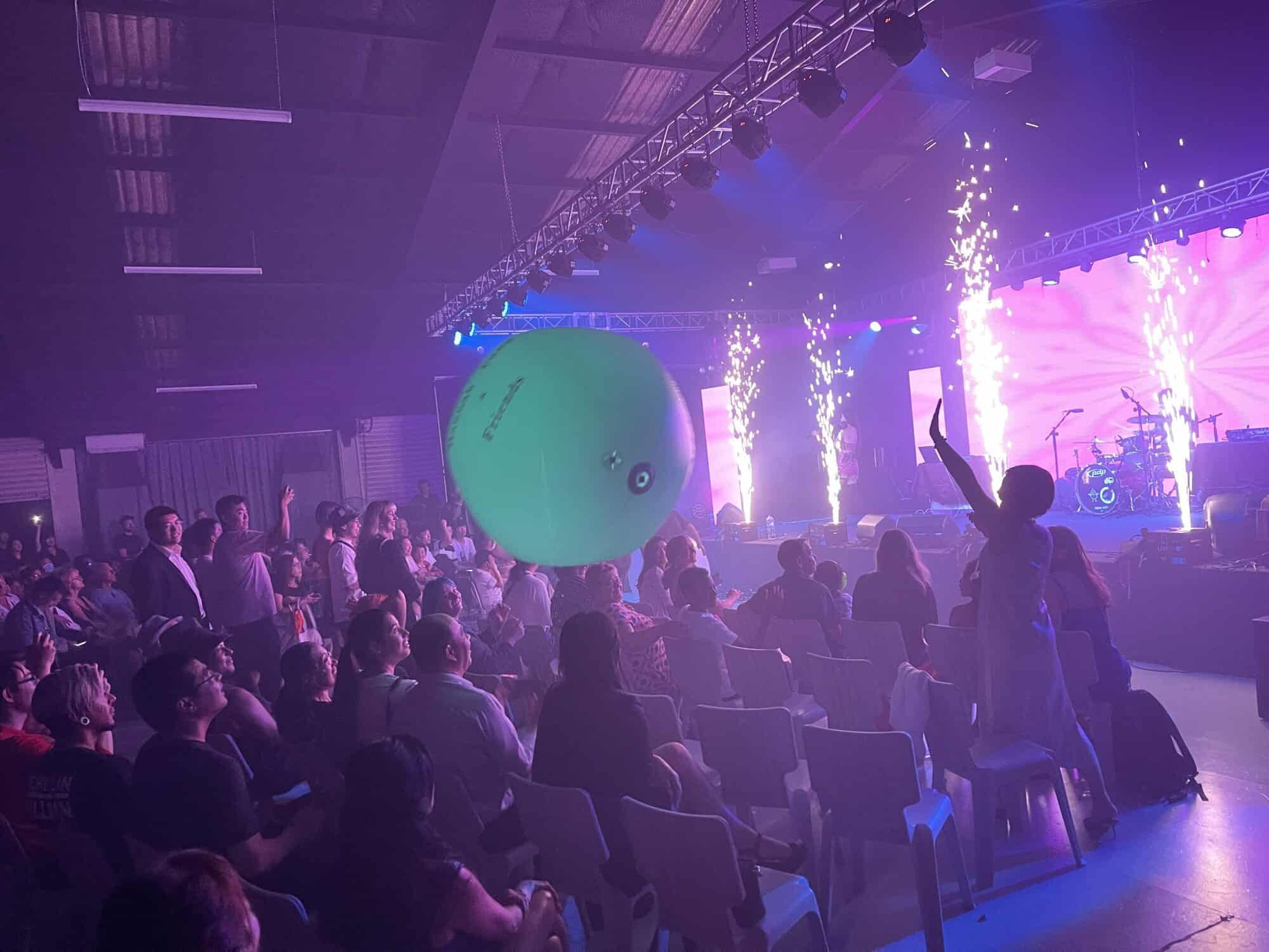 Sure enough, this was the place. The stage looked flashy even if the room lacked a “vibe”. A good crowd filled the plastic chairs… lots of children, families, etc.