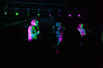 The threesome have a cool, comfortable presence; Yery makes the front of the stage her own, Carl emerging from behind his equipment table a few times to share mic duties. Their chemistry is like that of two kids at the back of a classroom lost in shared fantasies, uninterested in the real world drifting by.