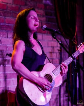 She will be playing with a band the following night, but tonight it’s acoustic and presented in their origin forms.