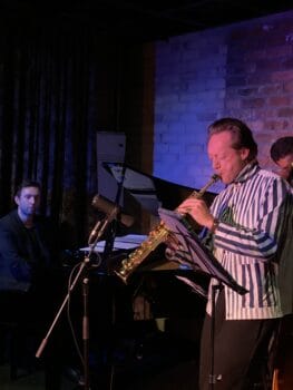 Martyniuk invites Nathan Haines to the stage for Java Blues, and they rock instantly. Nathan dances around Martyniuk’s beautiful and sickly chords in the lower mids of the piano, chromatic, dark, spooky, lurksome. No one plays the soprano sax like Nathan plays the soprano sax. People hoot and holler at the licks because that’s the kind of shit you can do at Ponsonby Social Club. Living jazz. Nacey bebops, Samsom goes tribal, and the band takes a break.