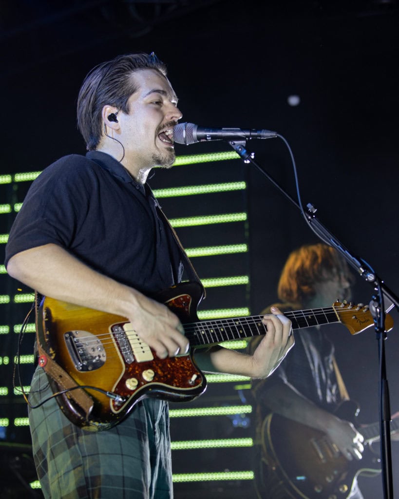 There’s nothing inherently wrong with having a DJ as an opener at a gig, but its success is so often hit-and-miss due to dependency on the crowd, venue, general atmosphere and what they offer the crowd in pre-show energy. Much of the audience – who had wedged themselves together into a mass of bodies in the lower section of the venue – tried their best to attach some sort of consistent vibe to the hour-long set, but slowly faded into talking to their friends in small groups as the temperature rose and the atmosphere grew increasingly soupy with steam.