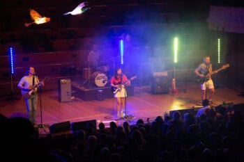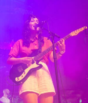 I remember watching the waves roll in, numbered in the thousands. The Beths are basking in waves of triumphant spirit as their towering Pop anthem, Jump Rope Gazers, is radiating through the packed Auckland Town Hall. With an extra boost of inspirational energy, as is their whole show tonight.