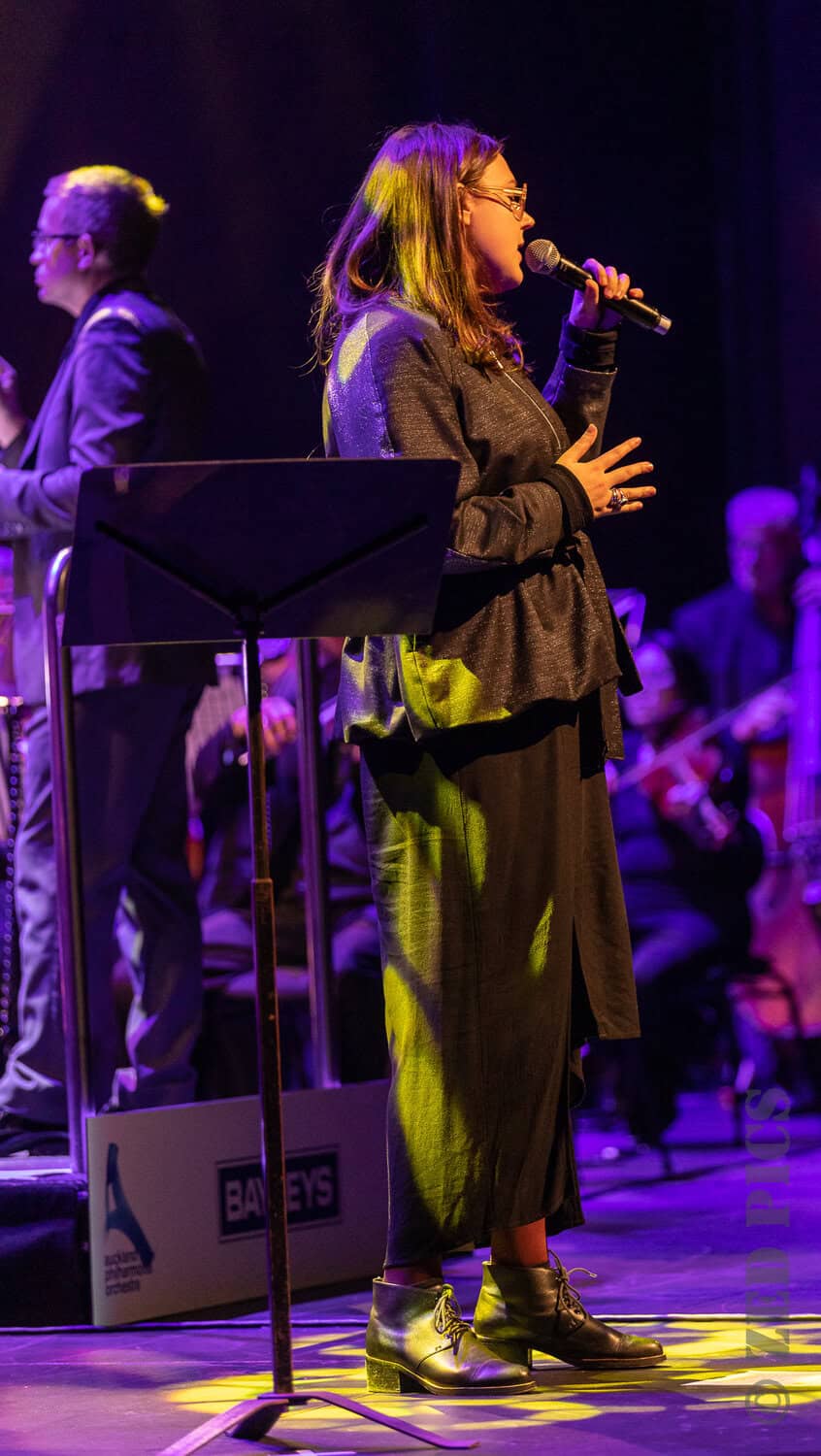 The three vocalists sat on stools off to stage left (directly in front of me) and Anna Coddington was first up to sing Don McGlashan’s Anchor Me.  Let’s face it, this song always sounds wonderful, and tonight was no exception. Anna is probably the least-known of the three vocalists, but her confidence, experience and voice makes her the best-suited for this setting.