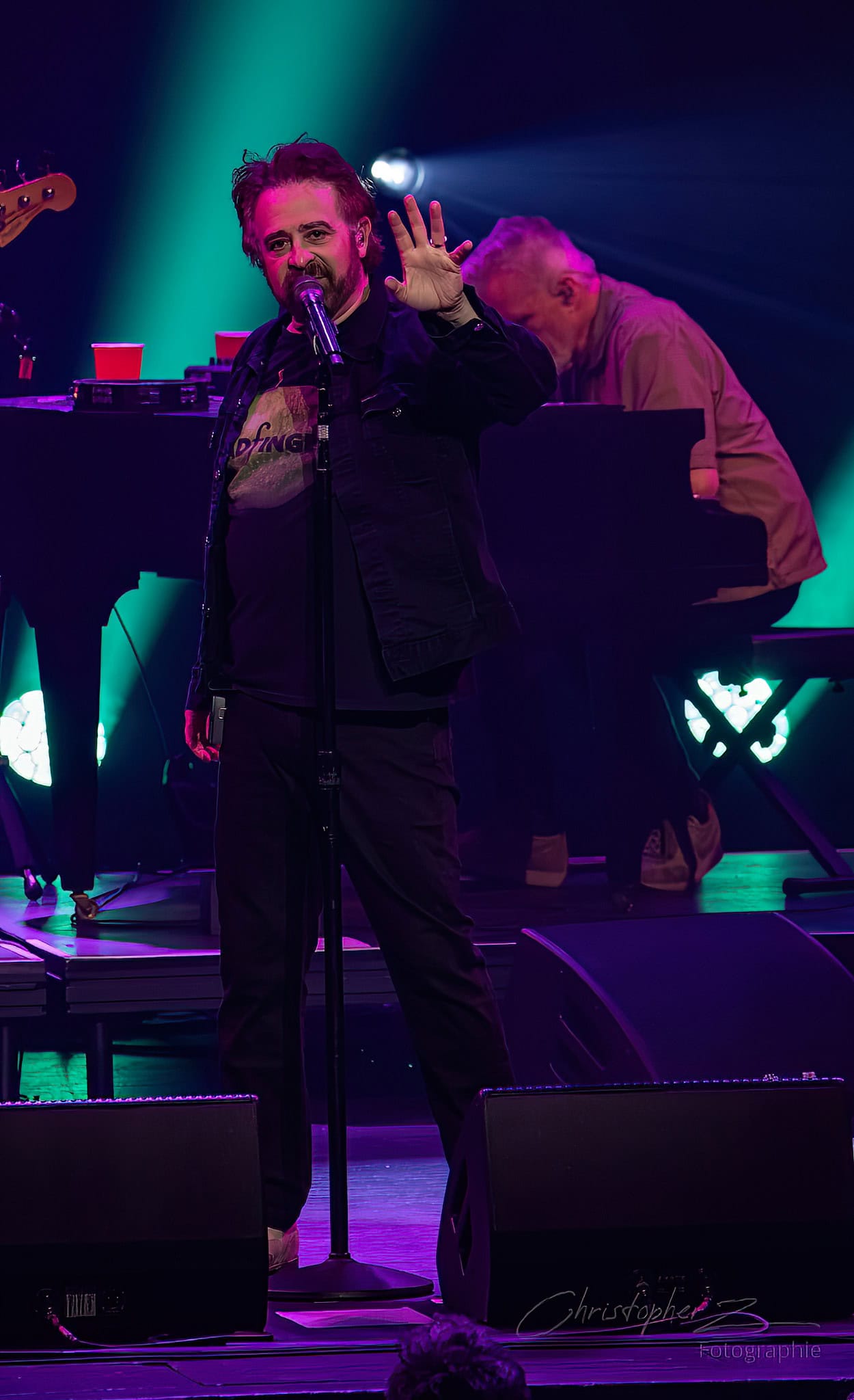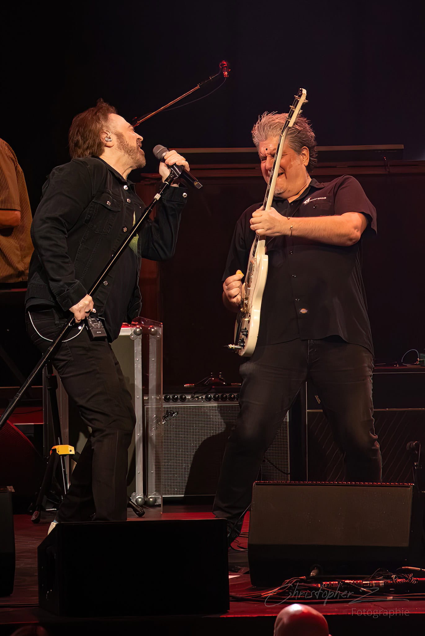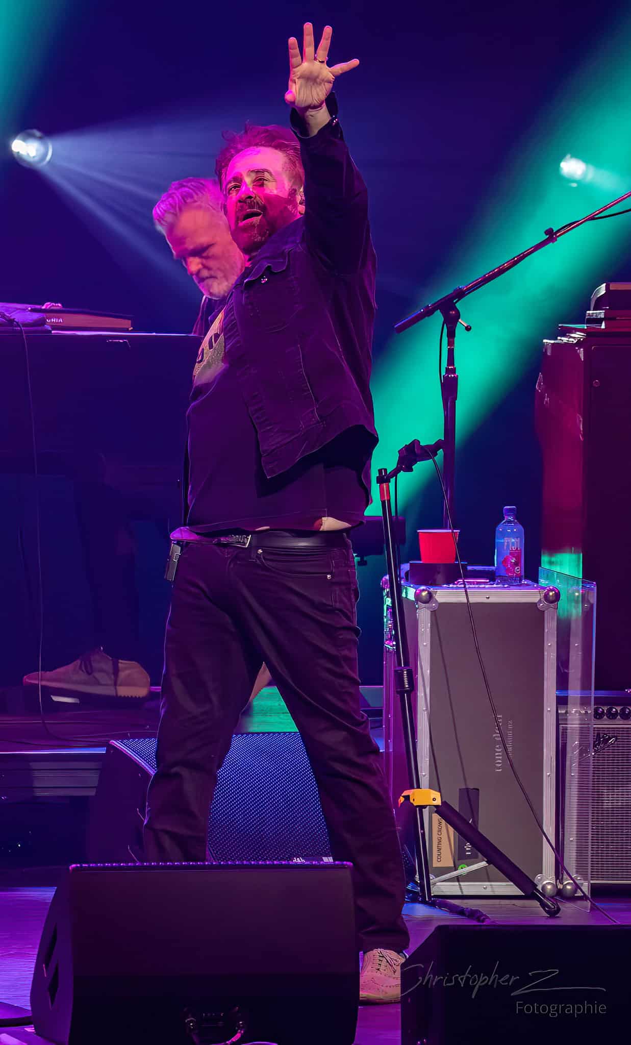 The band played Cover Up The Sun, then straight into the ballad If I Could Give All My Love -or- Richard Manuel is Dead. Duritz wandered over to lead guitarist Dan Vickrey partway through the song, mic in hand. The band stopped. The duo took up the space to sing in harmony together, shared emotion emanating outwards from them.