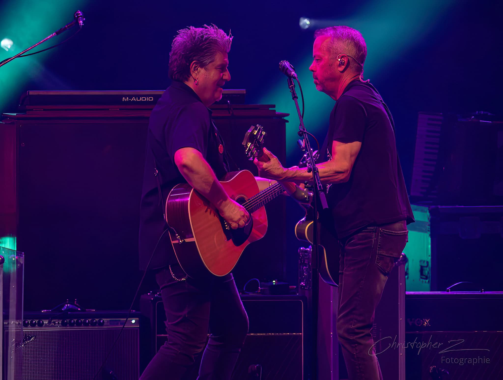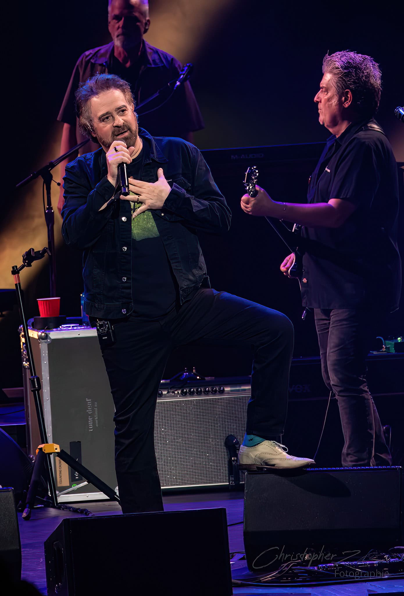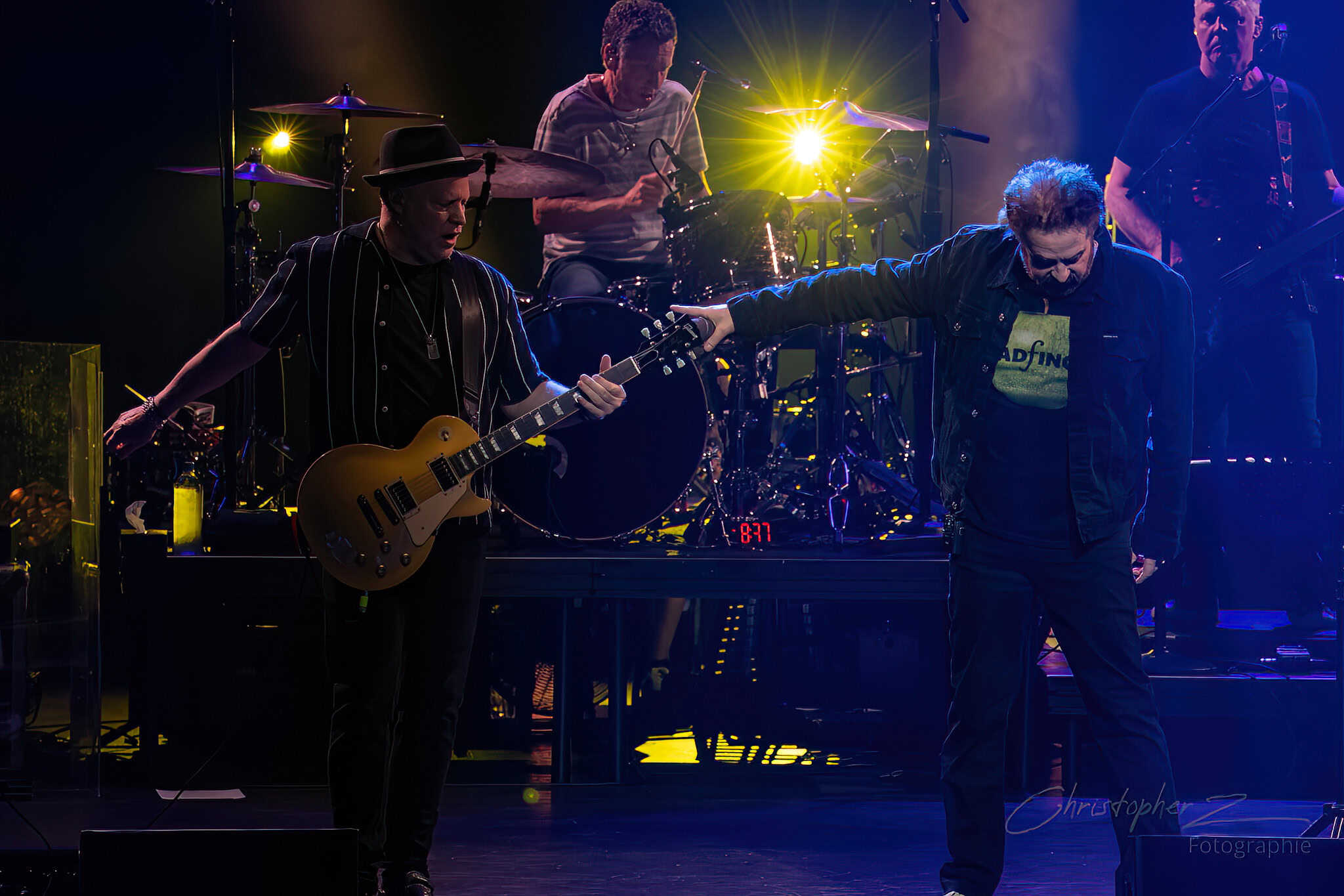 The band played Cover Up The Sun, then straight into the ballad If I Could Give All My Love -or- Richard Manuel is Dead. Duritz wandered over to lead guitarist Dan Vickrey partway through the song, mic in hand. The band stopped. The duo took up the space to sing in harmony together, shared emotion emanating outwards from them.