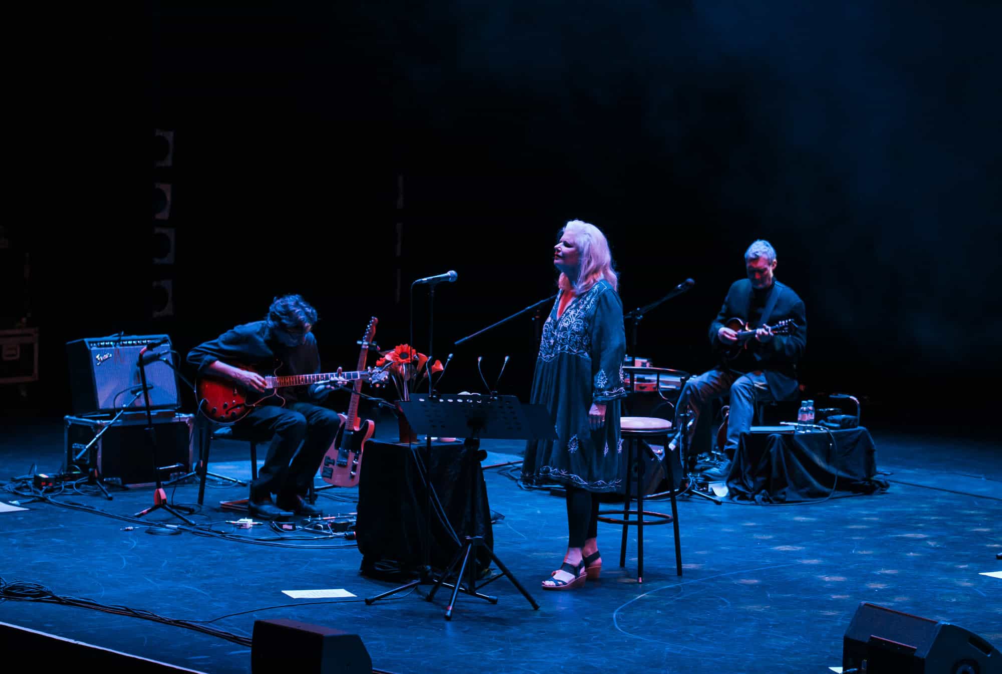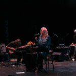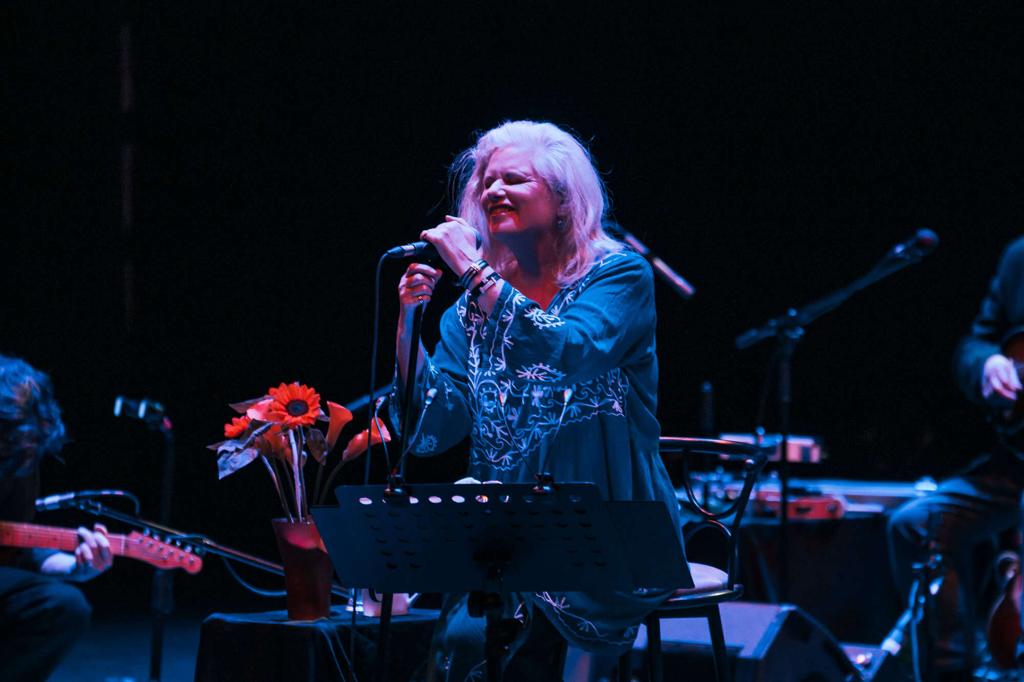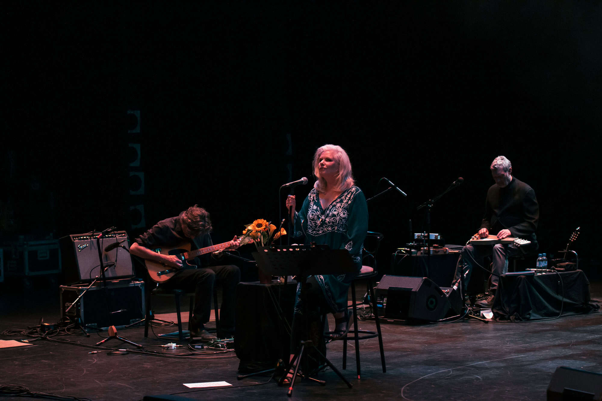 So, at 8:40pm, the lights went down and cheers went up as Cowboy Junkies took the stage. There are five of them tonight…Margo, Peter and Michael Timmins, Alan Anton on bass and Jeff Bird on mandolin, lapsteel, harmonica and percussion. As we would soon hear, Jeff Bird , although not an official bandmember, is the secret sauce to the Junkies’ on stage sound.