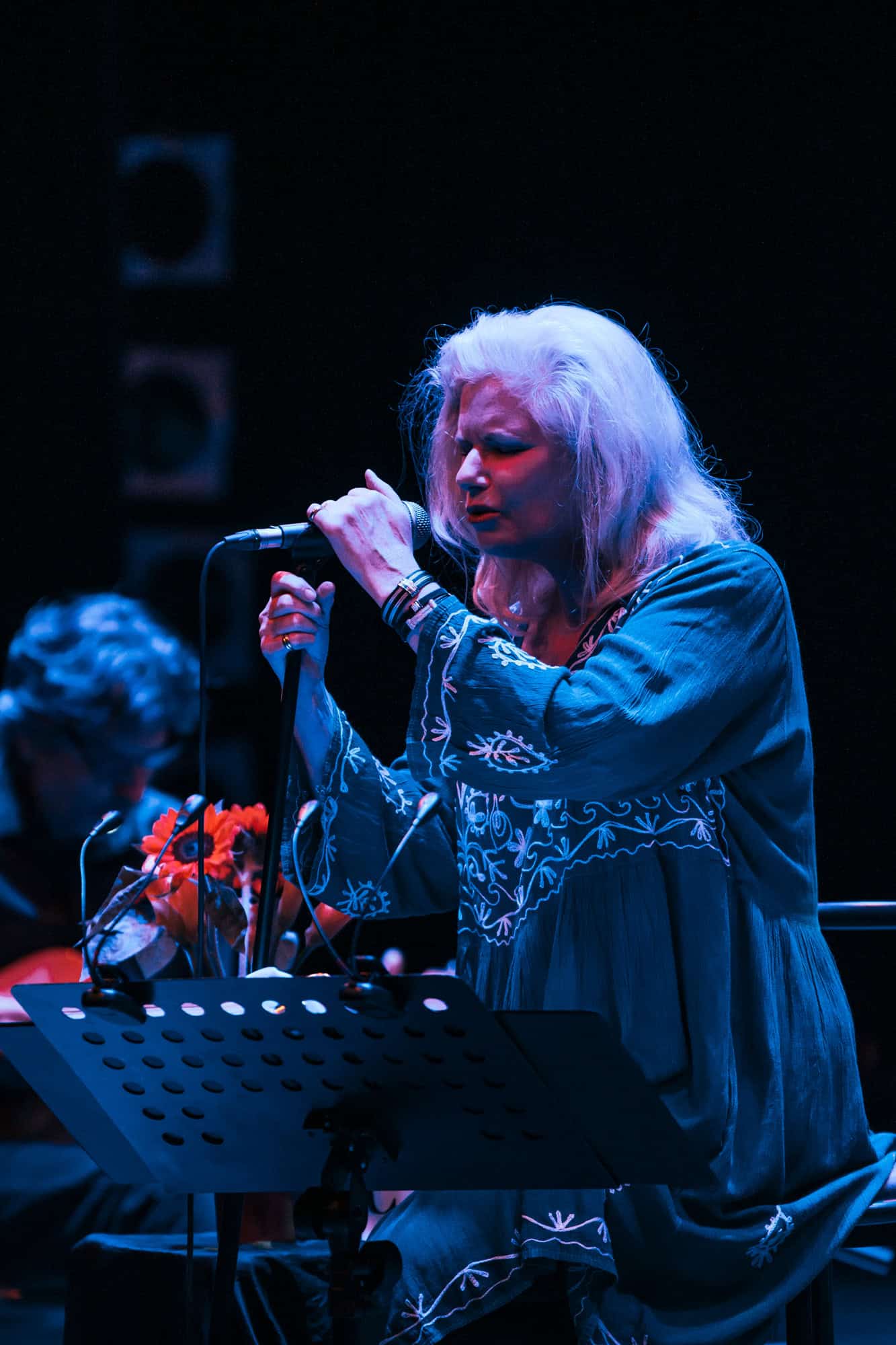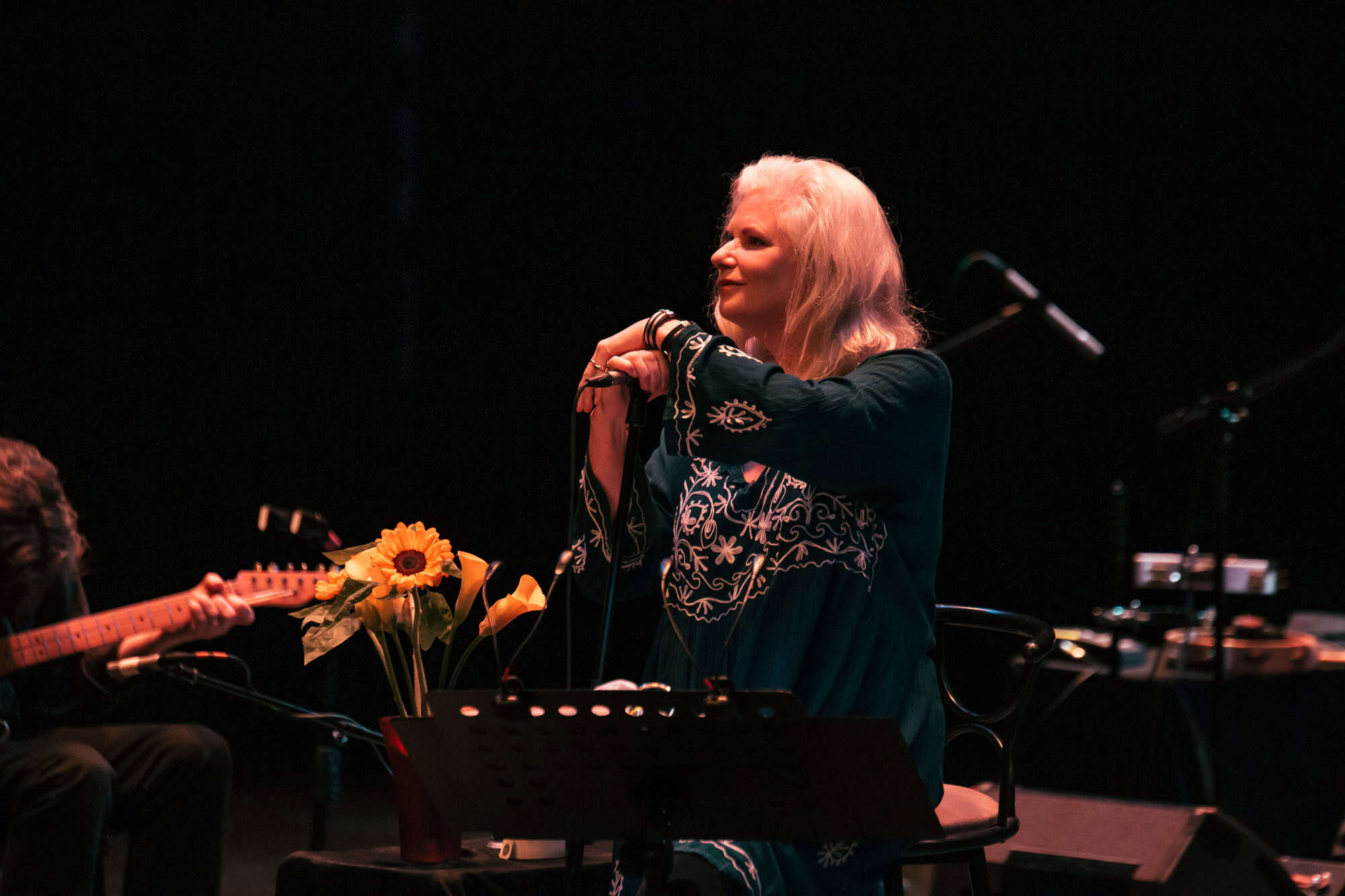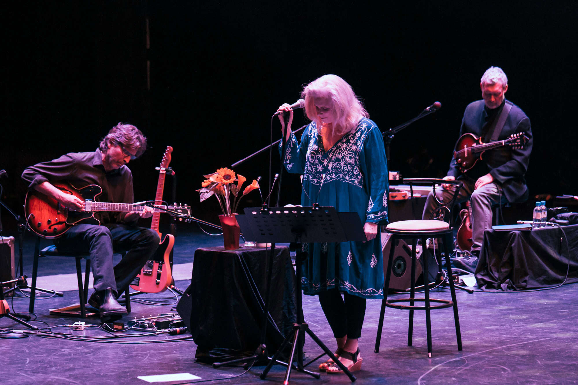 So, at 8:40pm, the lights went down and cheers went up as Cowboy Junkies took the stage. There are five of them tonight…Margo, Peter and Michael Timmins, Alan Anton on bass and Jeff Bird on mandolin, lapsteel, harmonica and percussion. As we would soon hear, Jeff Bird , although not an official bandmember, is the secret sauce to the Junkies’ on stage sound.
