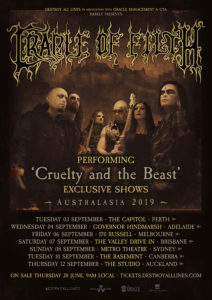 CRADLE OF FILTH Performing ‘Cruelty and the Beast In Full’ Australian and NZ Tour