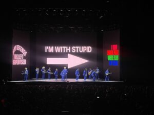 That’s right…Byrne and his 12-piece band played for a solid 105 minutes without once stopping down to tune…anything. And the sound was fabulous from beginning to end.