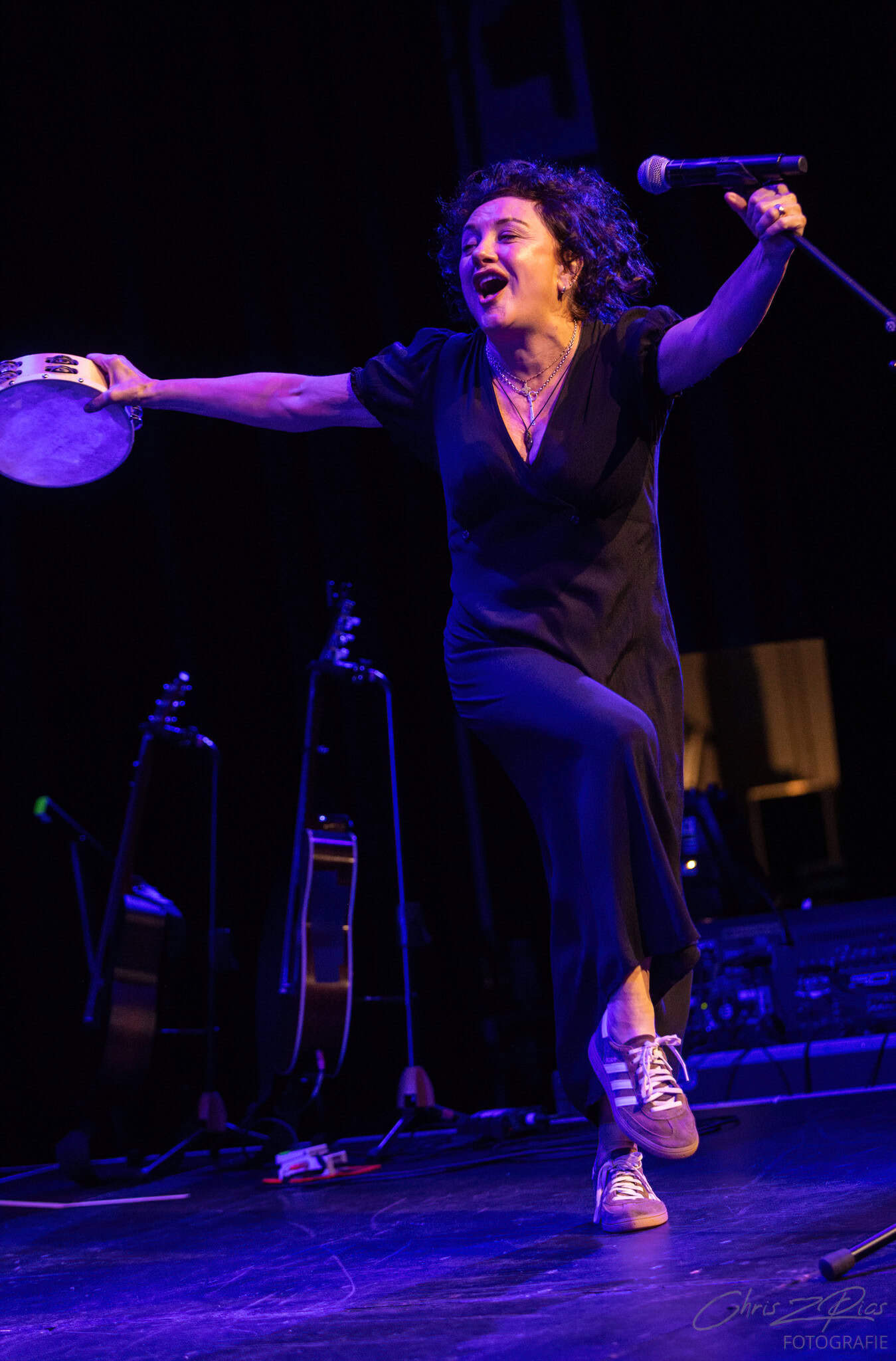 Queen of the New Year followed, then a rousing rendition of Fergus Sings The Blues that had the audience eating (and dancing) out of the palm of their hands. The energy on stage is undiminished by time. Trying to get a photograph of McIntosh was nigh on impossible because she doesn’t stay still for a second. She must walk/dance the equivalent of 500 Miles on stage every night and it is pure joy to witness.