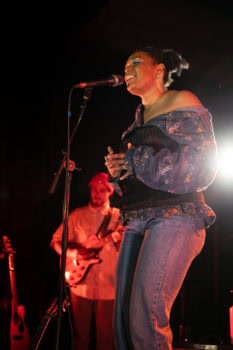 When the microphone was eventually fixed, Deva was welcomed onto the stage and immediately her stage presence and sense of style dominated, from the bespoke coat to the tall tan hat that was mirrored by golden plaid platform boots, Deva was larger than life. Her voice took a little while to warm up however and was most impressive in harmony with Zoe Moon. The song they co-wrote about their late older sister was moving and I’m sure she was listening while the sisters sang as loud as they could.