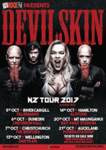 DEVILSKIN are thrilled to announce their NZ TOUR 2017, bringing their incredible live show to New Zealand towns from October 5 – October 21.