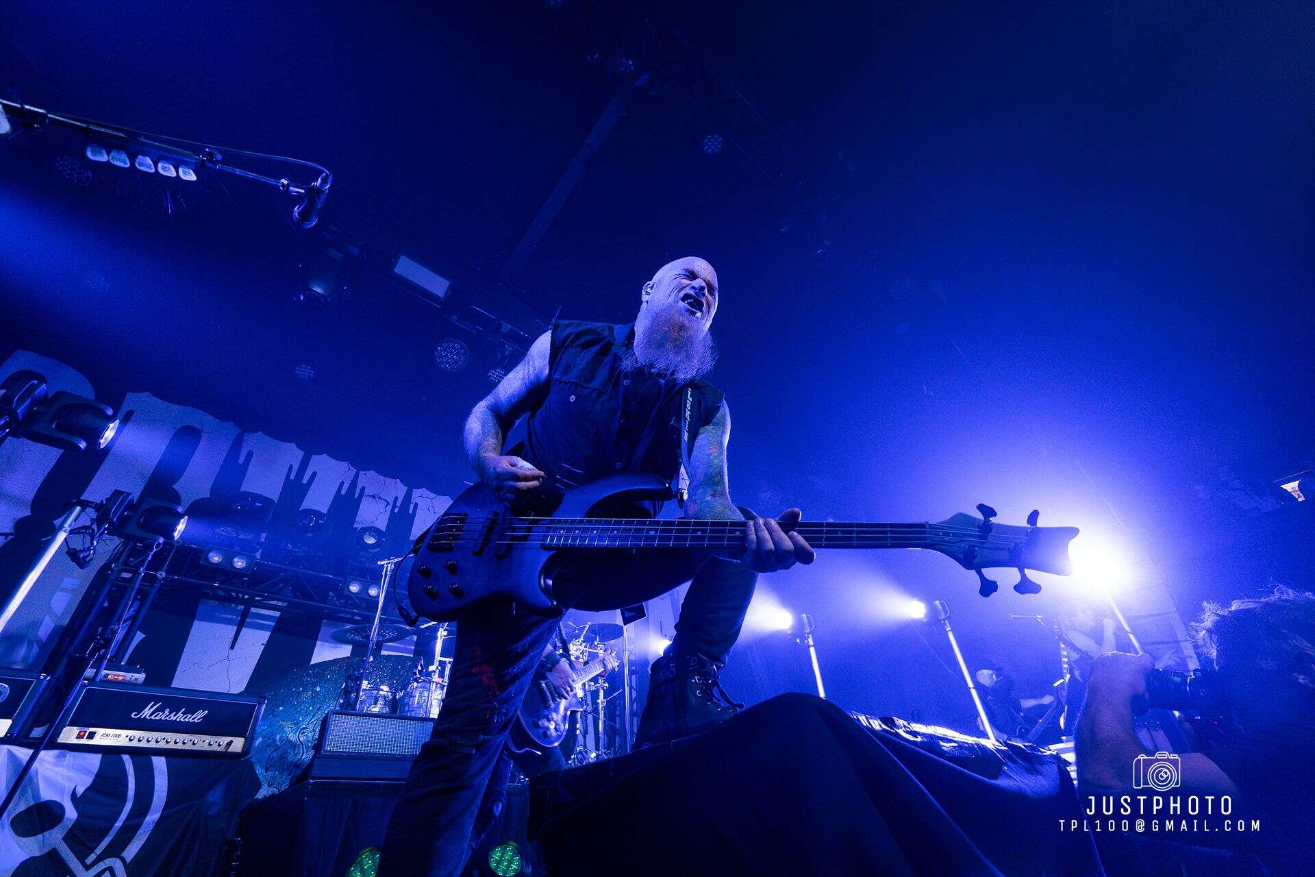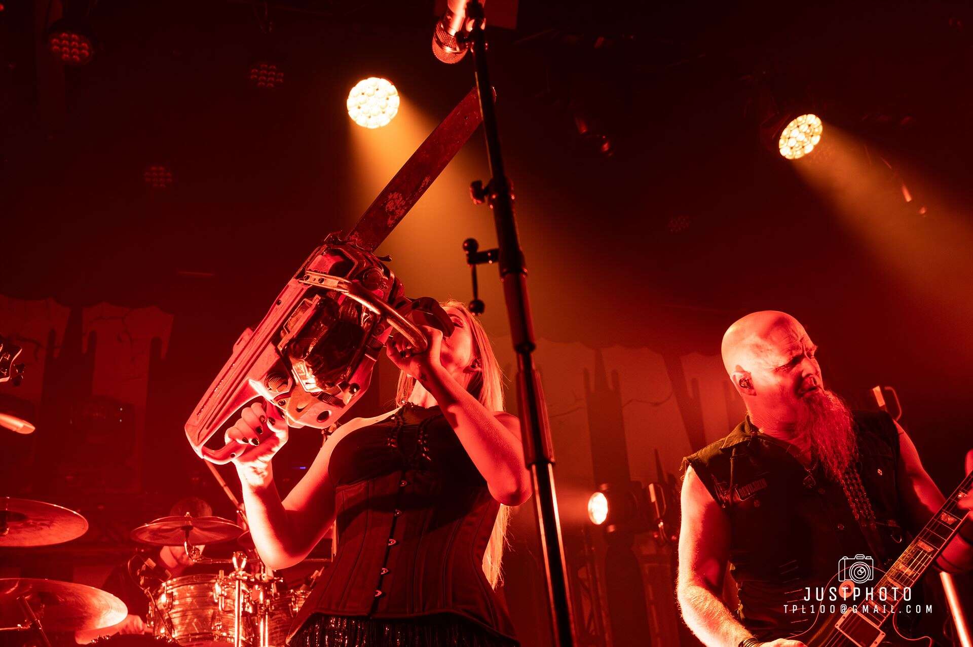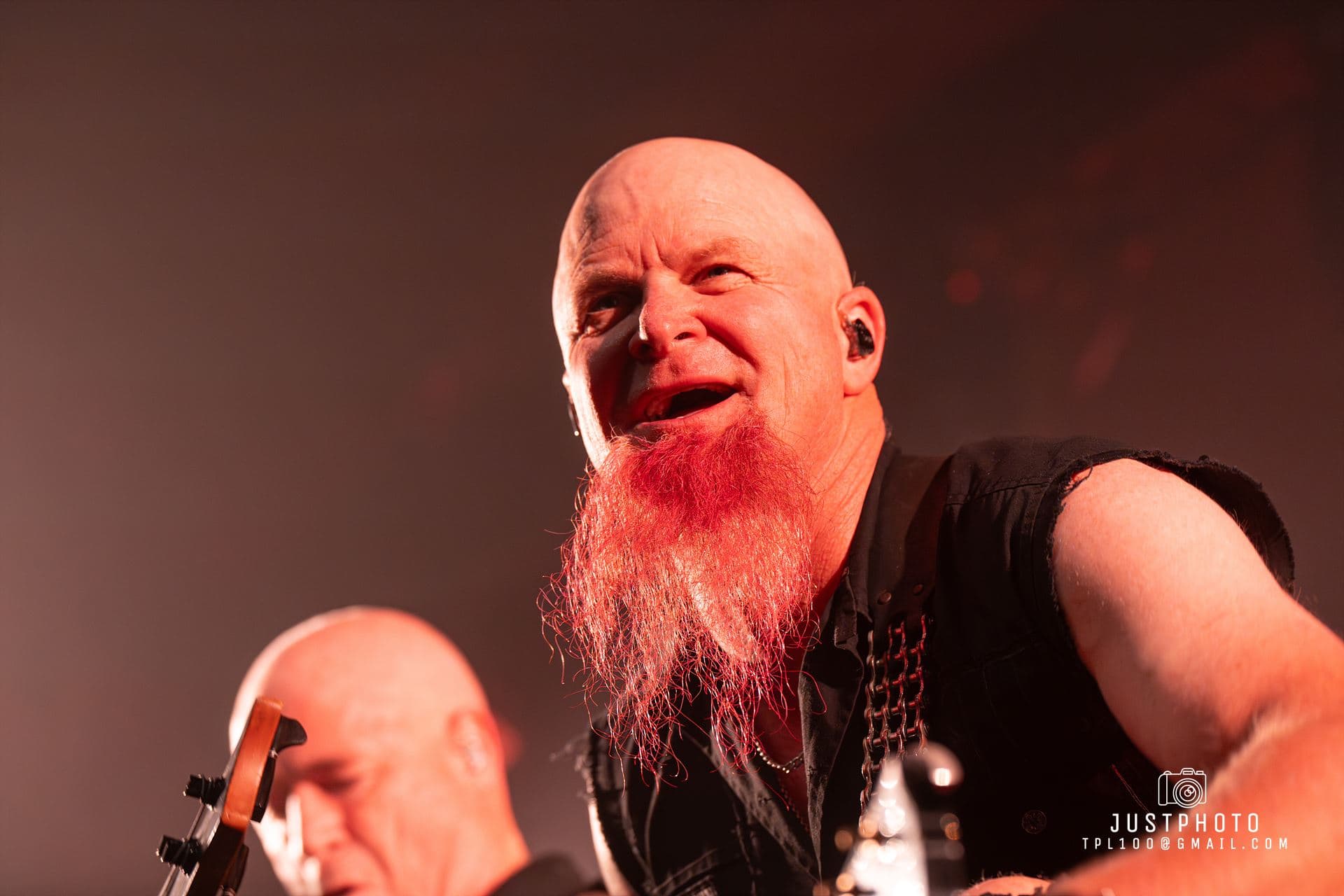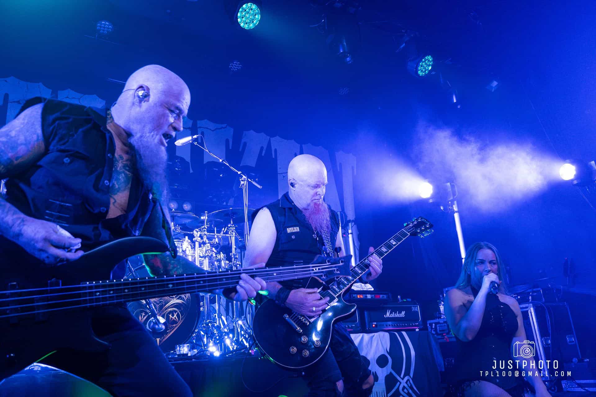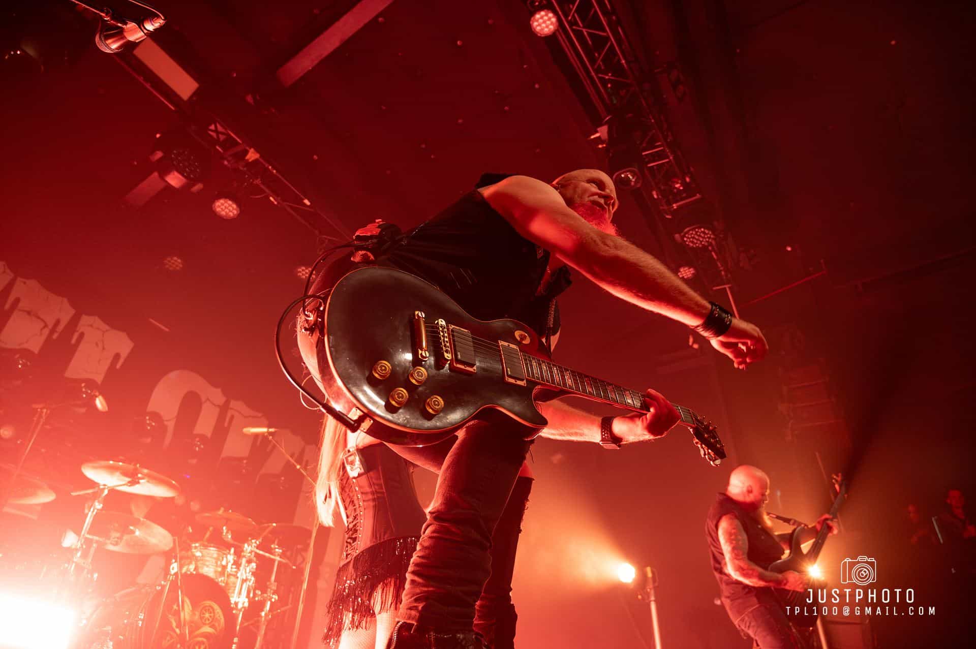Running with the Devil plays, the smell of pot floats through the venue and red laser lights shine across the stage. Opening with Nic Martin’s drums, which are so heavy you can feel them through the floor, Jen strides on carrying a hand smoke cannon. The twin red beards of Paul Martin (bass) and Nail Vincent (guitar) are epic. Weirdly, dressed and styled alike they appear to be clones of each other, but it is Paul who is the father of Nic on drums.