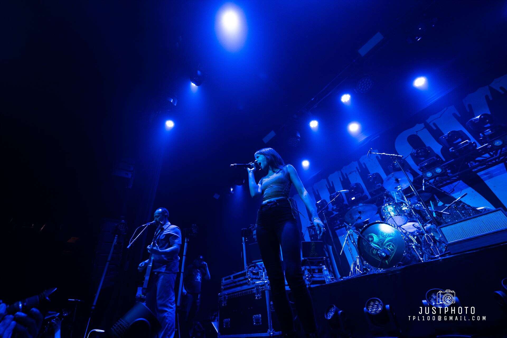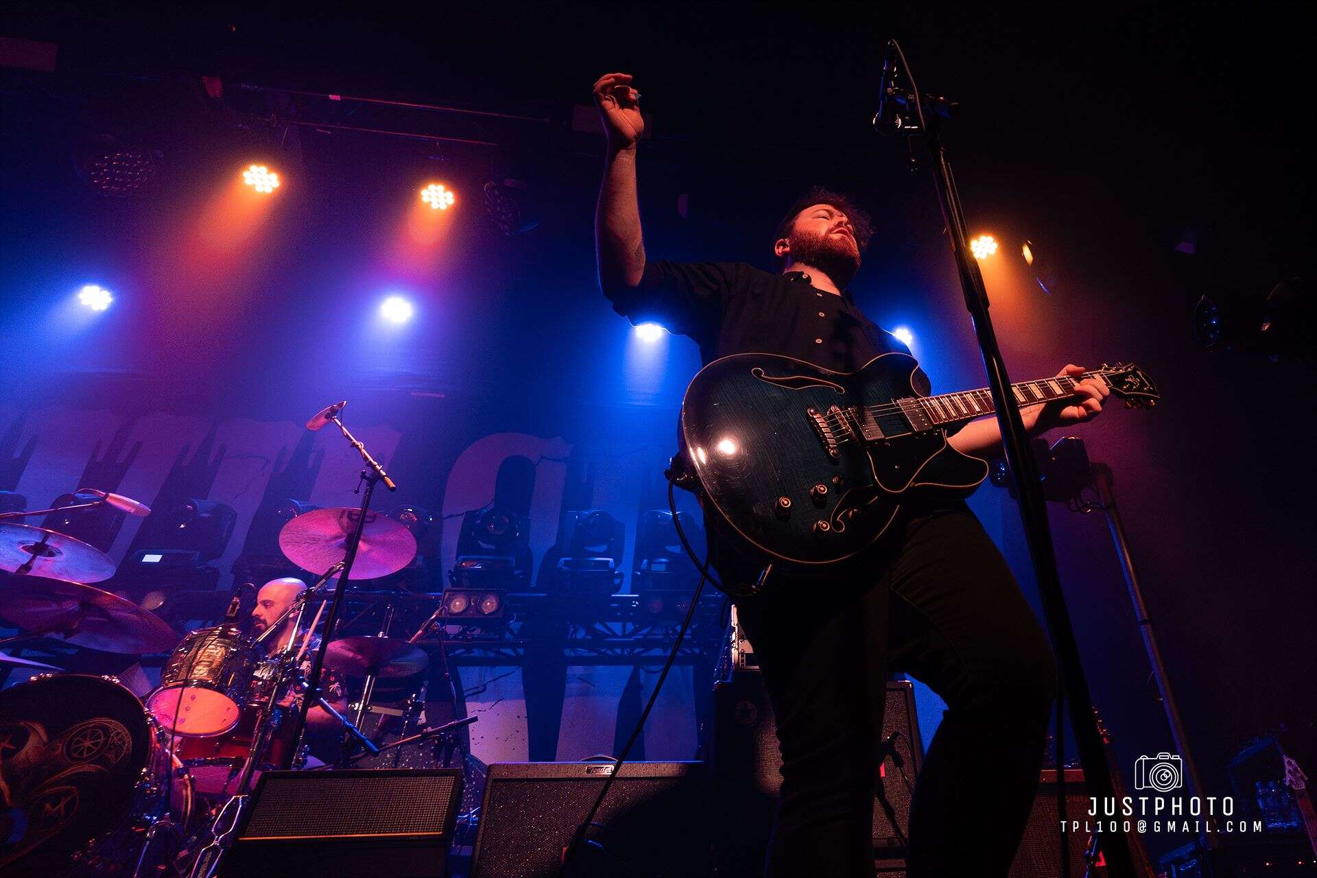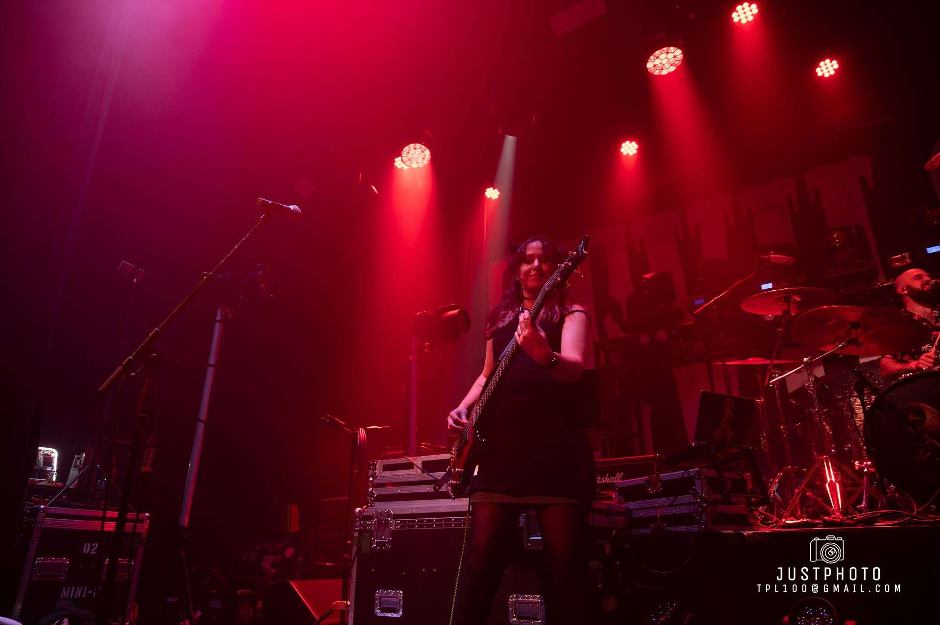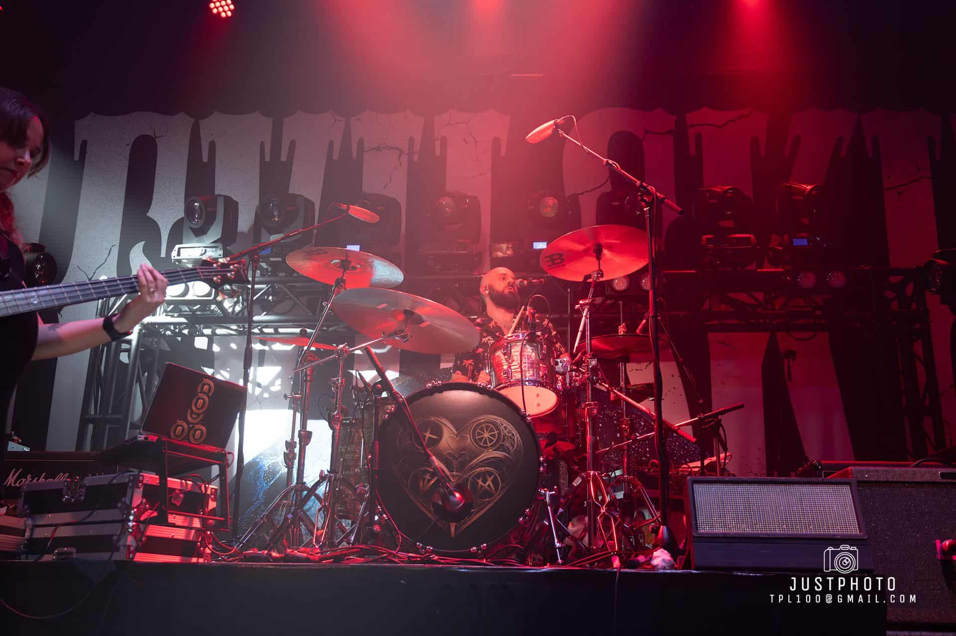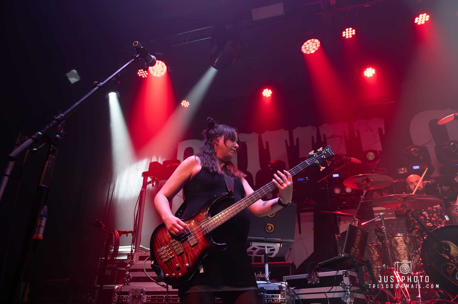 Start a Revolution is all hard and heavy, but variable. Slow/fast. Guitar and bass know how to take a backseat to the vocals and how to shine. The strings are so technically perfect it’s technically maths as well as music. Drums are hectic. So much so the vibration through the venue threatens to loosen our fillings. There is an absolutely epic drum solo, during which I get the impression Nic could do this for weeks. It’s a feat of strength as well as an incredible sound. Together the band is energetic, high res and high rizz. This is talent that has put in its 10,000 hours and have gained a mastery over sound. The guitar also gets a face-melting solo. The rest of the band take a break while finger picking good sounds happen.
