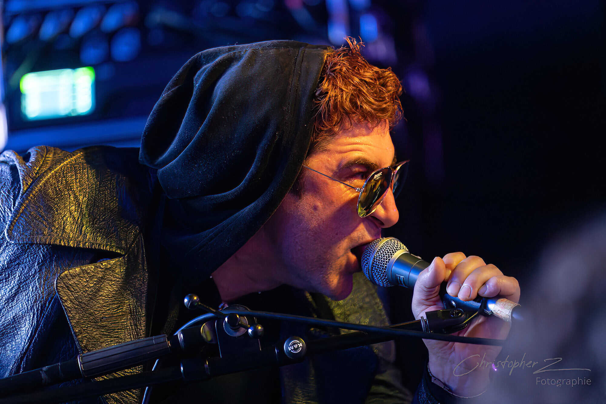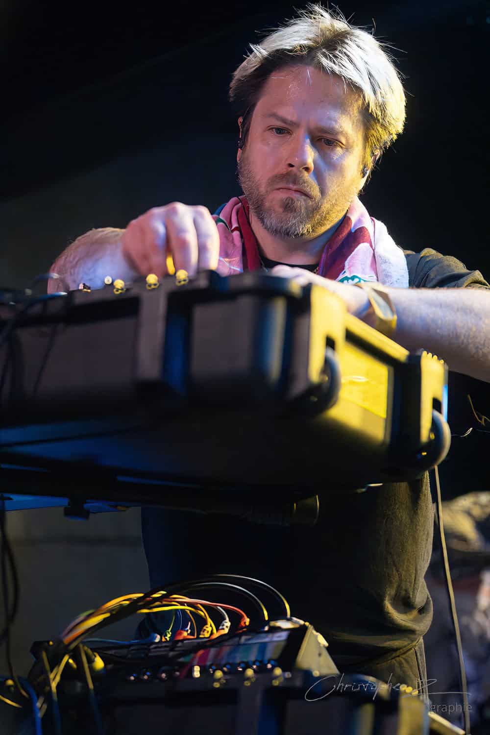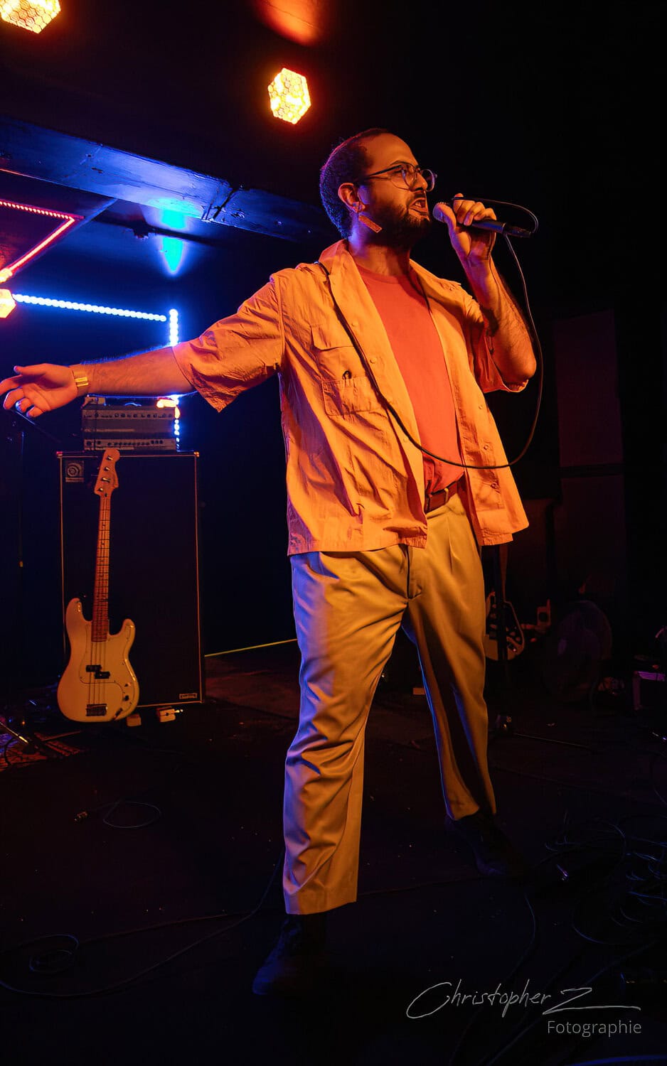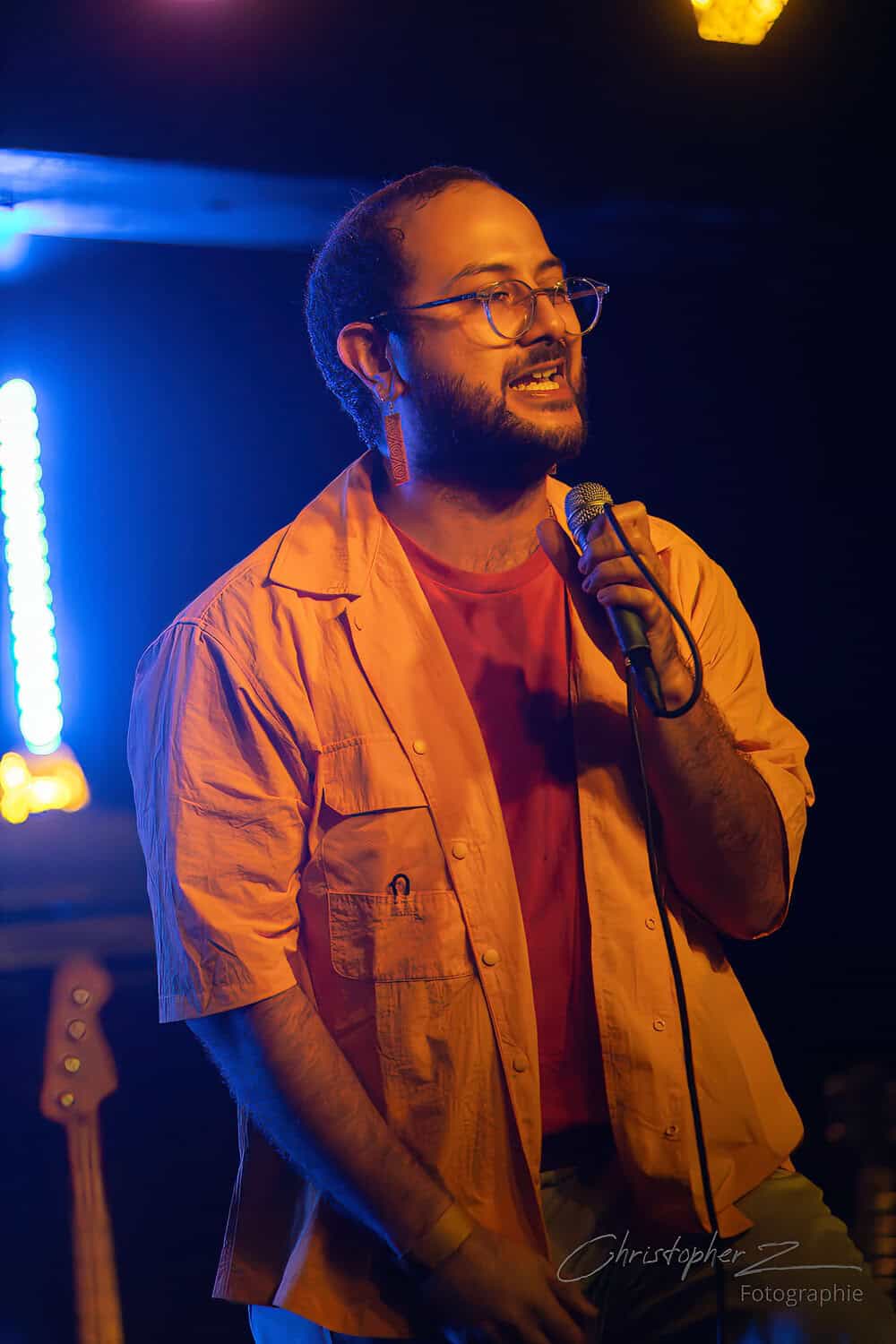 Not tonight, Dbldbl is all solo tonight onstage, albeit with his laptop, as tech issues are resolved, he, last minute shuts the backstage door and prowls the stage, works the stage, works the room.