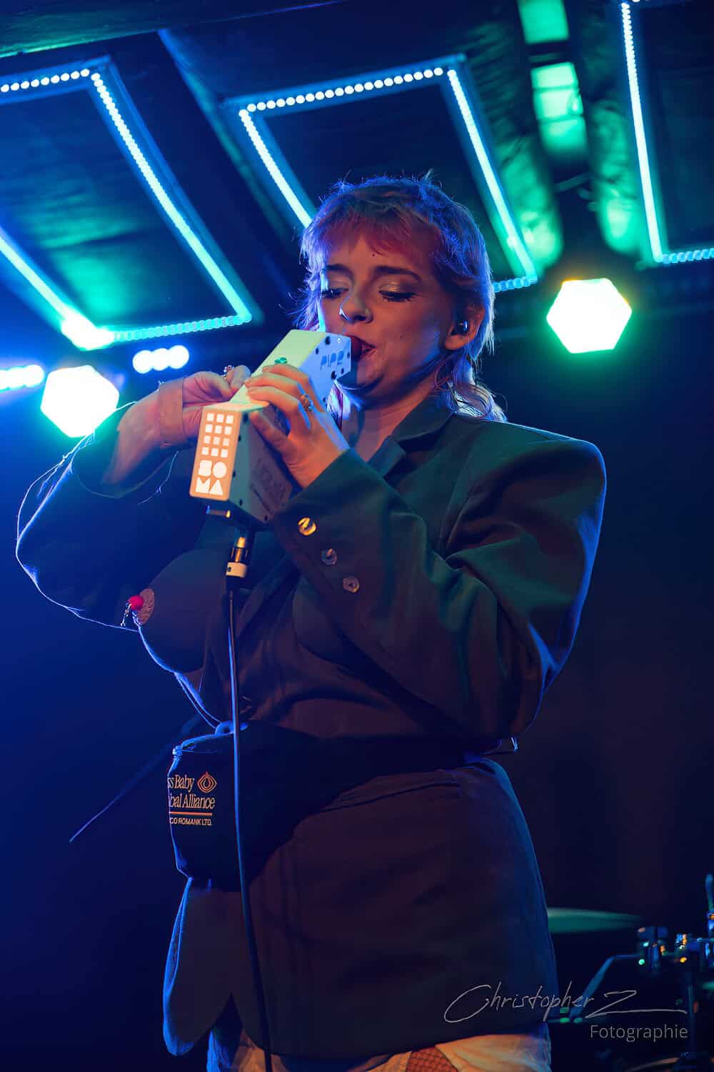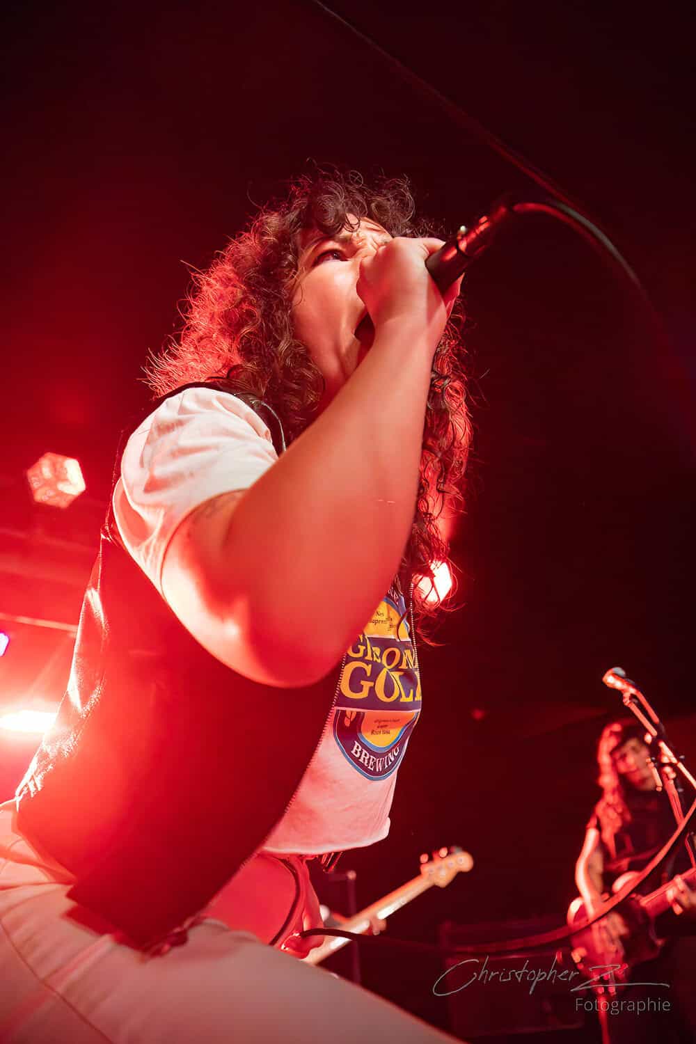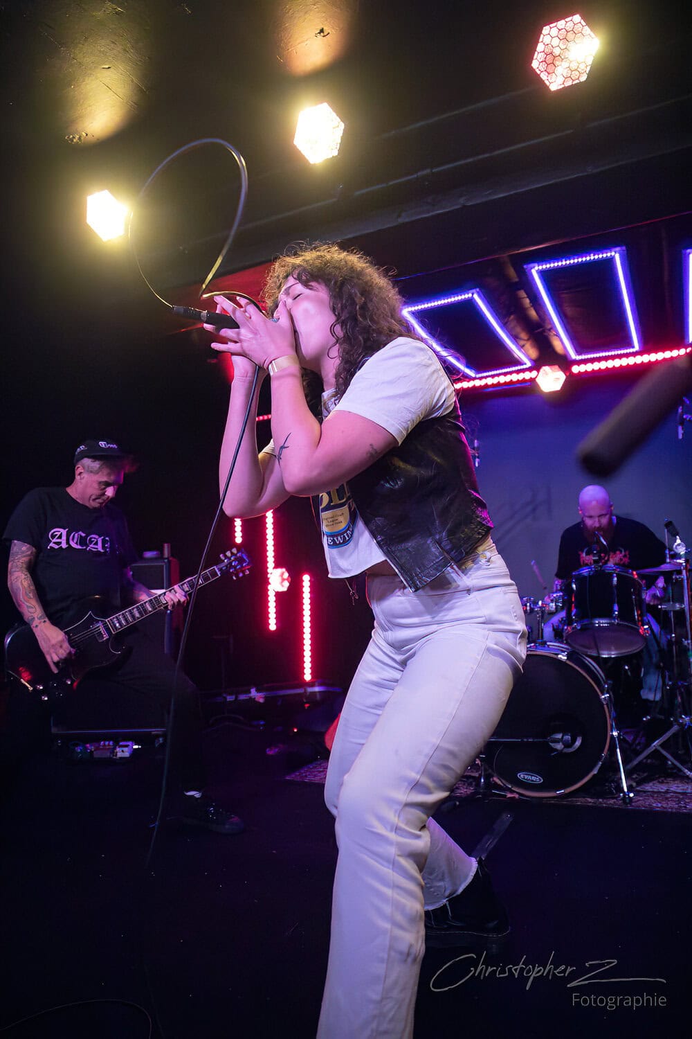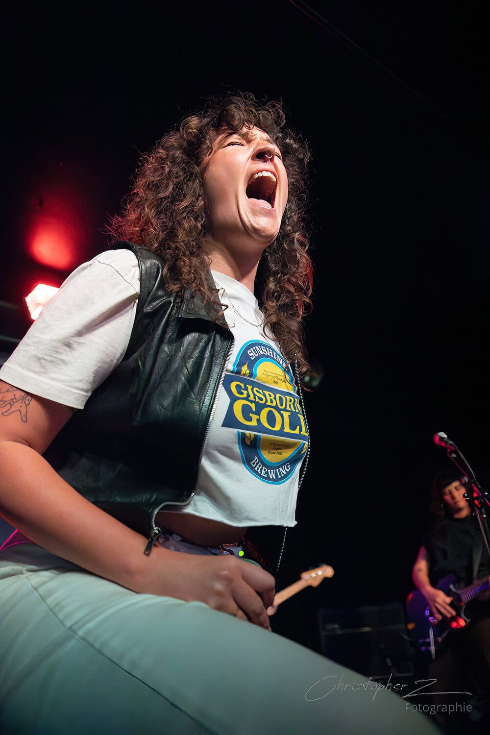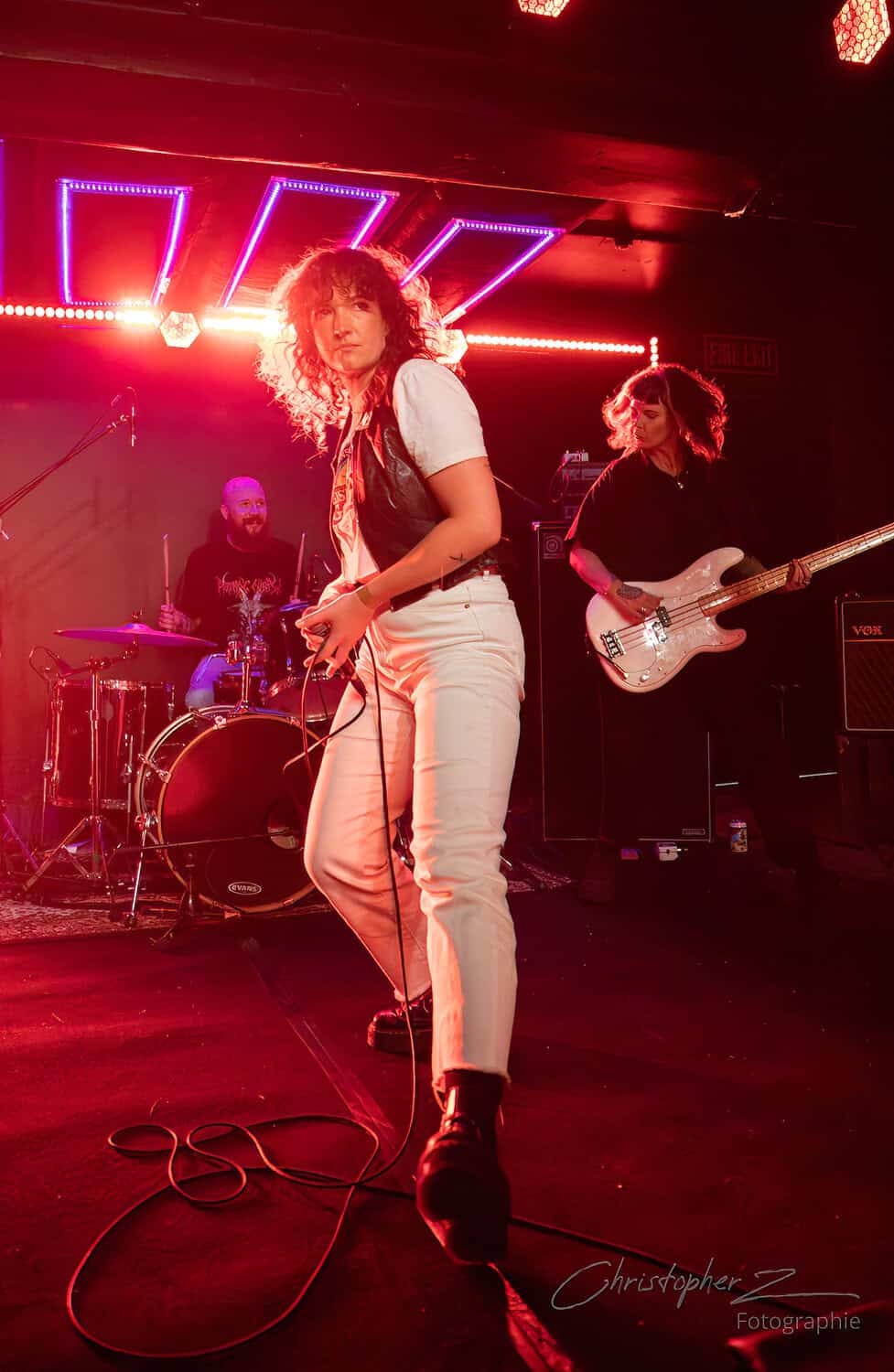 With the twin punk guitars of Justin Lee and Hariet Ellis acting out, noise fills the room, a mosh pit threatens and Lucy Suttor continues to work the room between songs.