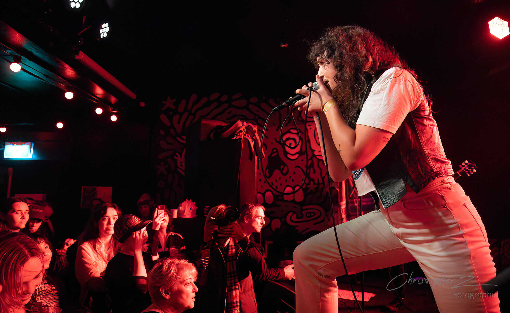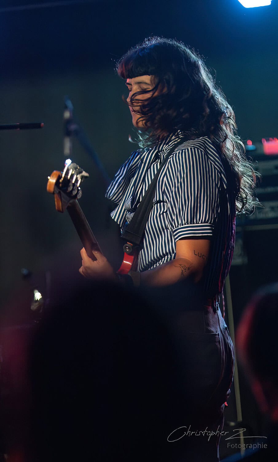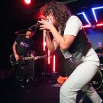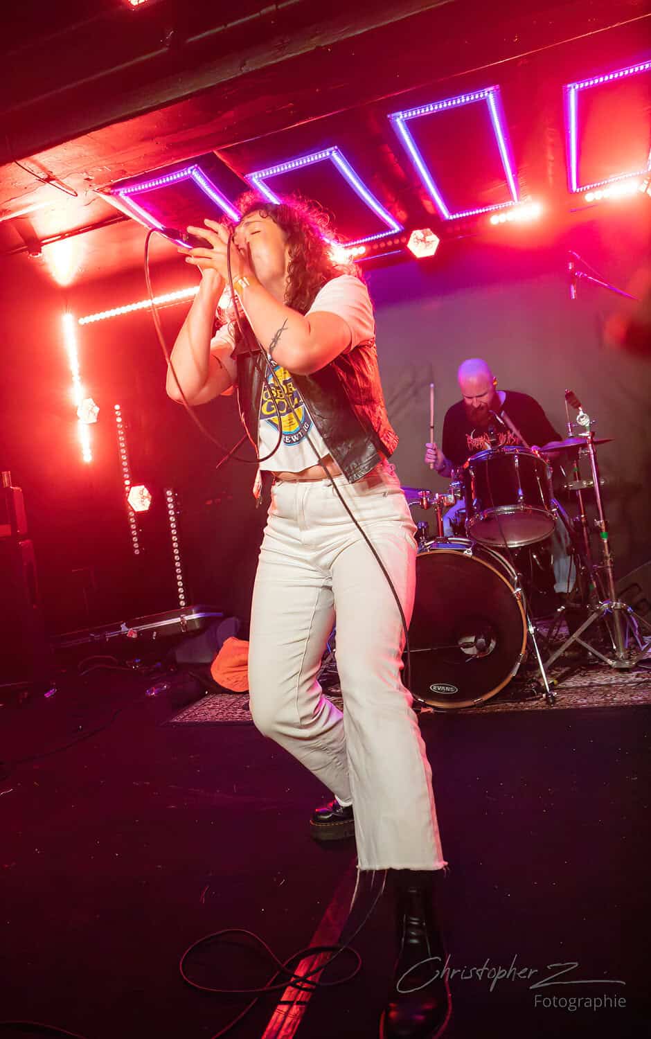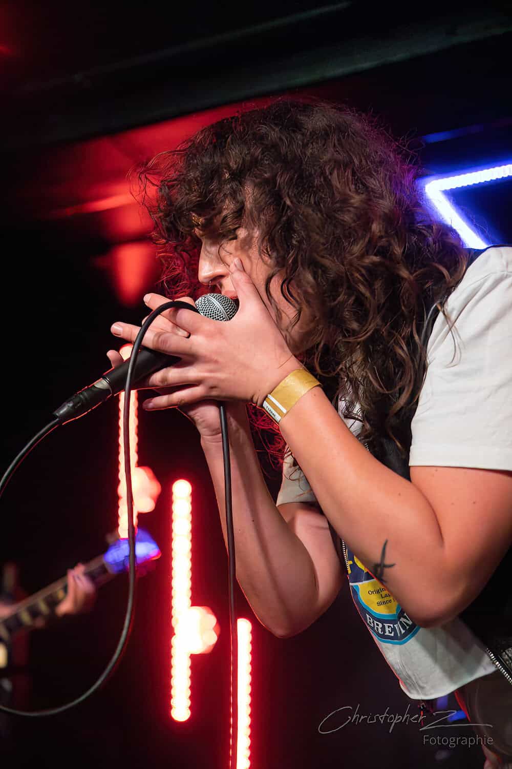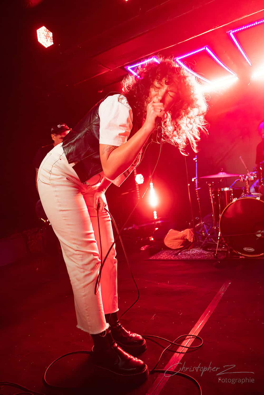 With the twin punk guitars of Justin Lee and Hariet Ellis acting out, noise fills the room, a mosh pit threatens and Lucy Suttor continues to work the room between songs.