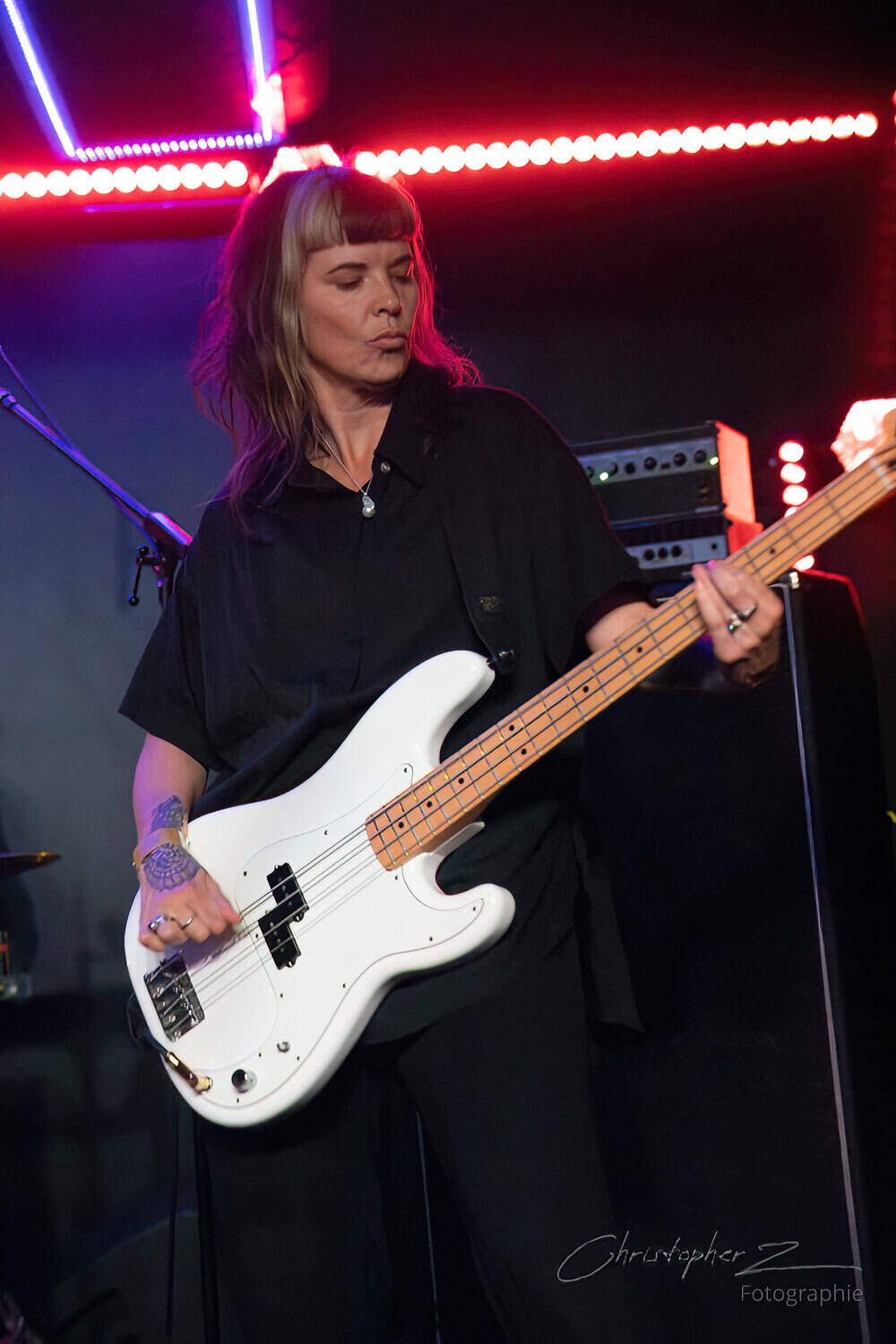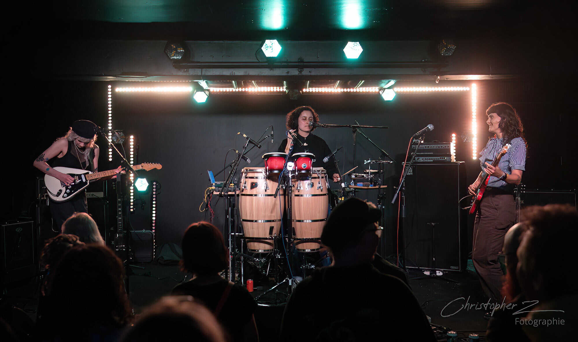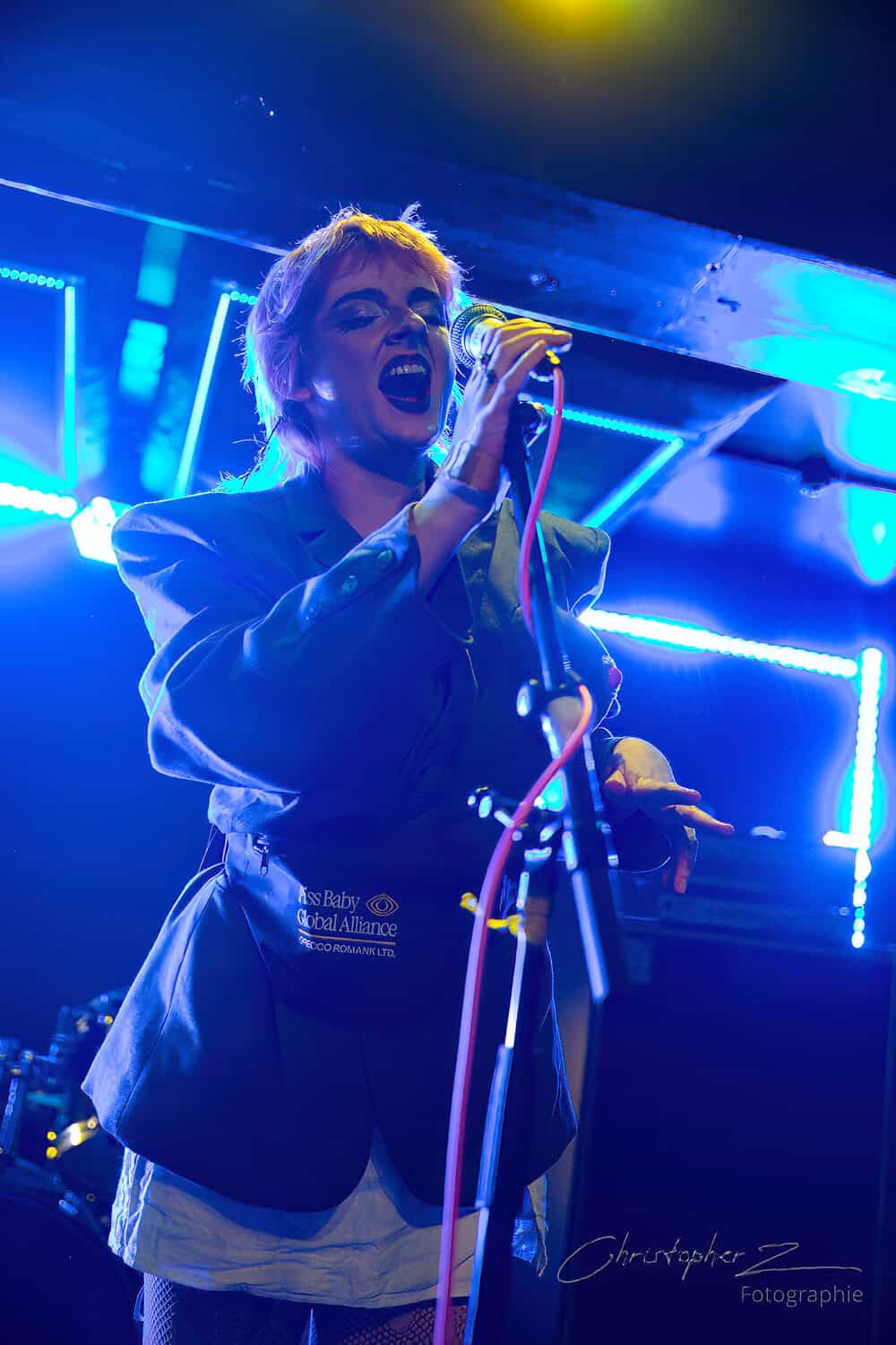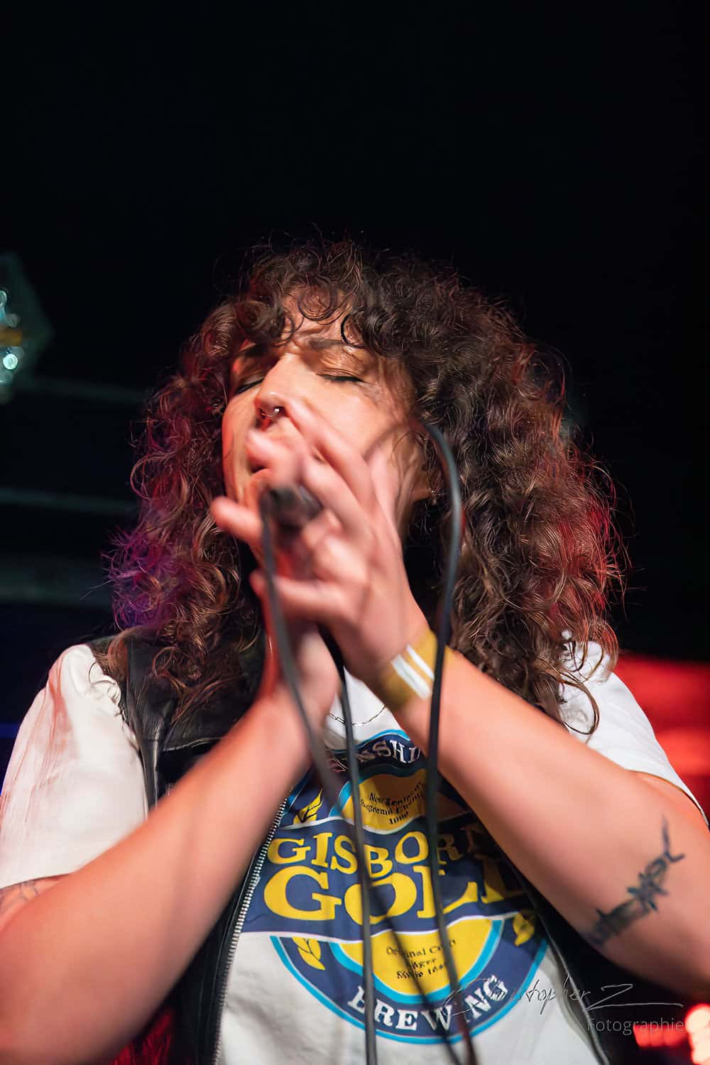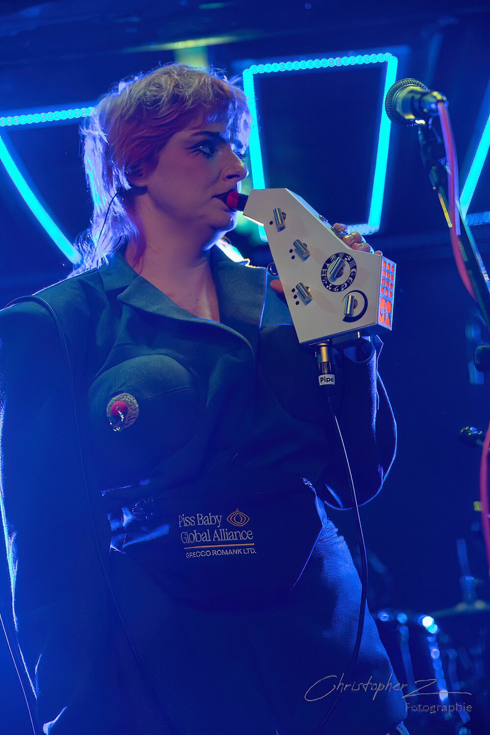 With the twin punk guitars of Justin Lee and Hariet Ellis acting out, noise fills the room, a mosh pit threatens and Lucy Suttor continues to work the room between songs.