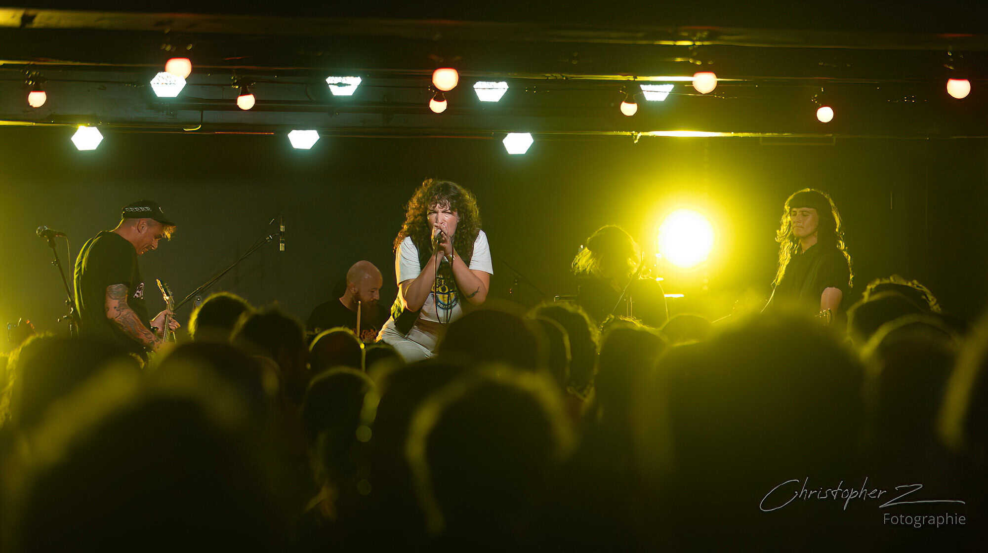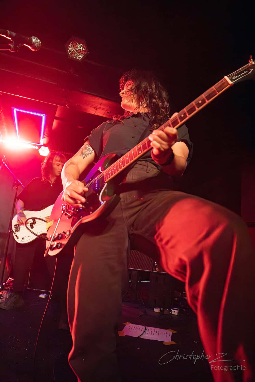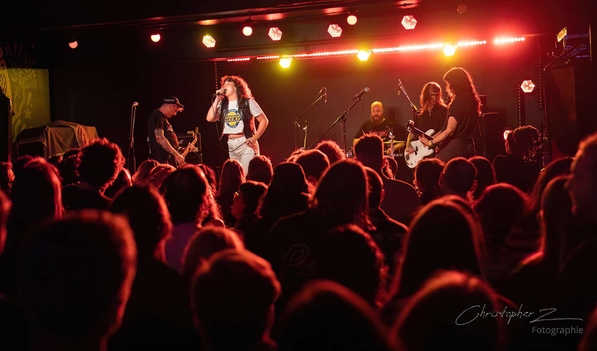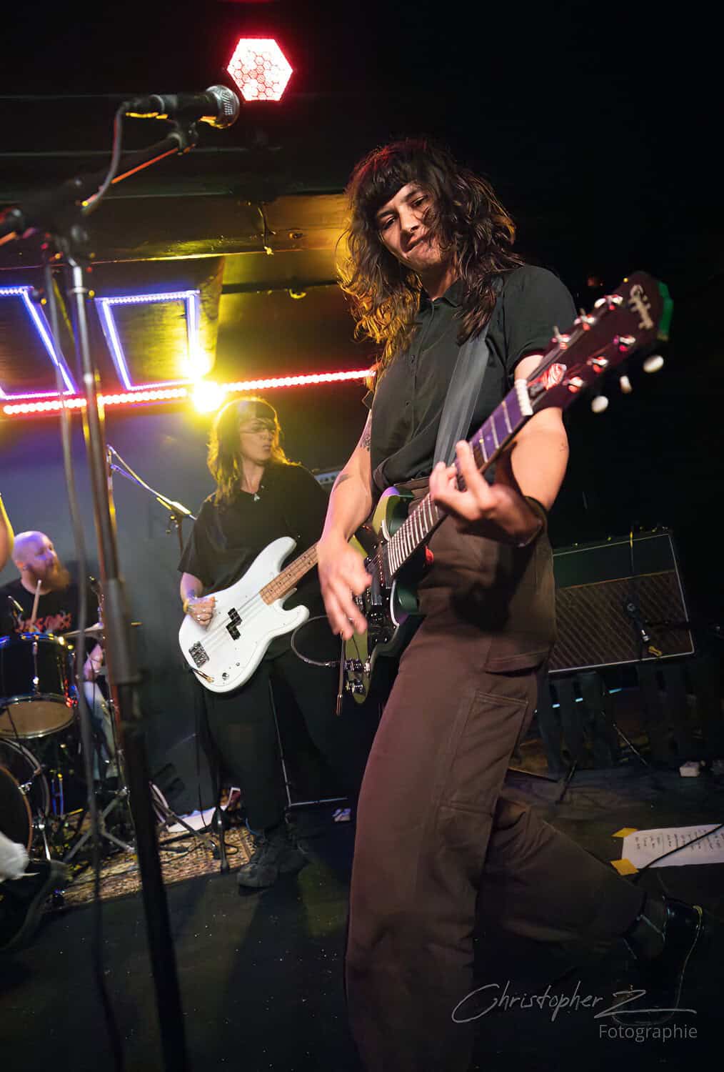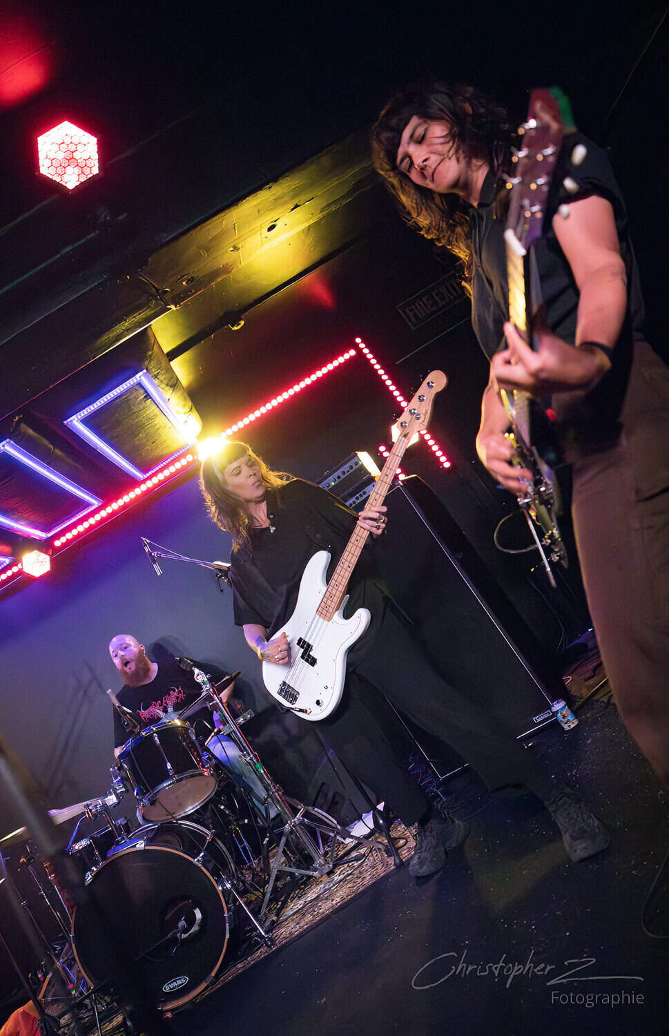 With the twin punk guitars of Justin Lee and Hariet Ellis acting out, noise fills the room, a mosh pit threatens and Lucy Suttor continues to work the room between songs.
