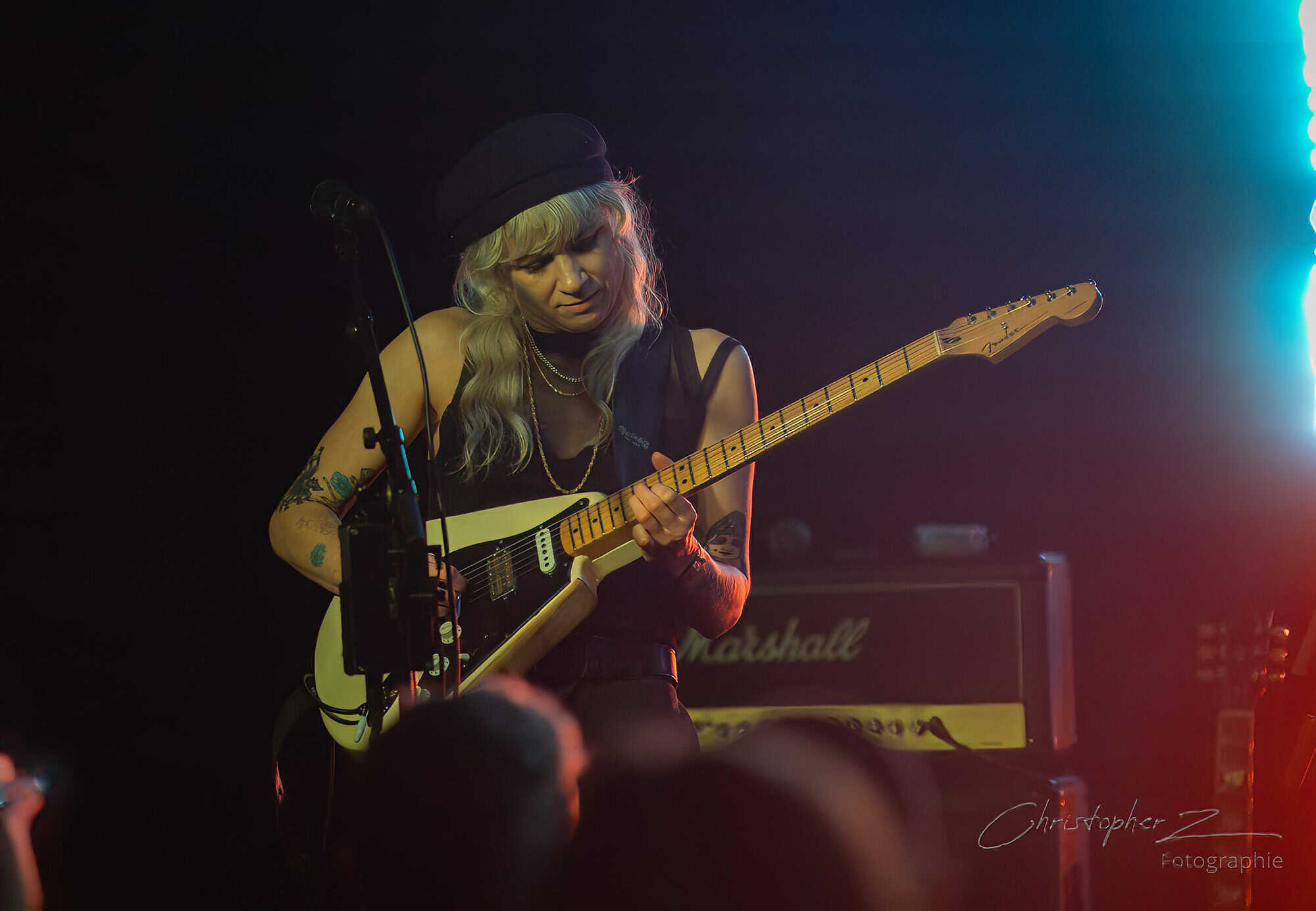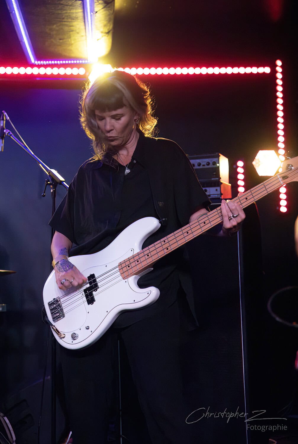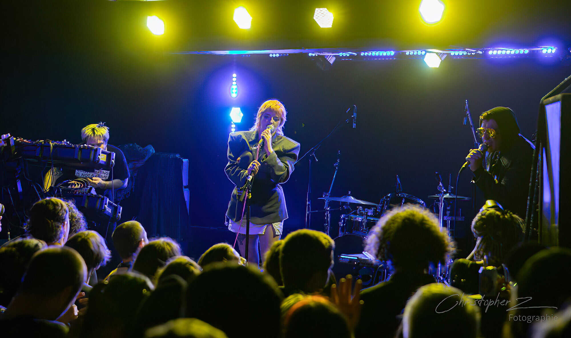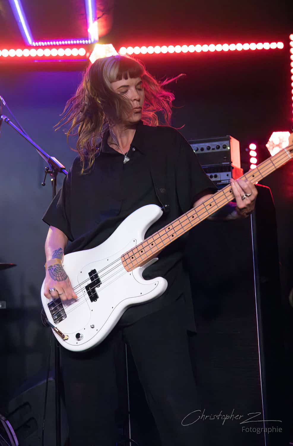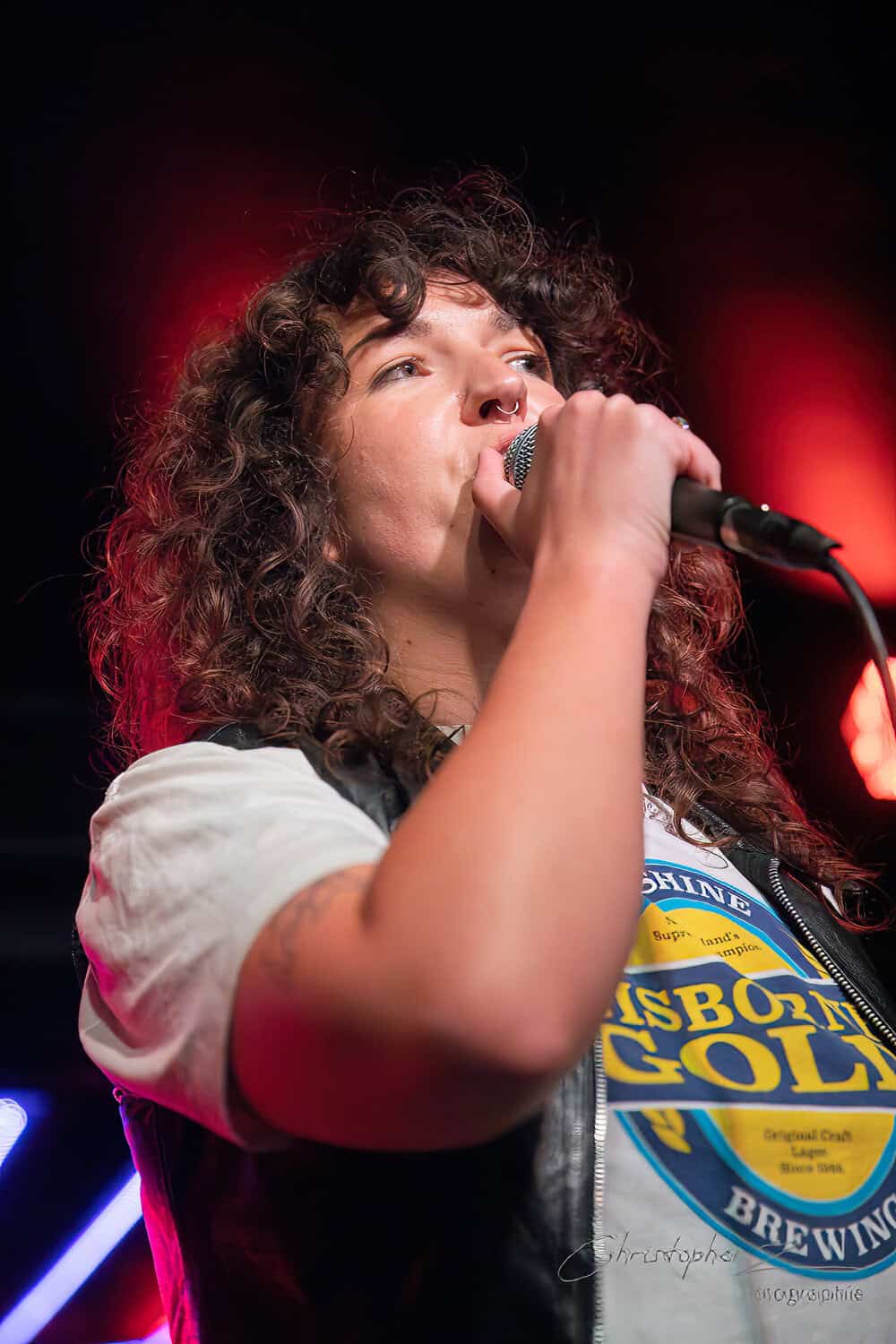 With the twin punk guitars of Justin Lee and Hariet Ellis acting out, noise fills the room, a mosh pit threatens and Lucy Suttor continues to work the room between songs.