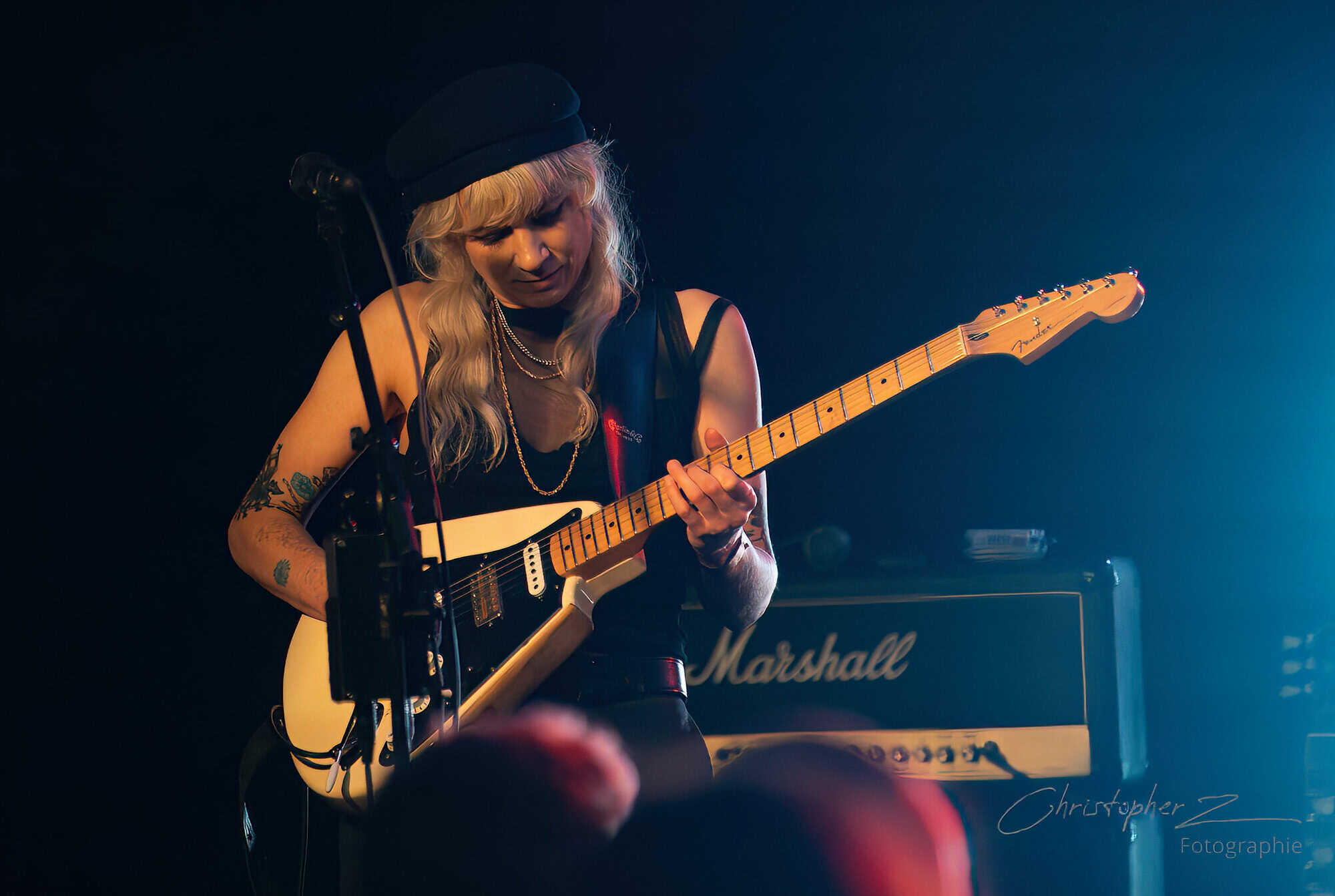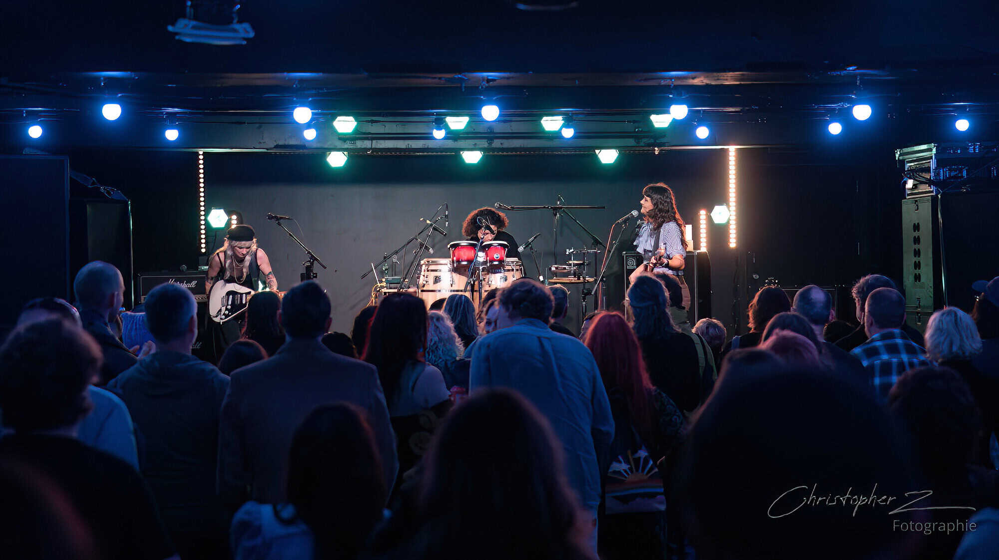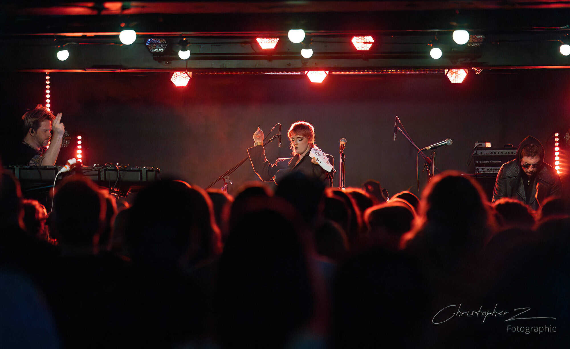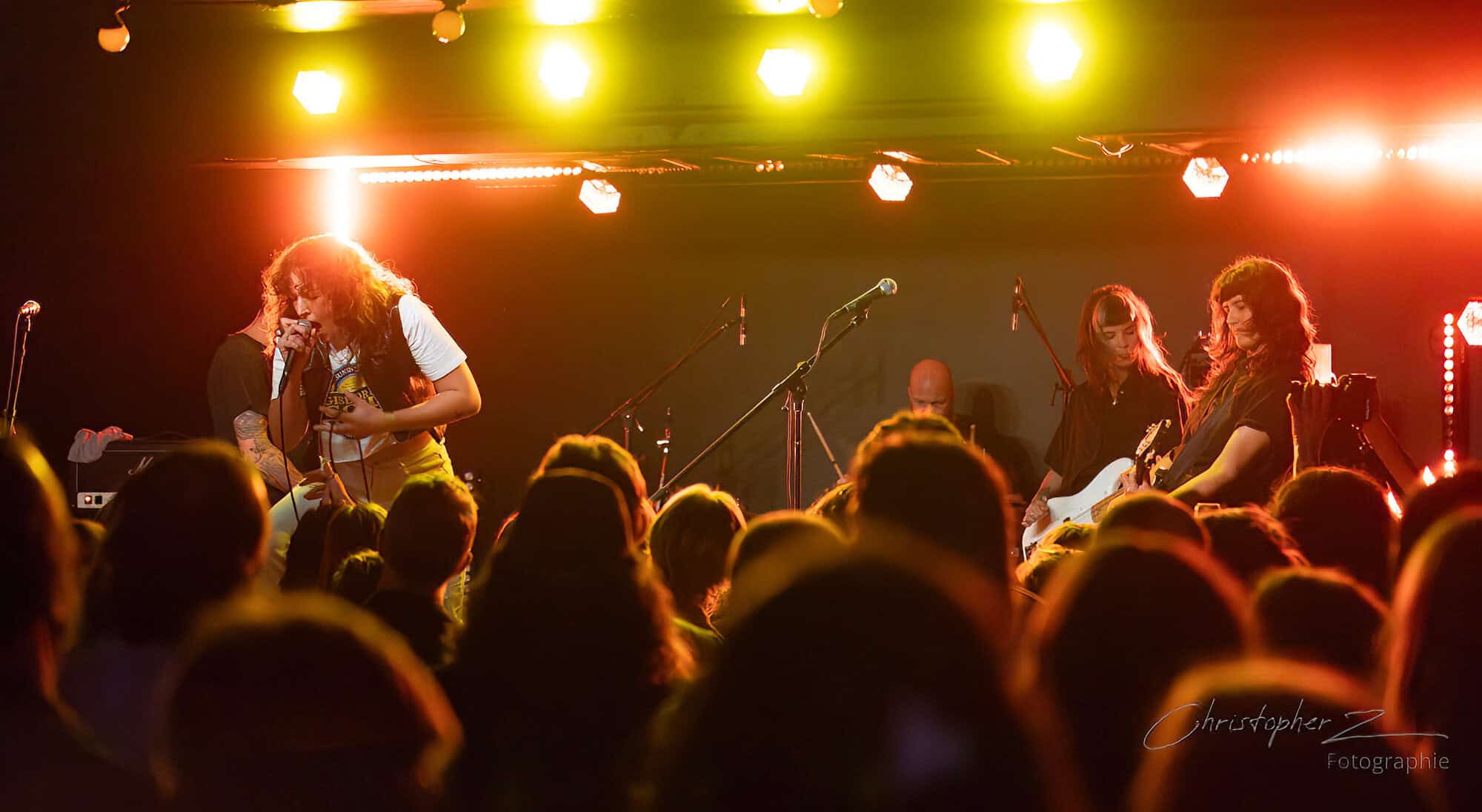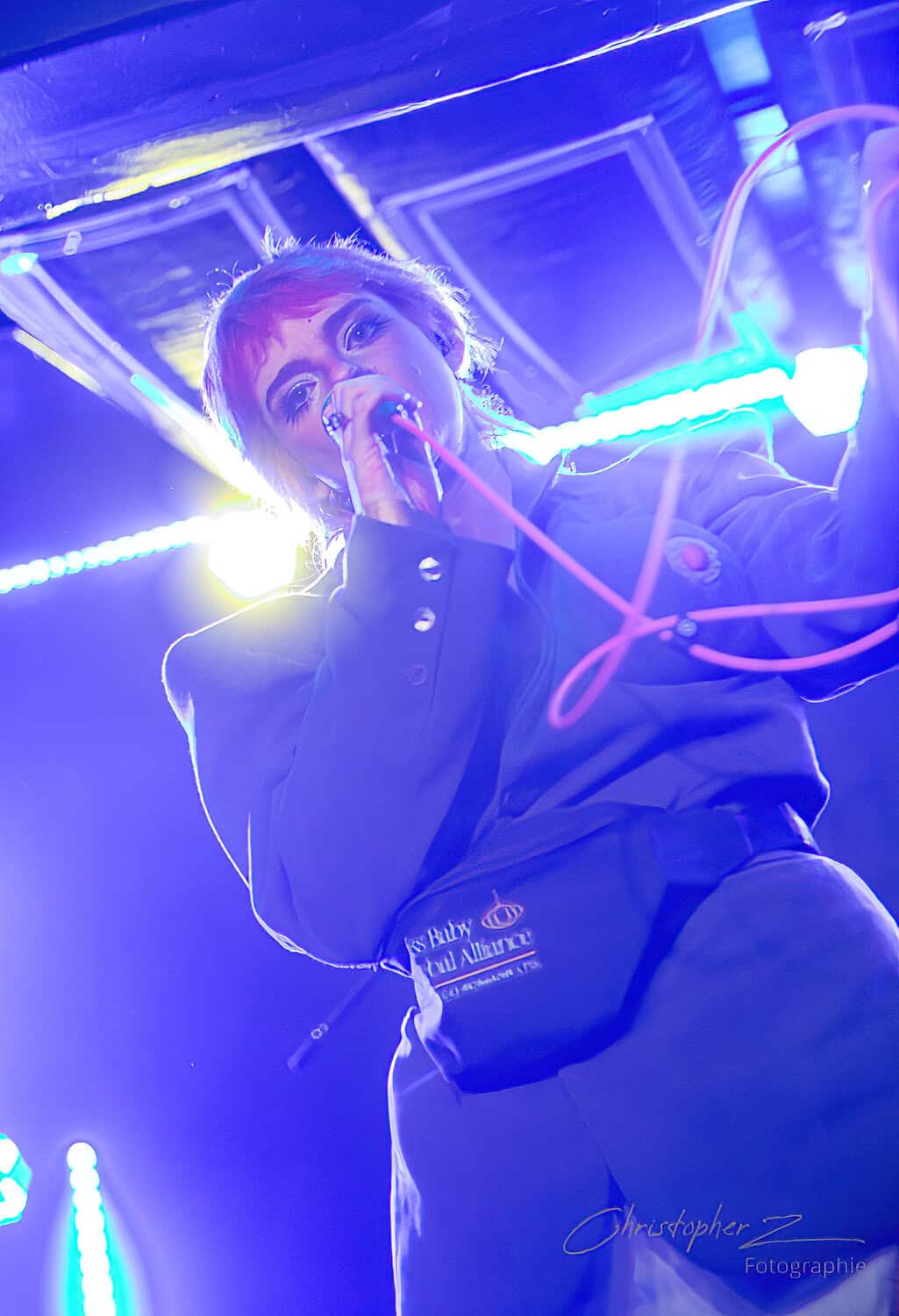 With the twin punk guitars of Justin Lee and Hariet Ellis acting out, noise fills the room, a mosh pit threatens and Lucy Suttor continues to work the room between songs.