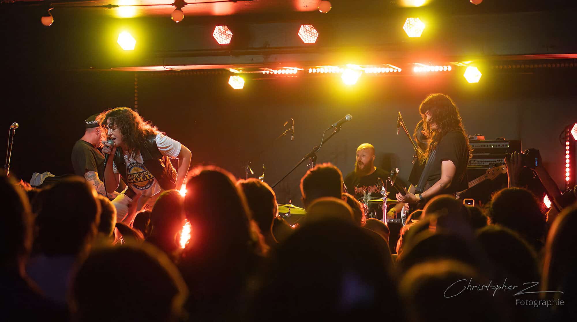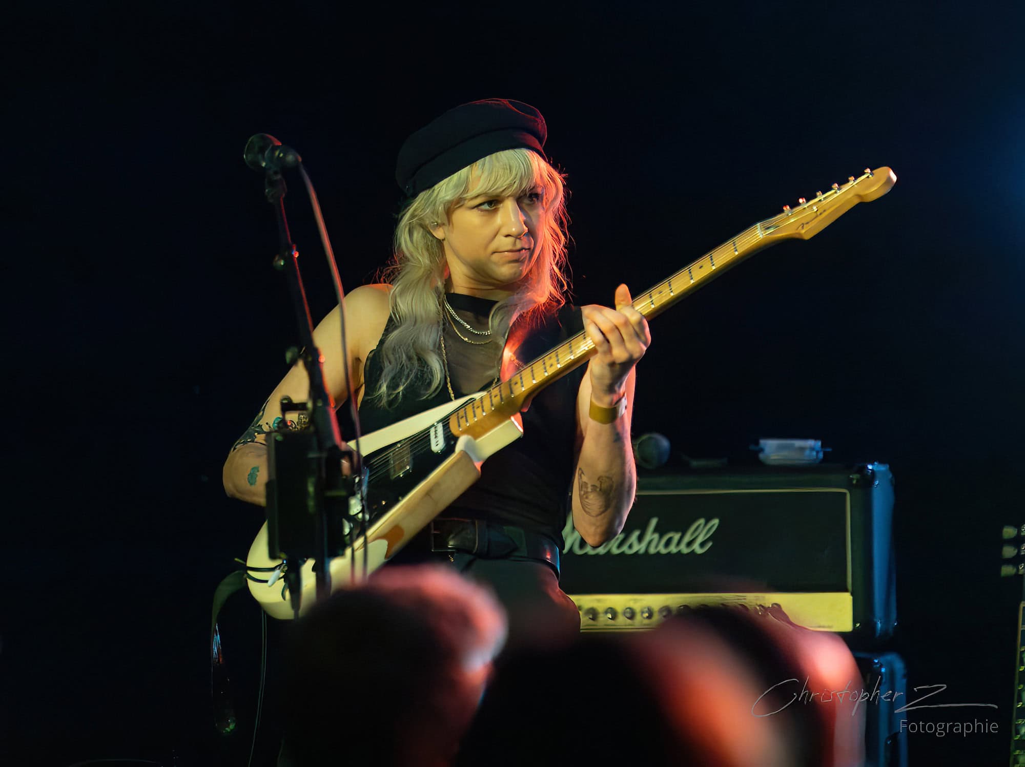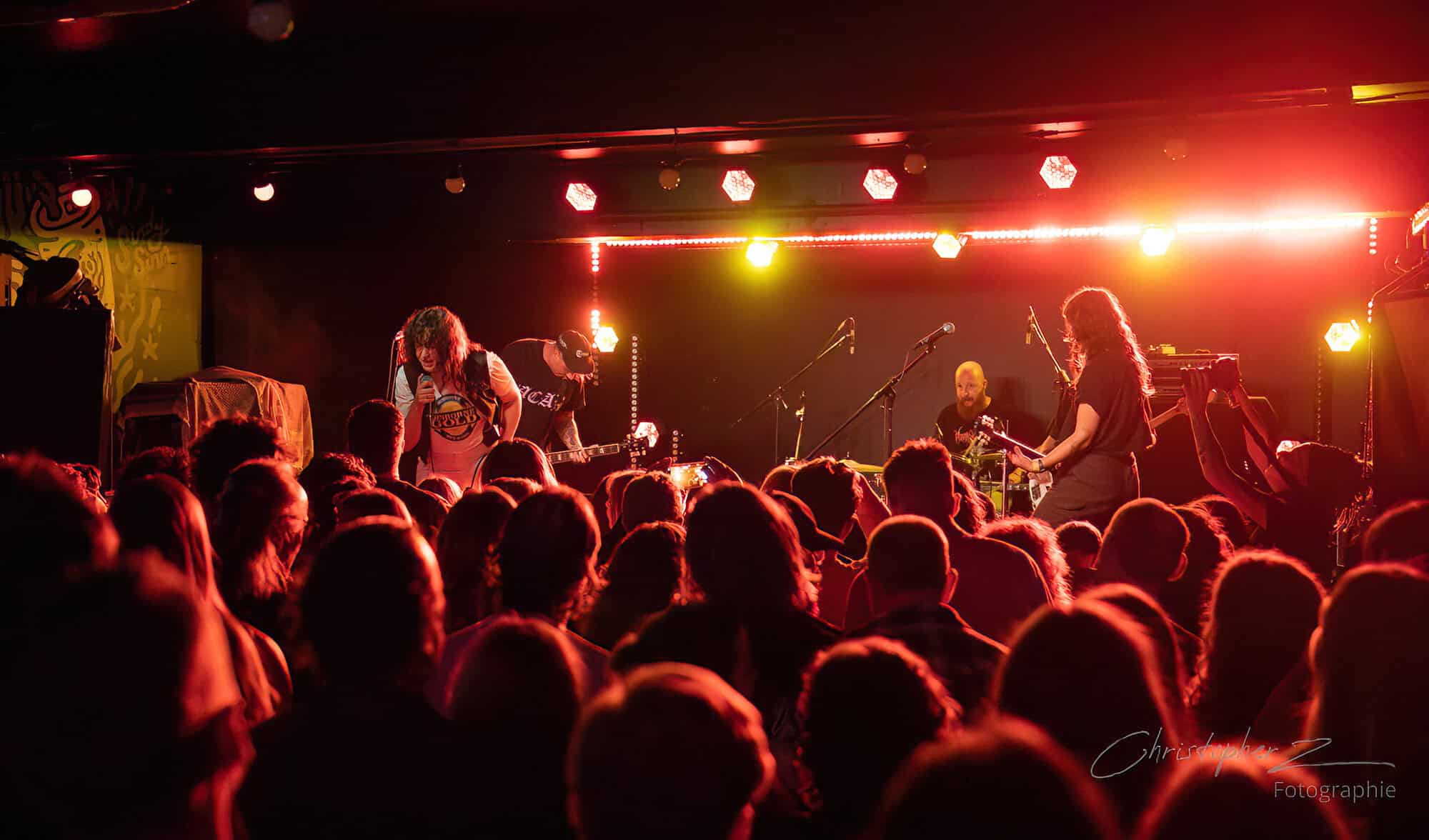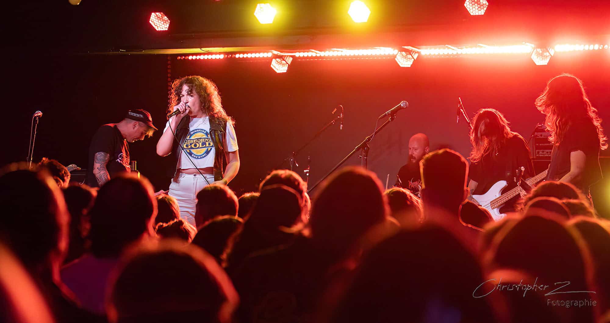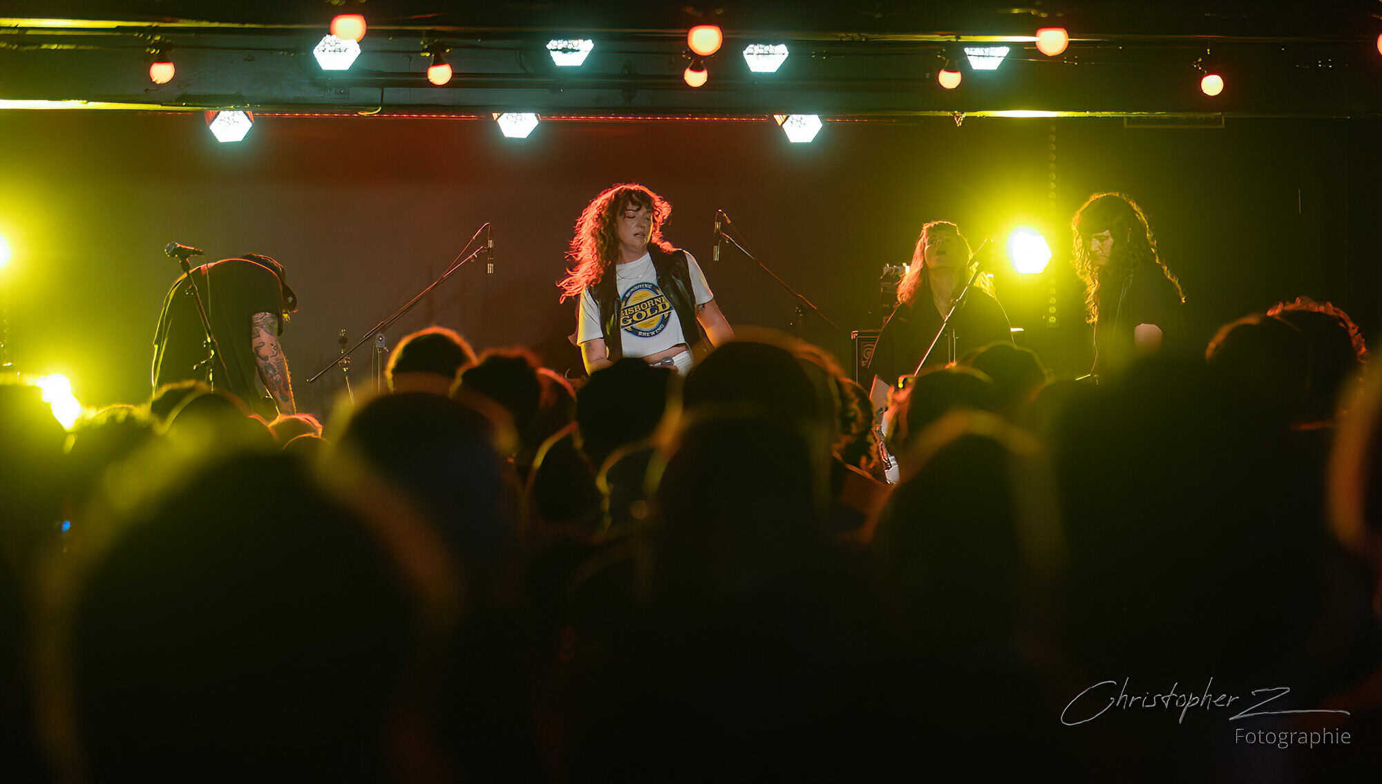 With the twin punk guitars of Justin Lee and Hariet Ellis acting out, noise fills the room, a mosh pit threatens and Lucy Suttor continues to work the room between songs.