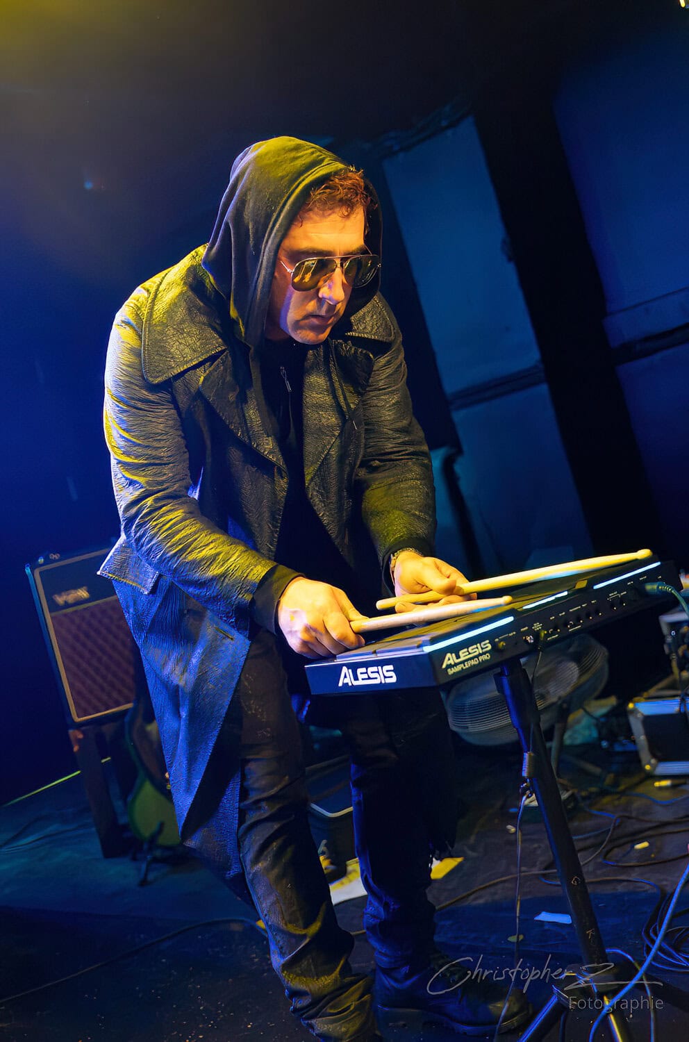 Grecco Romank’s sound, beats are fed from the stack, a tower of electronica controlled by Mikey, as others drop vocals over the top, the sound is very, totally german electro punk.