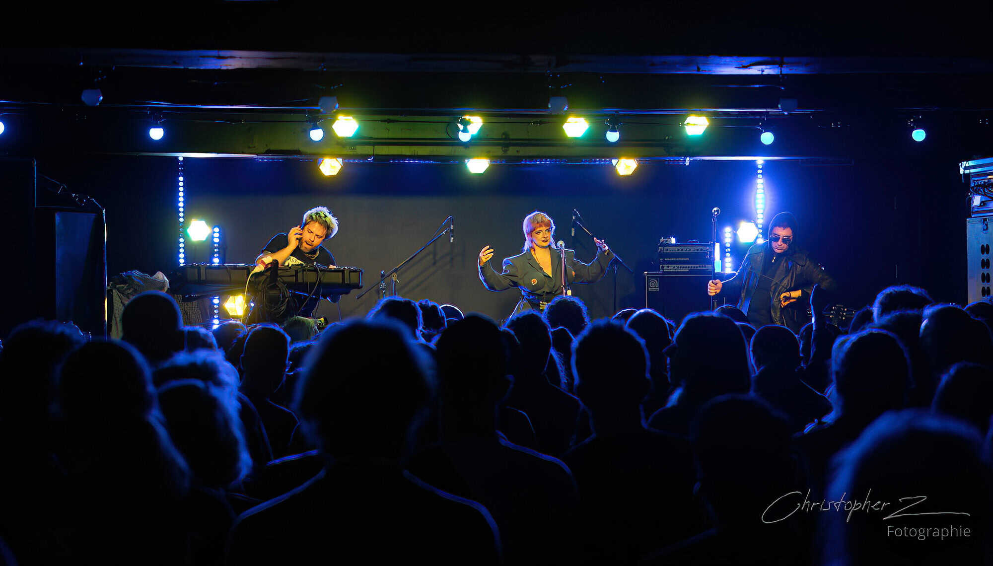 But if the crowd were expecting a continuous beat, a dance party of effortless non-stop dancing, then this is where they have to deal with the punk aspect of Grecco Romank. Their electro-avant garde-ness sees the trio occasional dropping samples and stop beats that fuck with the mono- dance-genre, it is these diversions that save the band from being monotonal, and as the band gives the crowd an exemplar in who Grecco Romank really are, a symbiosis emerges as the crowd gets with the programme.