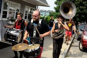 played a tuba. I ended up playing that tuba in a cool band called What Cheer? Brigade, which was the first real band I was in; and so, that ended up having an unexpected application. Then that band – parts of it, at least – turned into Downtown Boys, where I’m mostly doing guitar, but, especially in this record, a lot of it was written using keyboards, and using computers to compose stuff on the musical end; so, definitely this one I felt was more taking into account the fatality of where I was coming from, musically, on the musical end – it was my contribution. That’s my musical background. We run the gamut, though: more than half of the band had not played their instrument in a band before. We’ve been through other people now, at this point; so, it’s definitely been a variety of things, which is cool. I think that if we can take anything from punk, still, it’s the beauty… of having people who, maybe, don’t have all the musical training, in a formal way, but still make music and do it, is a cool thing; but a few different types of music have enabled, including punk.