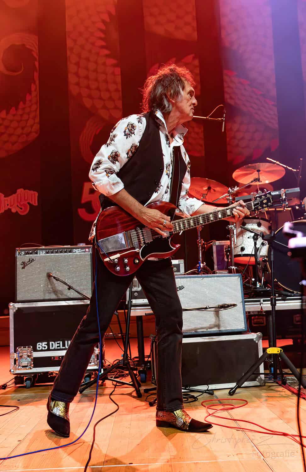 And of course, special mention and mana to Todd Hunter – a man in black this evening, the only original band-member. At the very heart of Dragon. One of Taumauranui’s favourite sons stays mostly seated throughout this evening, low-level and lowkey, letting his trusty bass do all the talking.