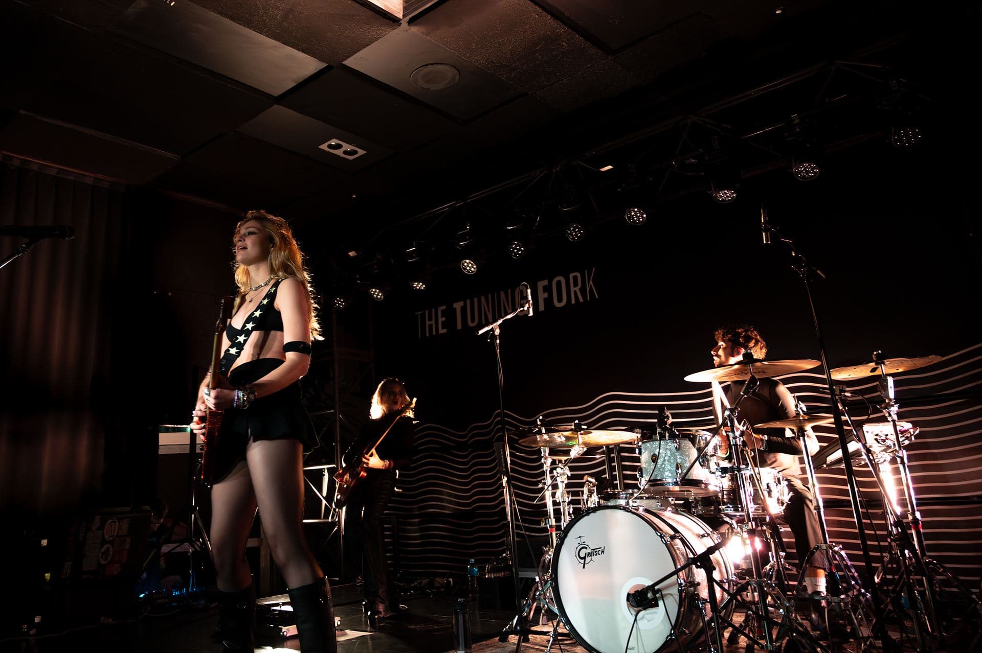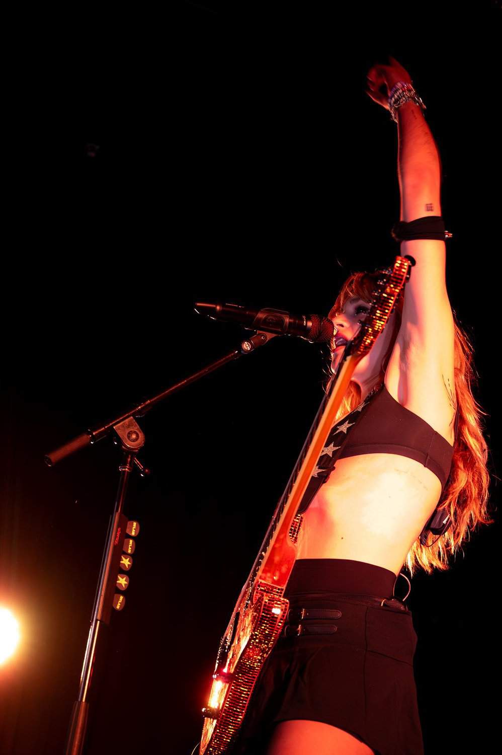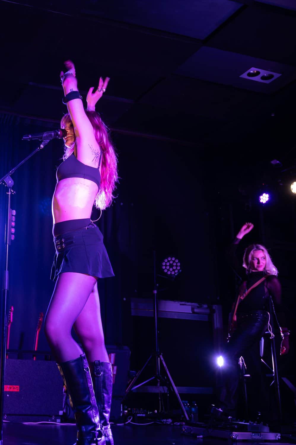 Dressed in a black bra, mini skirt and boots, Dylan also played guitar, although the sound I heard coming from the PA seemed to be much bigger and slicker than those three could have been expected to produce.