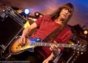 PM: Yeah, it’s like that initial spark: if it’s feeling good, we’ll just keep going with it. Usually, we’ll squeeze in two to four numbers, or something, and there were periods where we would actually do a few fairly short versions of things; but… when we play, we never really even know what we’re going to play. Jesper usually calls the thing, when we’re set up and ready to go. He’ll just start with the riff, and we’re like, “Okay, that one,” and it’ll just go on until some kind of vibe comes, “Okay, maybe it’s time to… get the landing gear open and do another one,” and sometimes it’s like, “No. We’ll just keep changing it,” and… different things will happen. Sometimes you’ll throw, in the middle, a riff from another song: we’ll be doing some kind of jam, and we’ll hear him starting up GOD – Lobby Lloyde and The Coloured Balls riff – and then that will become part of the same jam… we never know where it’s going.
