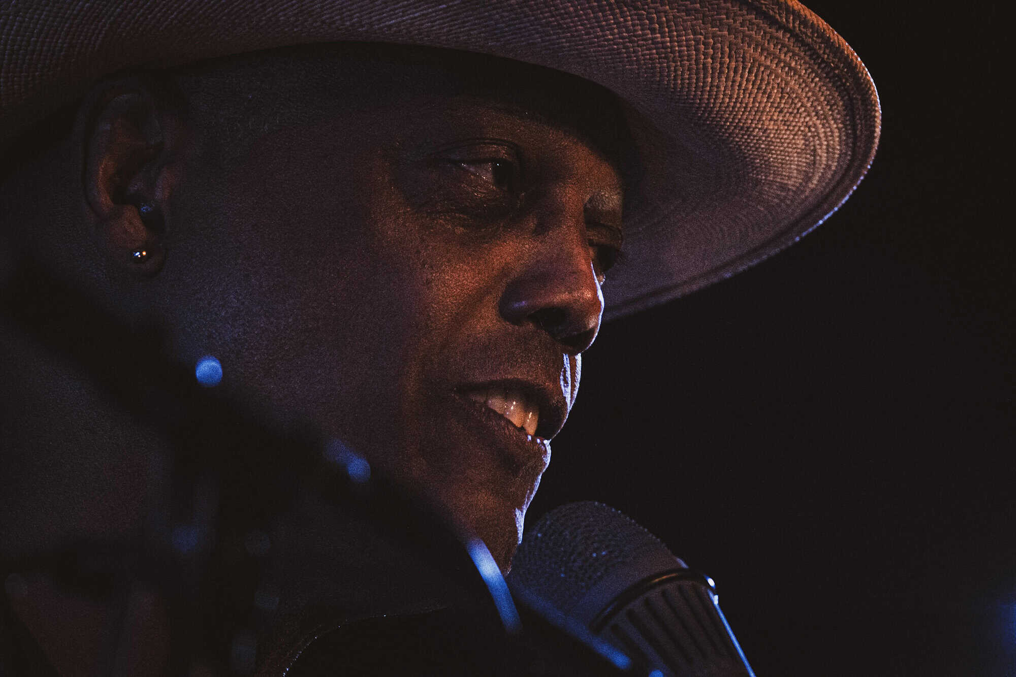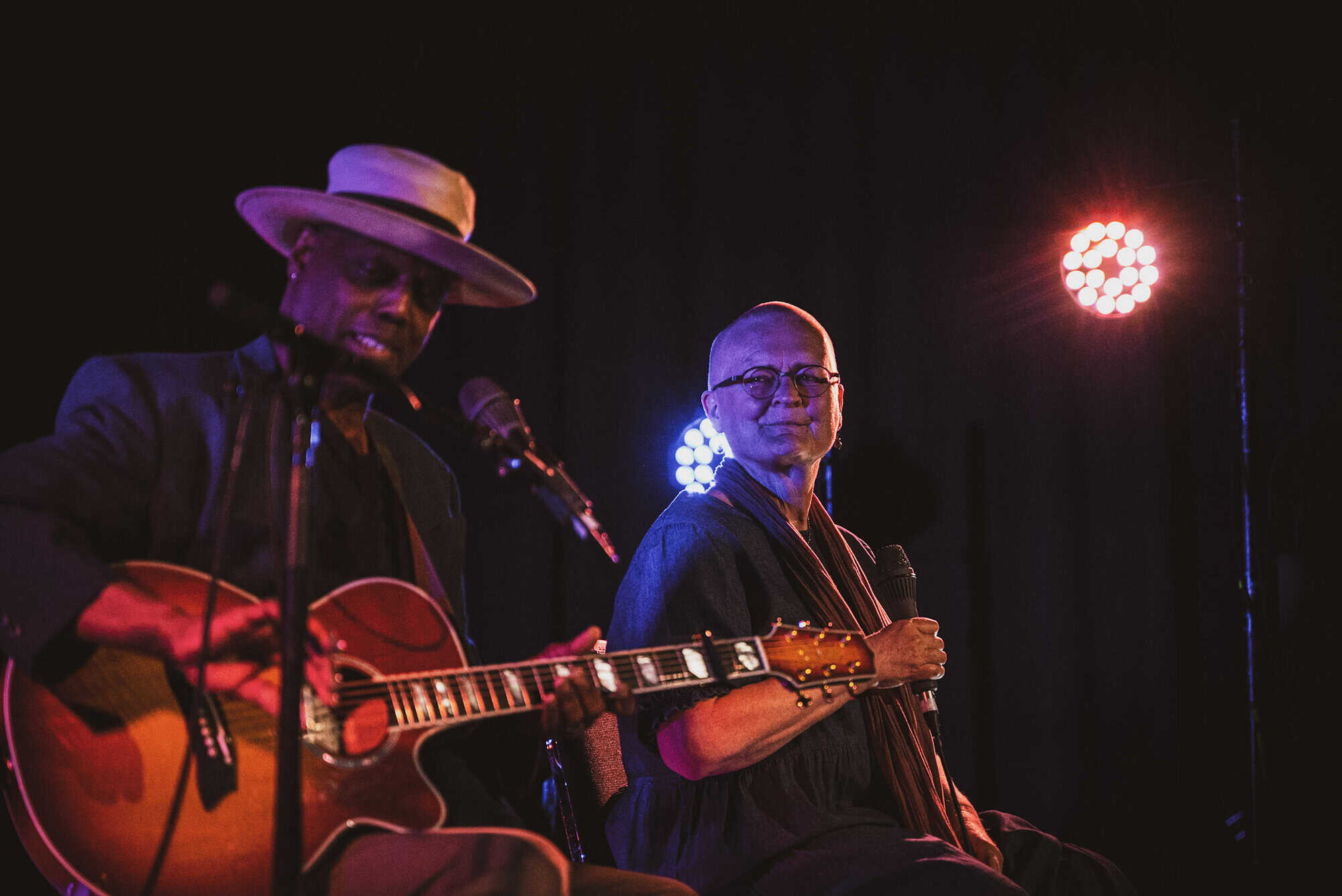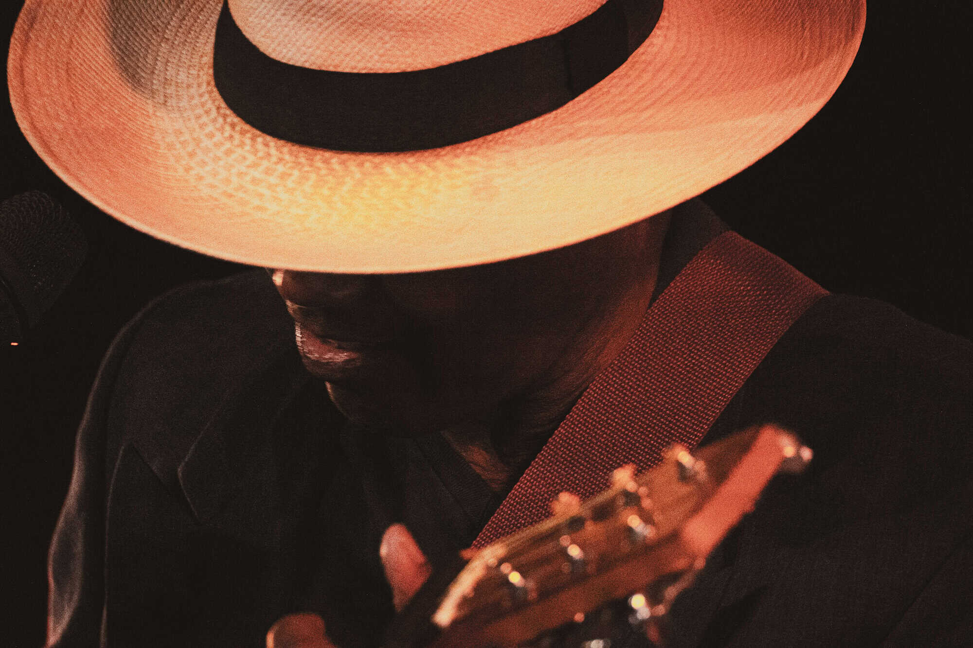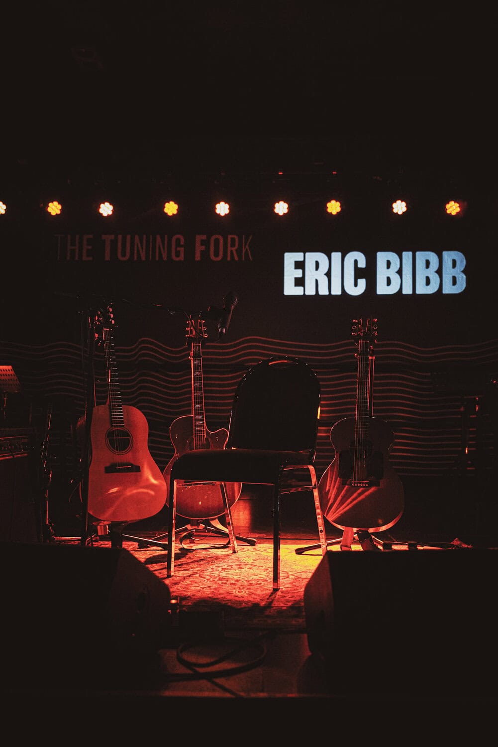 Three acoustic guitars surround one chair on stage. Just after 8pm, Eric Bibb walks through the crowd and up onto the stage. Tall, loose pants, straw hat, wide smile. No need for an opening act. The crowd mostly in their 60s are clearly only here for one man.