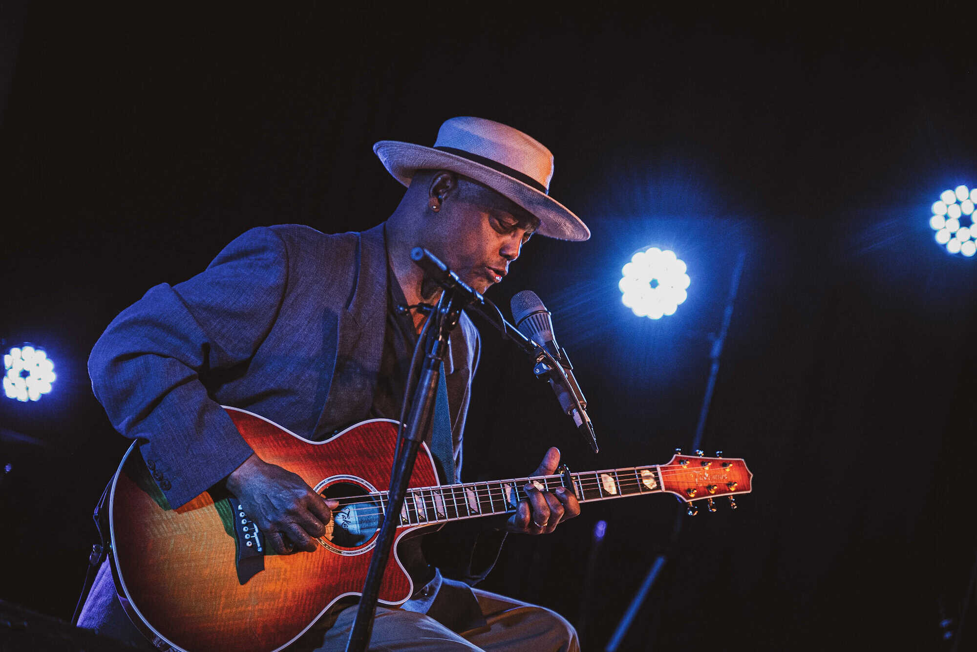 Bibb’s stage presence has warmth for a cold night. “This is the Tuning Fork, so I’m going to take my time tuning”, he says. “Tuning’s a bit like airplane maintenance; always worth it”. He’s captivating to watch.