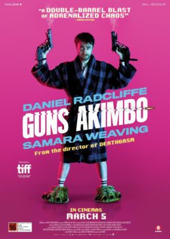 Guns Akimbo is a wildly entertaining 96-minute action-comedy film starring Daniel Radcliffe and Samara Weaving, overflowing with crass, unapologetically offensive dialogue and hilariously unflinching violence and gore.