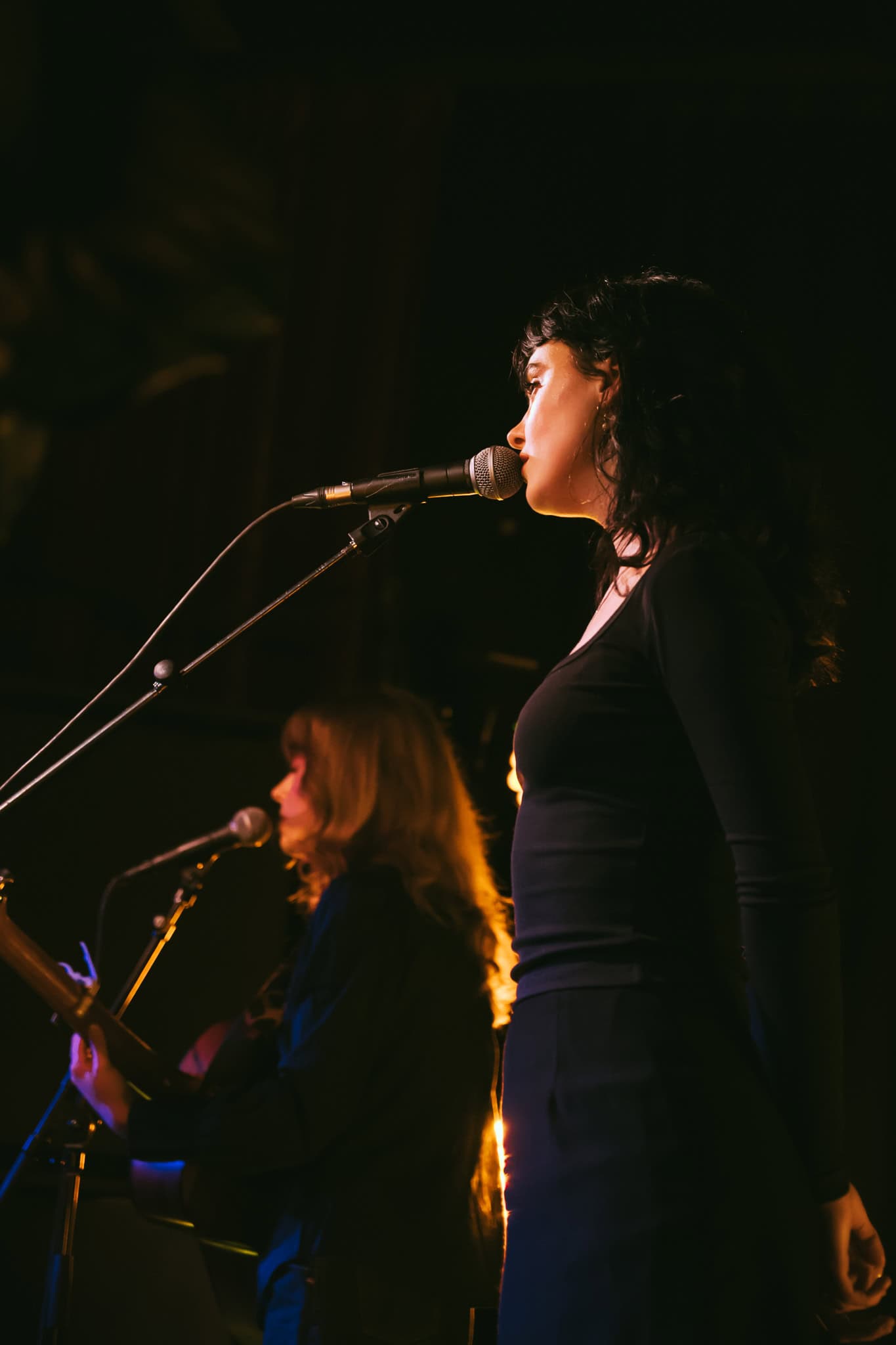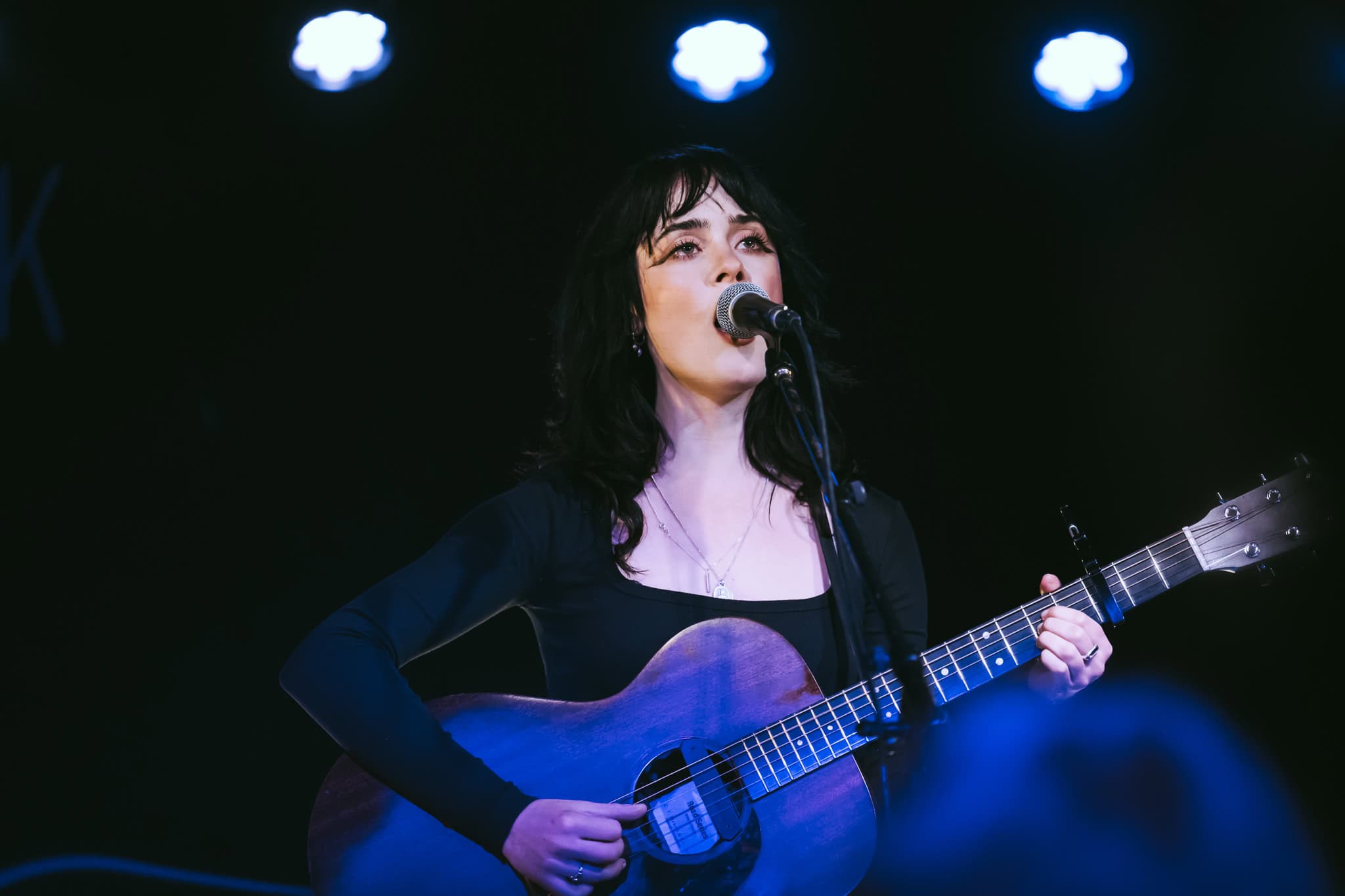 Jeanie and Heide bookend the three with guitars. Acoustic and electric, respectively. Jeanie leads out with second song Hotel TV. Heavenly harmonies, edgy lyrics.   I had a filthy dream/ To the noise of the hotel TV. Voices may be light, but no shying away from the dark. So too with The Actor. Astonishing harmonies replete with the lyrical barbs of an unravelling relationship.