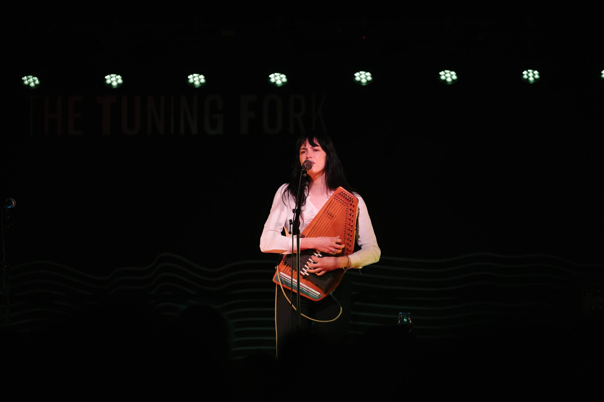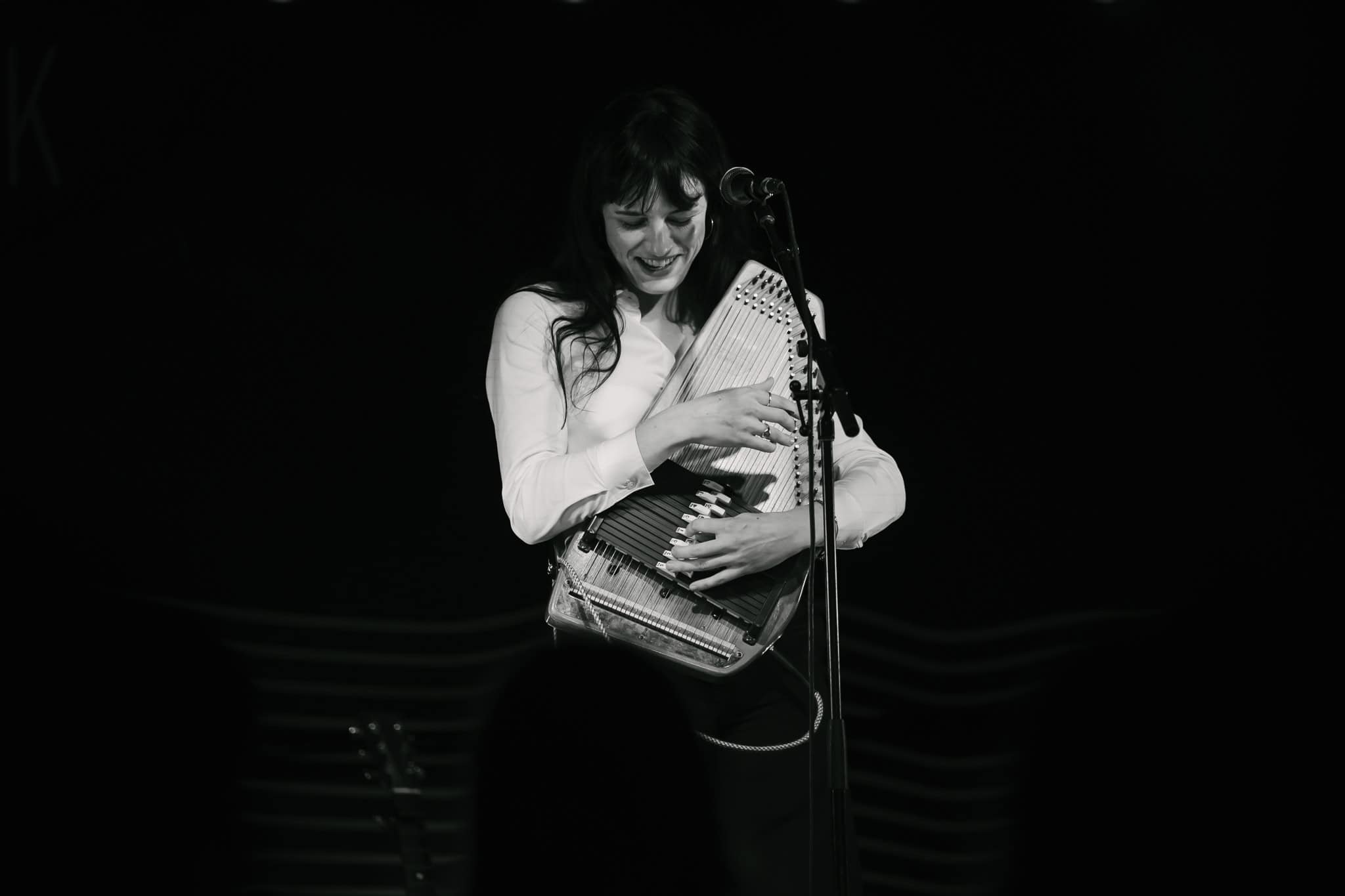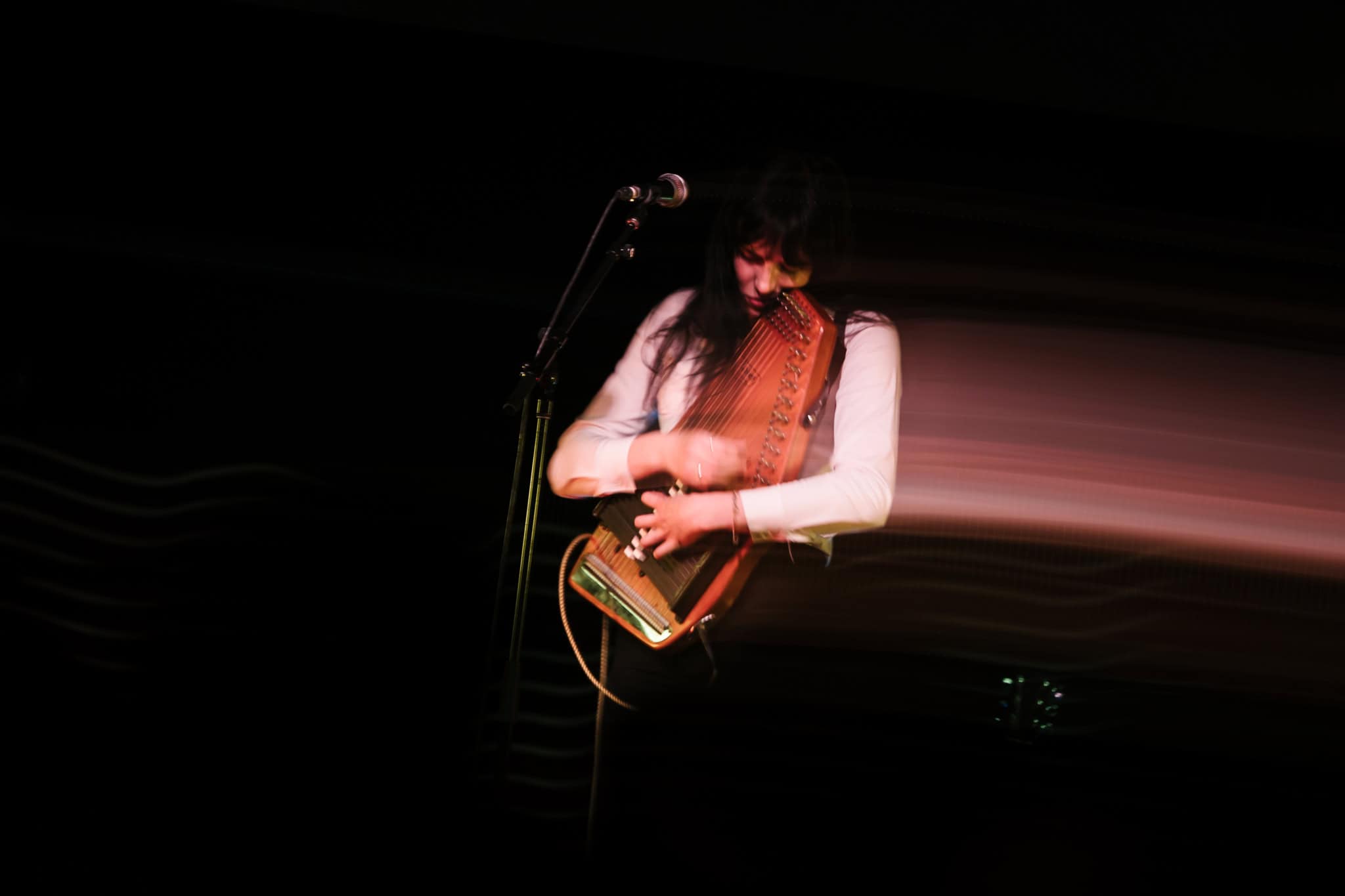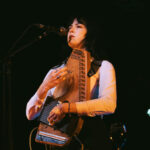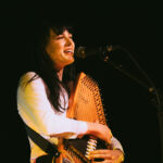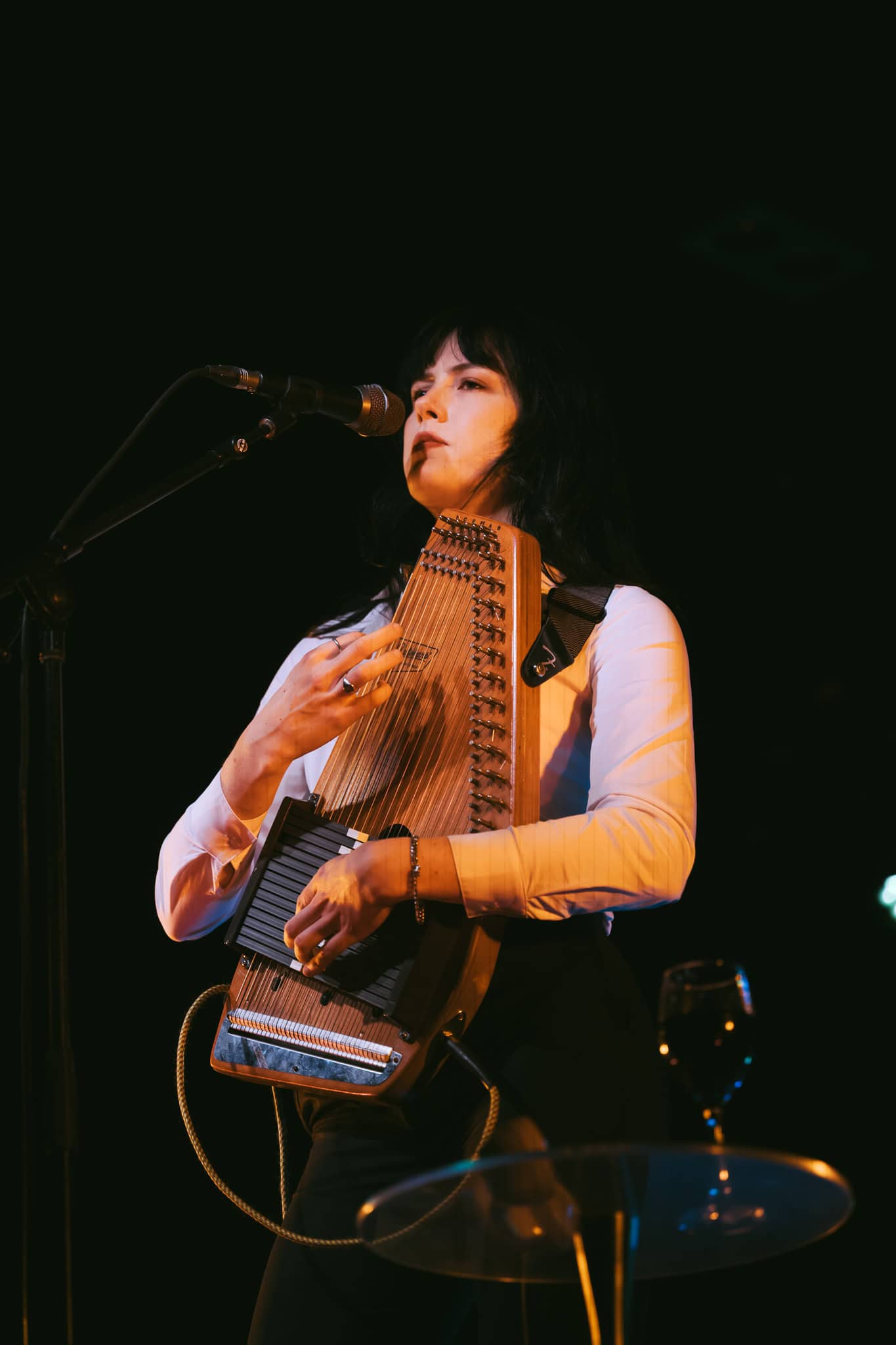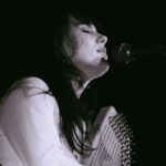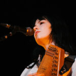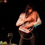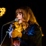 First up, though, its Georgia Knight. Walks on, takes off a puffer jacket and dons an autoharp. Holds it in affectionate embrace, whispering into the beginnings of first song Mingle. Spacious, atmospheric, mysterious sounds. Lyrics to match I’m looking for something to do/we can talk revolution/I say maybe. Something alluringly hypnotic in her repetitive strums.