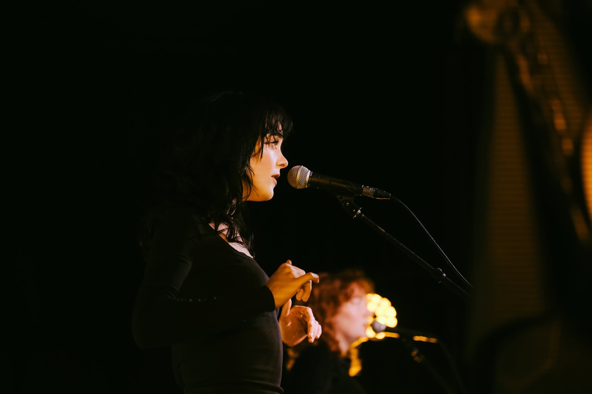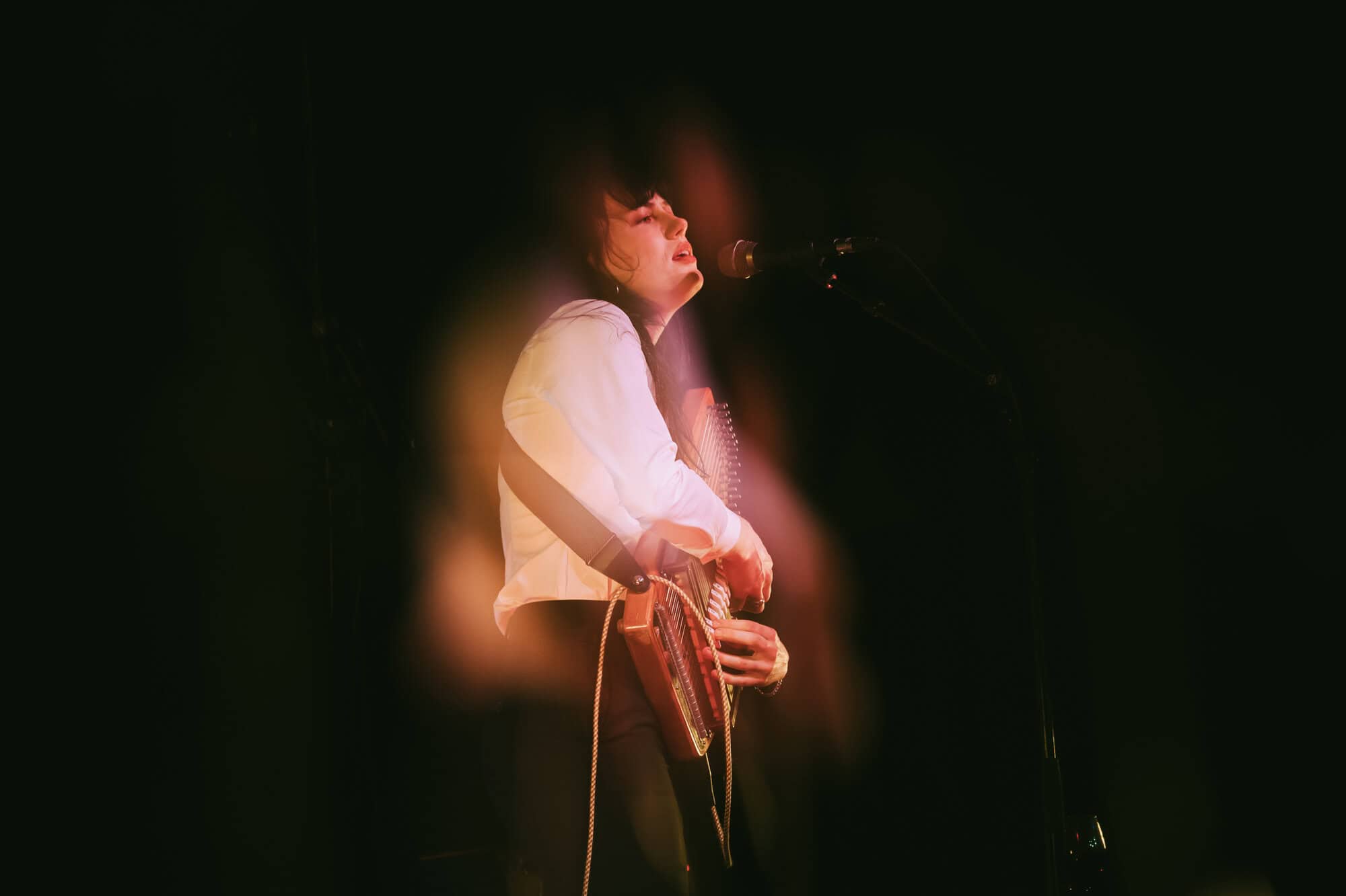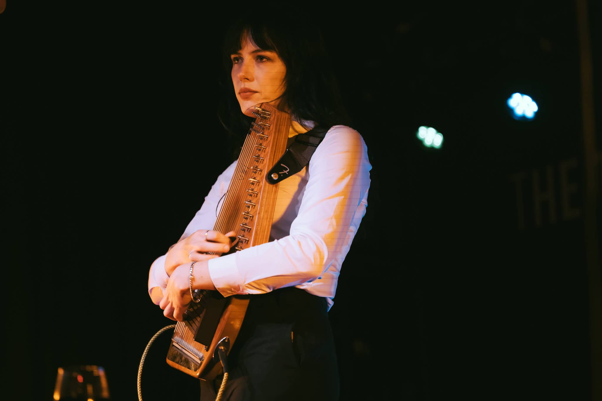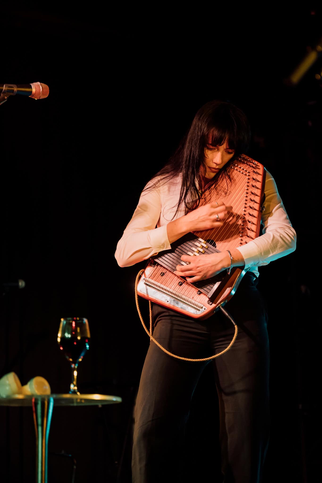 A sip of red wine and onto the next, Not Bad at All. An unusually attentive crowd for a support act. Deservedly so. A performance sufficiently different that allusions don’t come easily. And maybe shouldn’t. Hints of Kate Bush maybe. Moments of Aldous Harding with more rhythm and the occasional Patti Smith howl. But very much her own voice and presence.