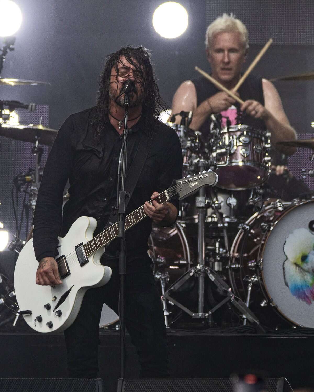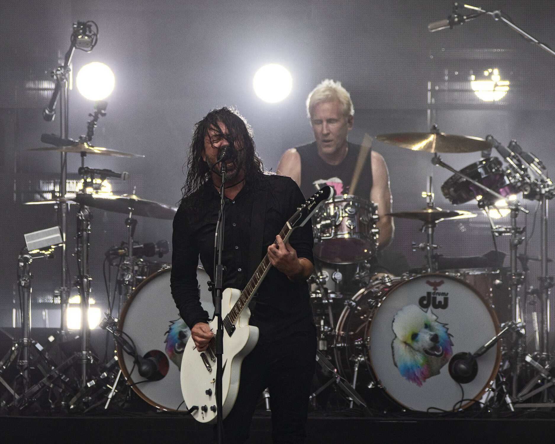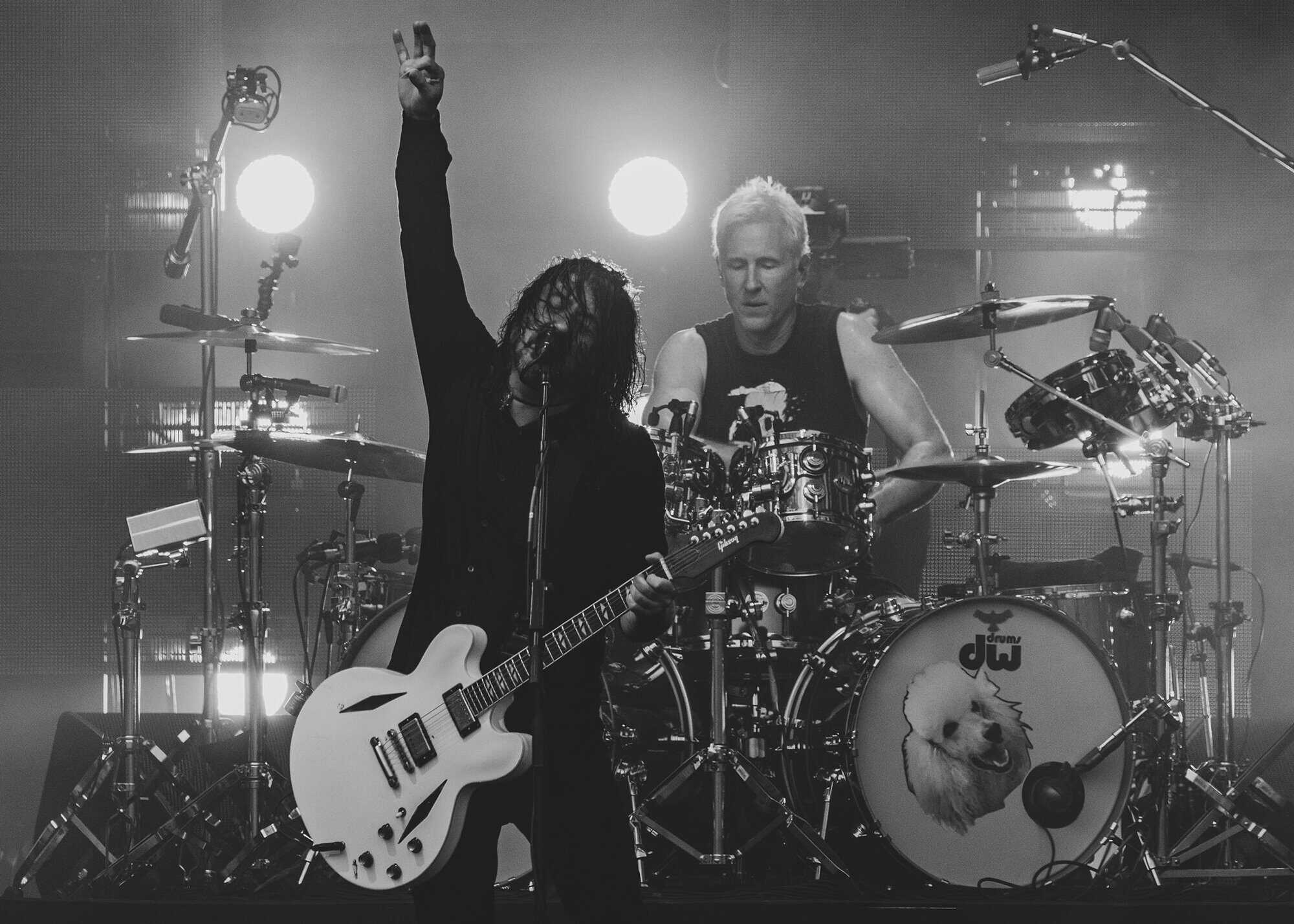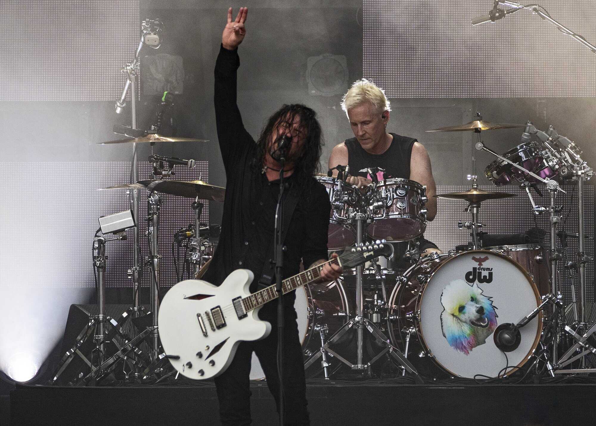 guitarists Chris Shiflett and Pat Smear, keyboard player Rami Jaffee, Nate Mendel on bass and Josh Freese, taking over for the late Taylor Hawkins on drums.