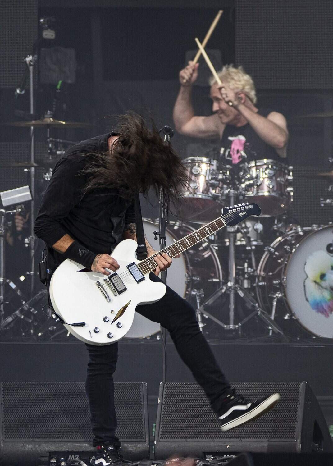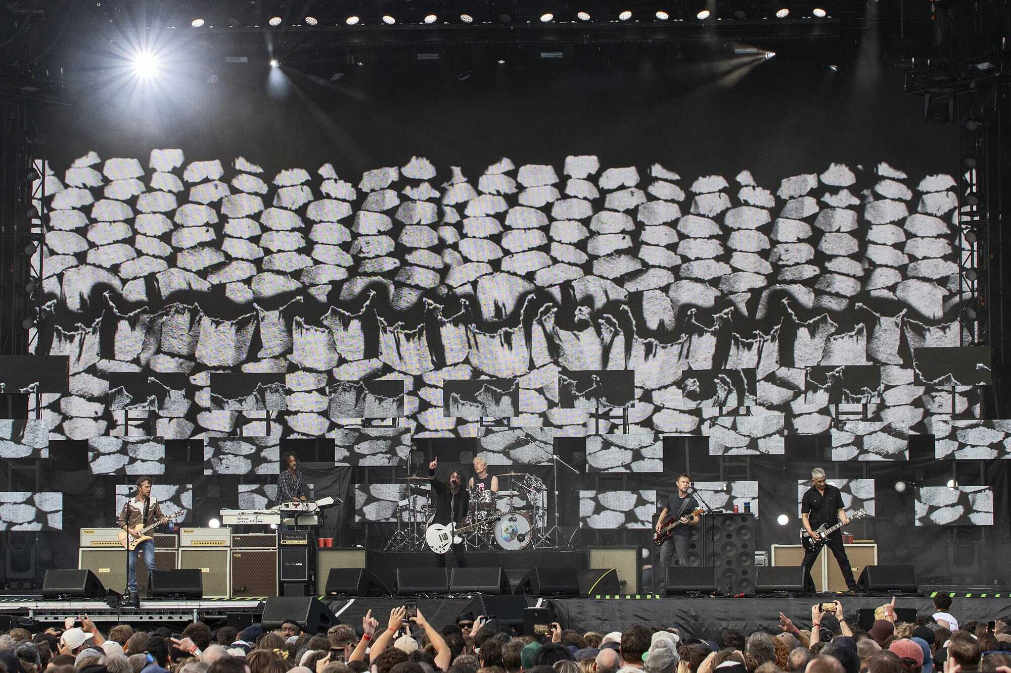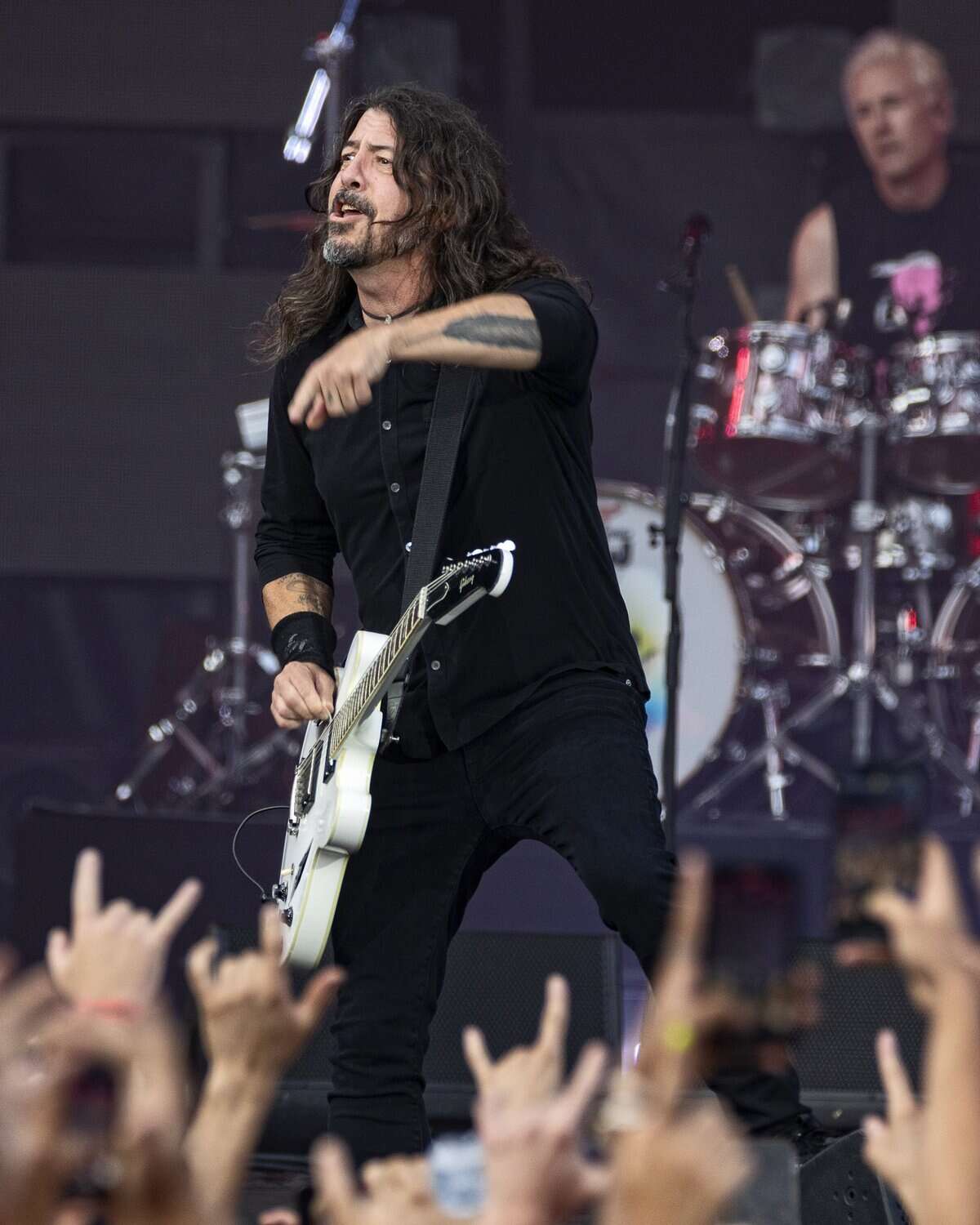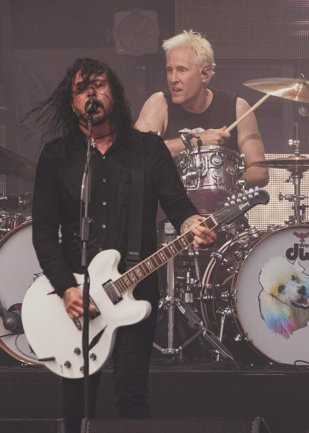 guitarists Chris Shiflett and Pat Smear, keyboard player Rami Jaffee, Nate Mendel on bass and Josh Freese, taking over for the late Taylor Hawkins on drums.