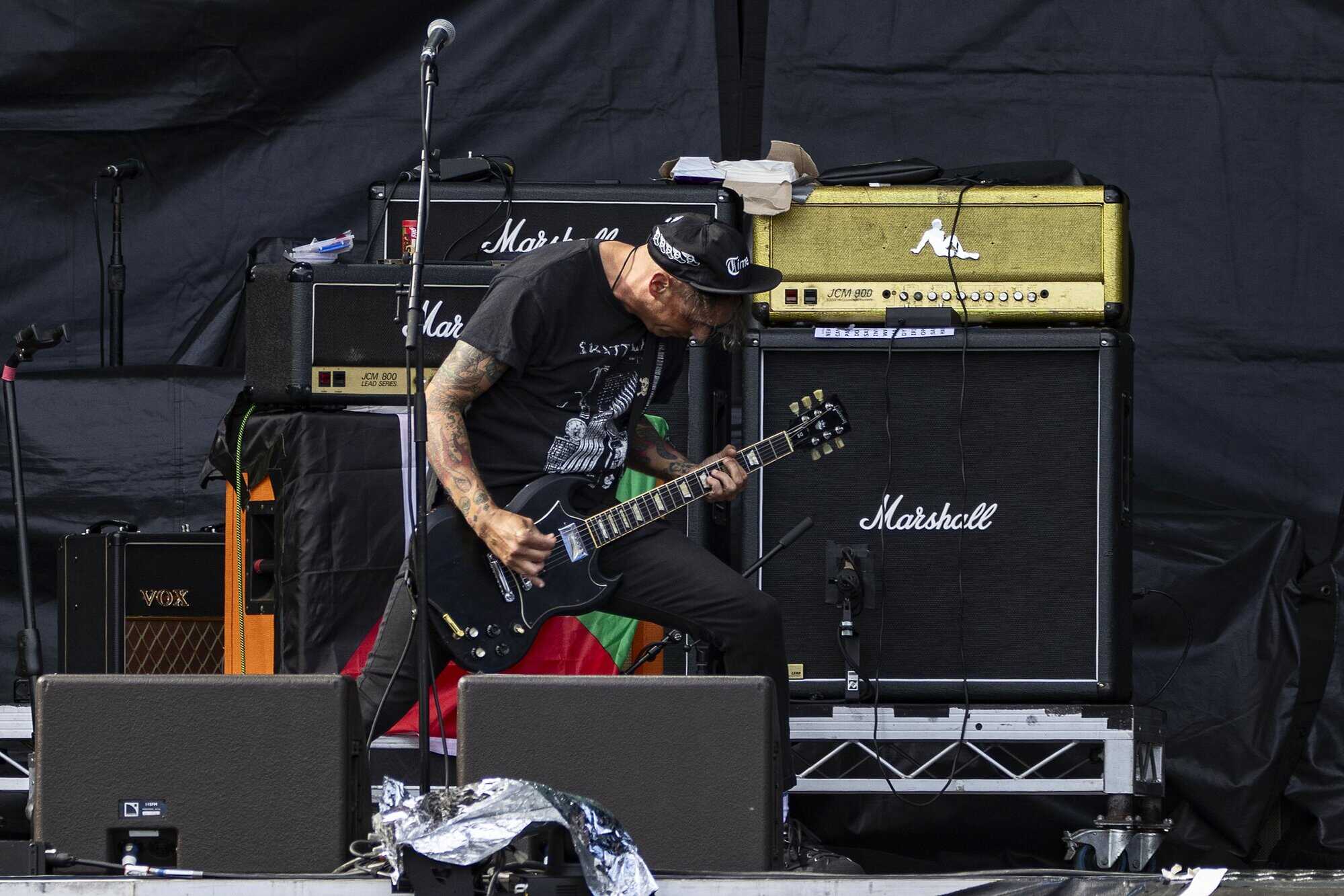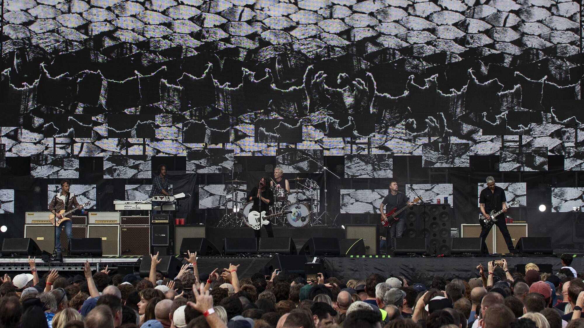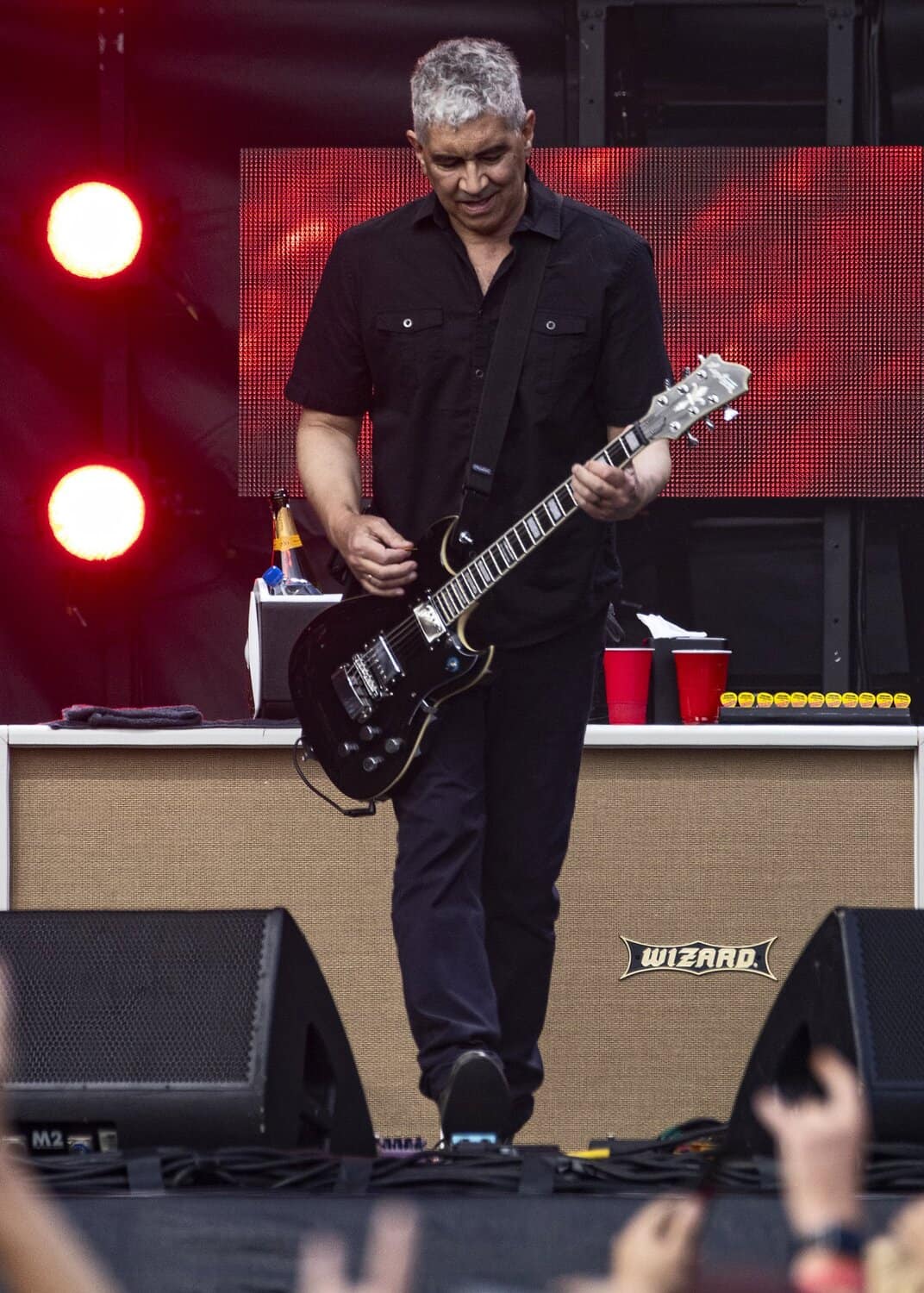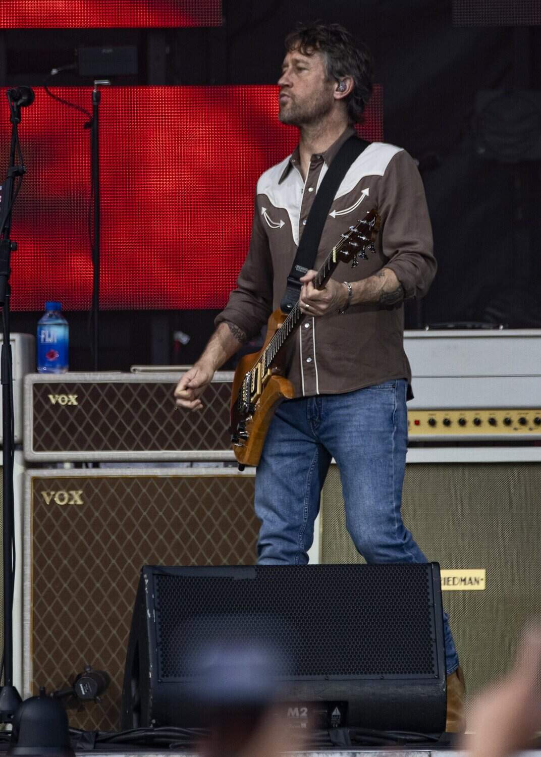 guitarists Chris Shiflett and Pat Smear, keyboard player Rami Jaffee, Nate Mendel on bass and Josh Freese, taking over for the late Taylor Hawkins on drums.