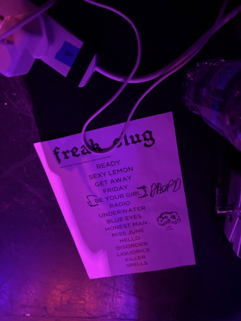 The Tuning Fork provided a fan friendly setting for Freak Slug’s Auckland debut. The lighting was minimal and sympathetic to the music, while the sound leaned toward raw grunge and punky textures—guitars roaring, vocals slightly buried, echoing her DIY roots. The crowd was highly attentive, responding with enthusiasm and matching the band’s energy as the night developed.