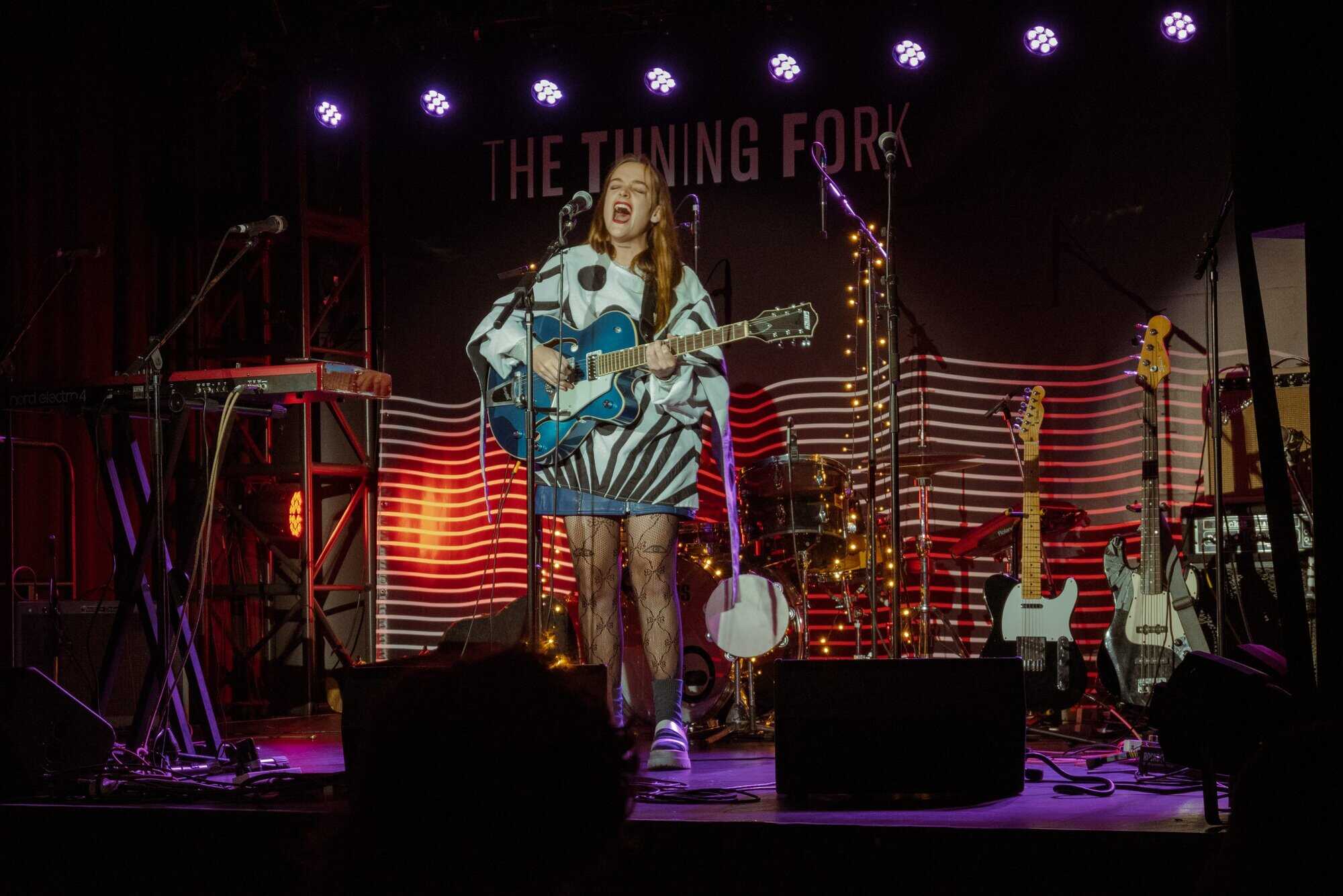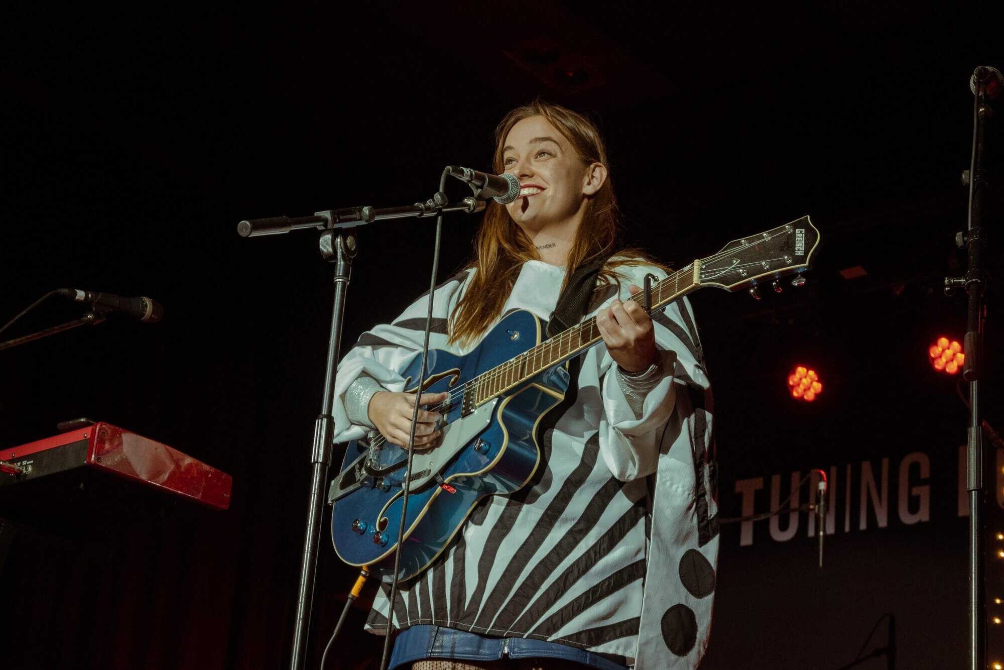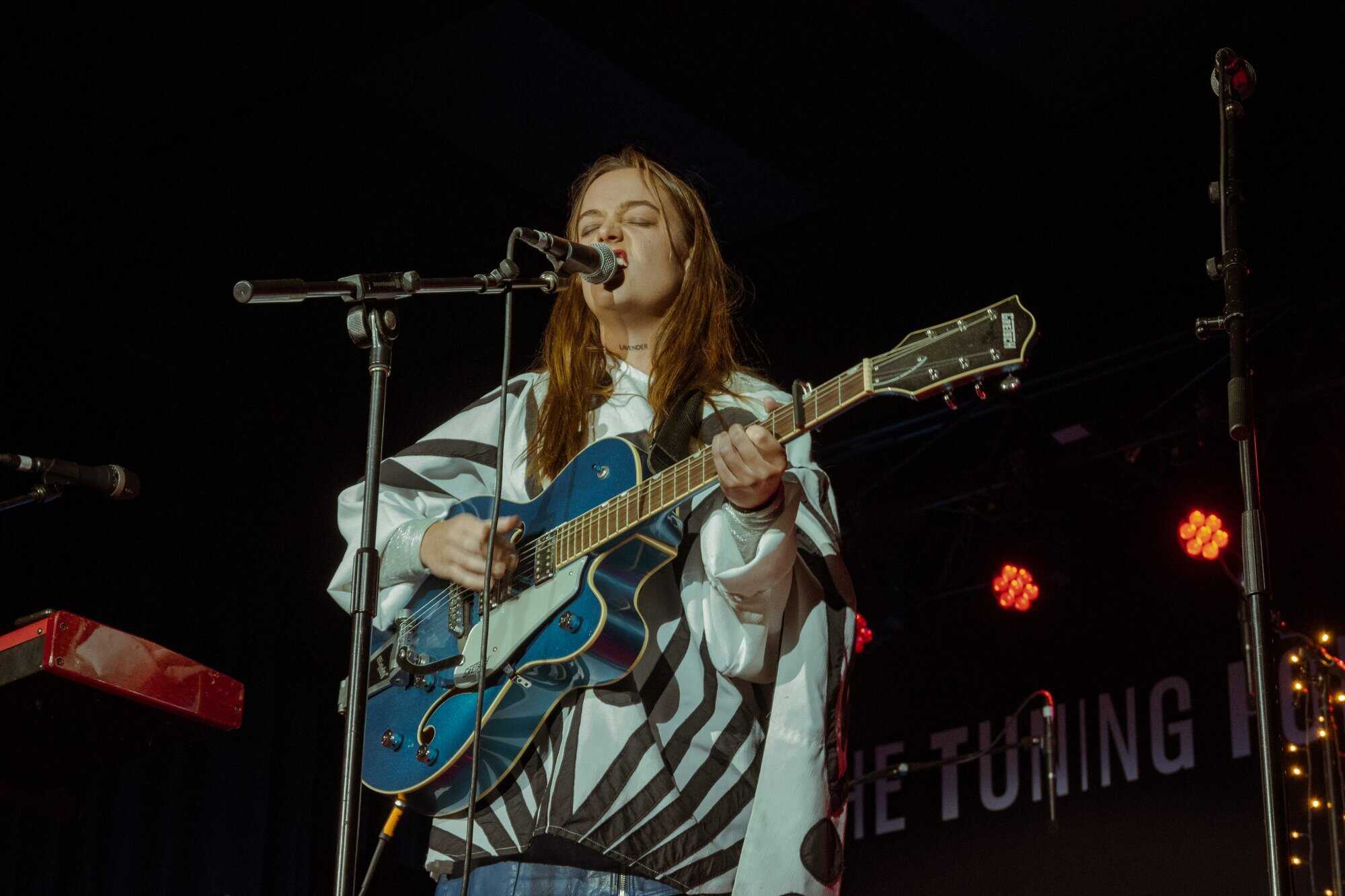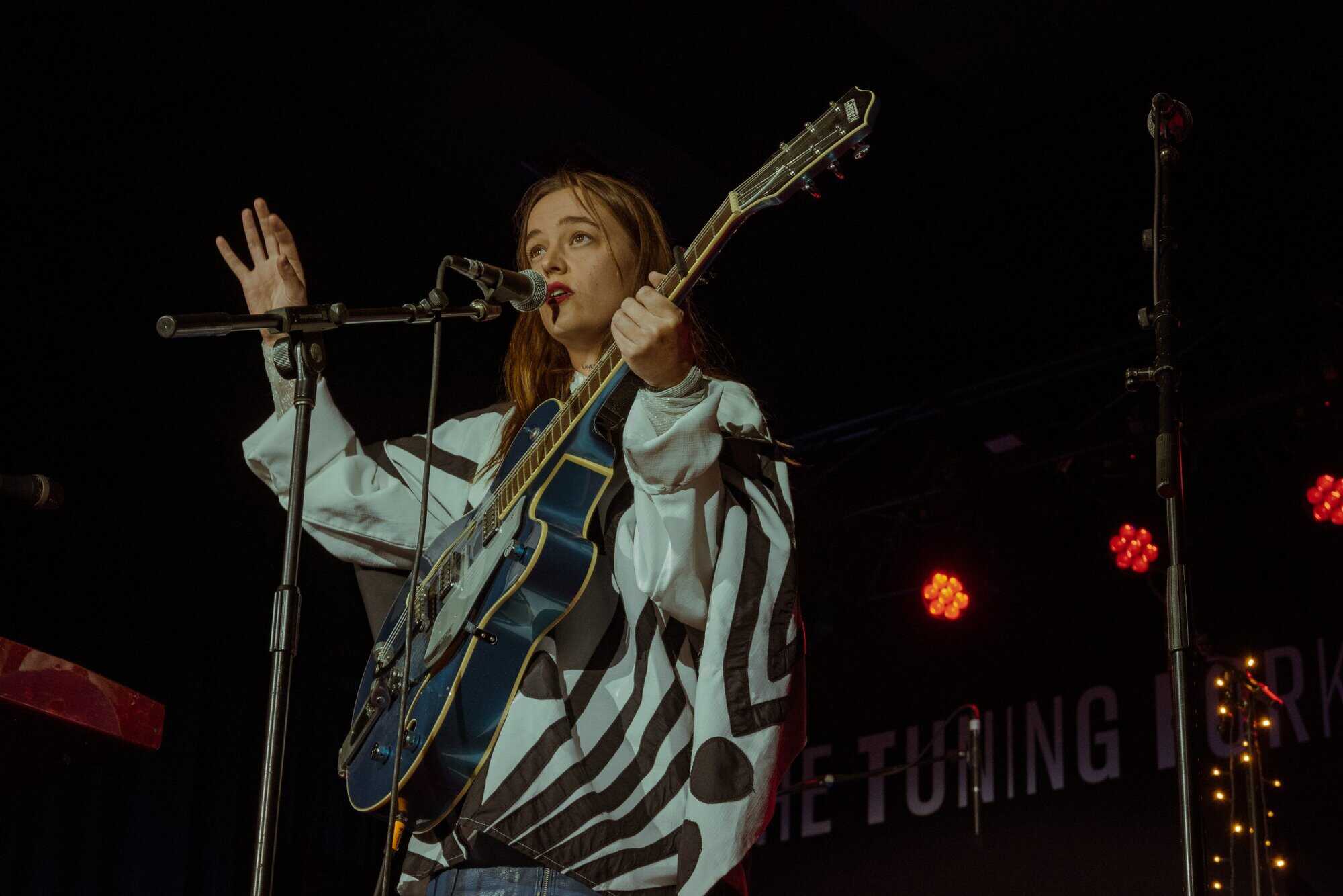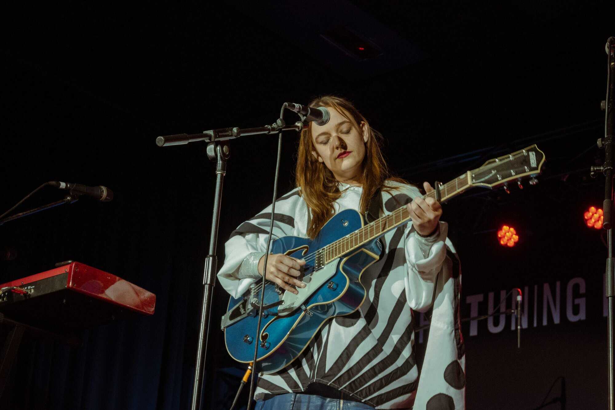 works with Fables as a producer, seems like a perfect fit for the concert. Supported only by a beautiful big Gretsch jazz guitar, which matches her fabulous polka-dot blue and white outfit, she holds the audience with delicate vocals and draws attention to her intricately crafted lyrics.