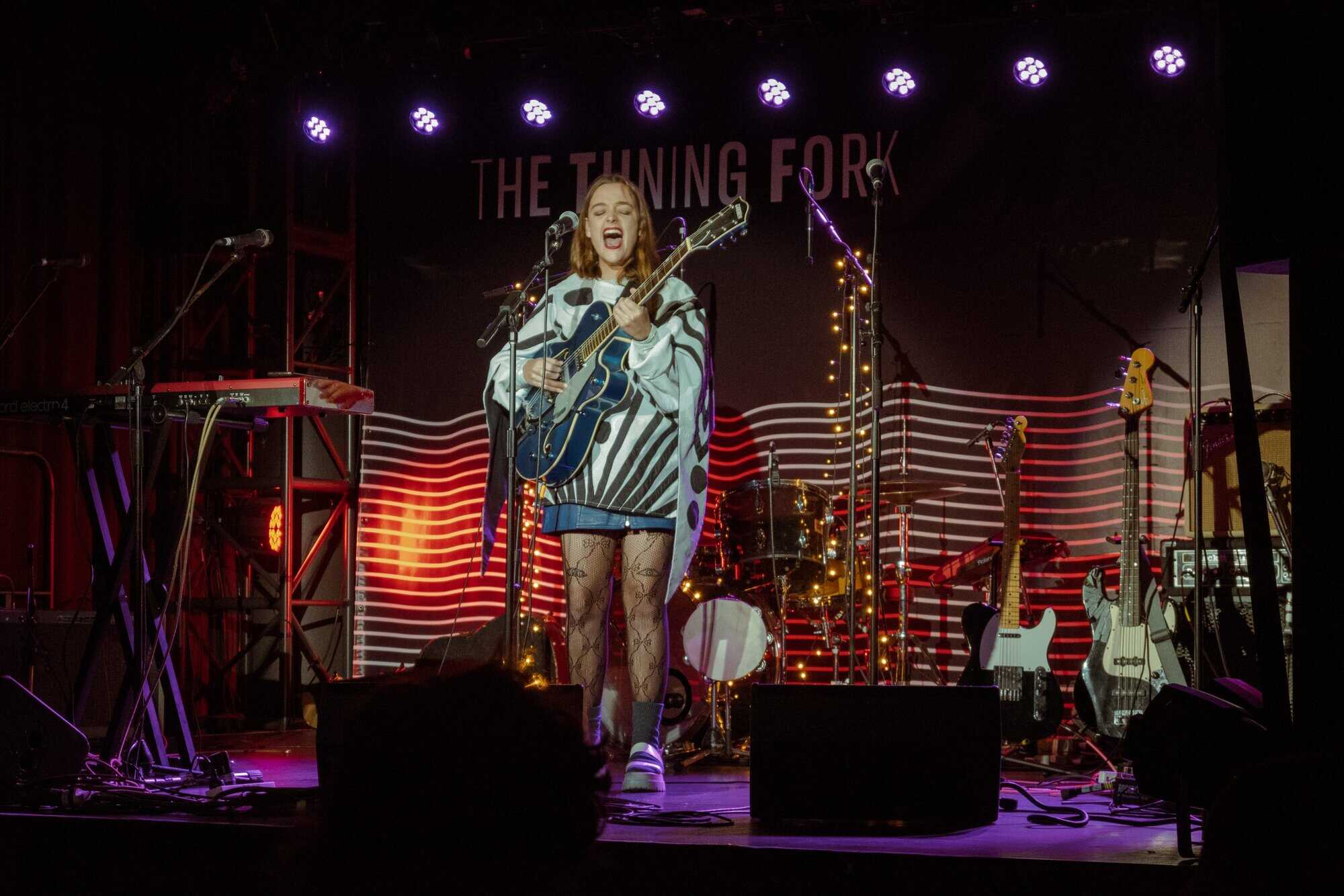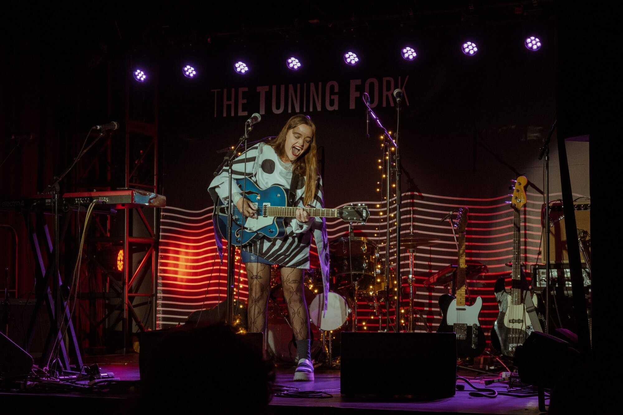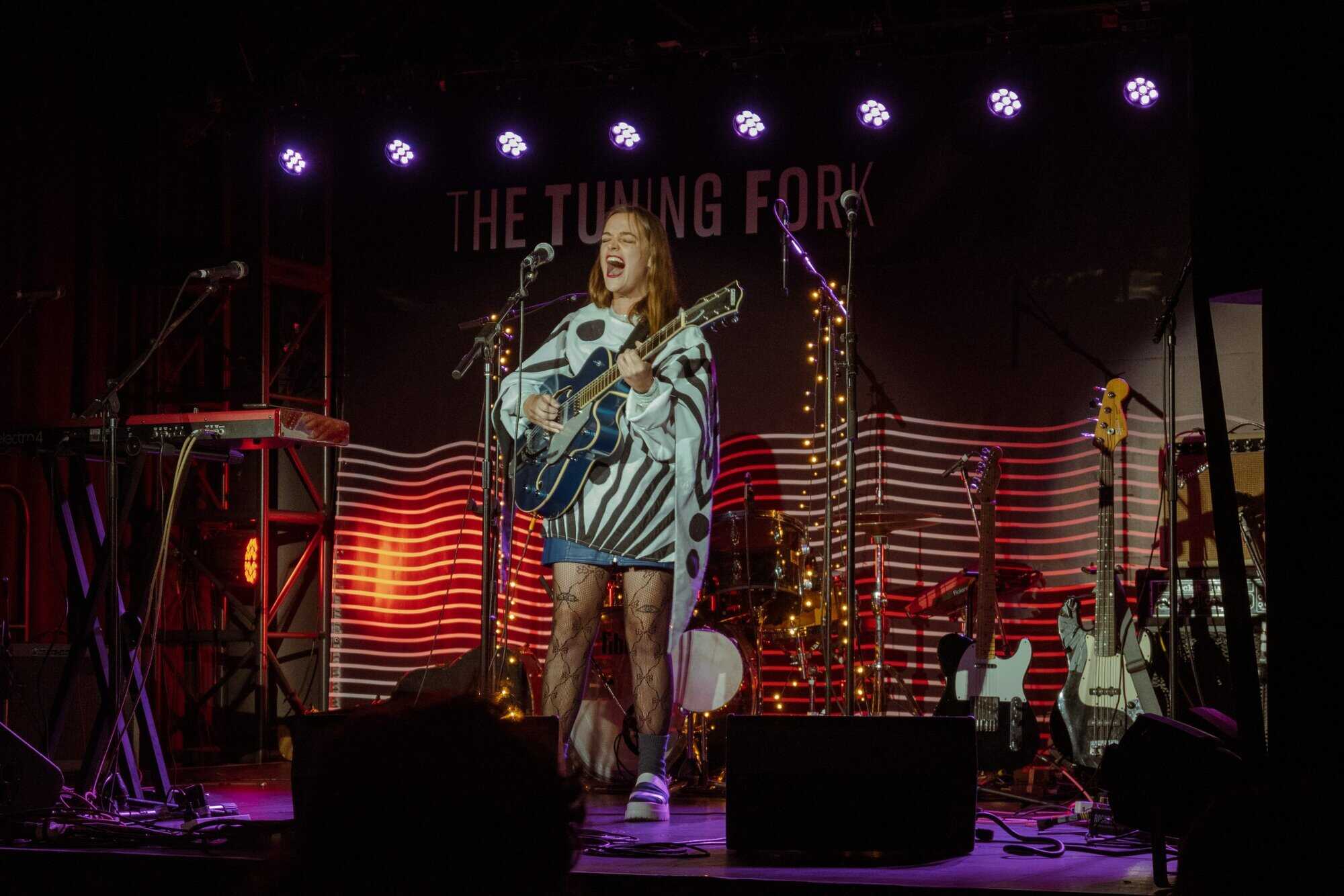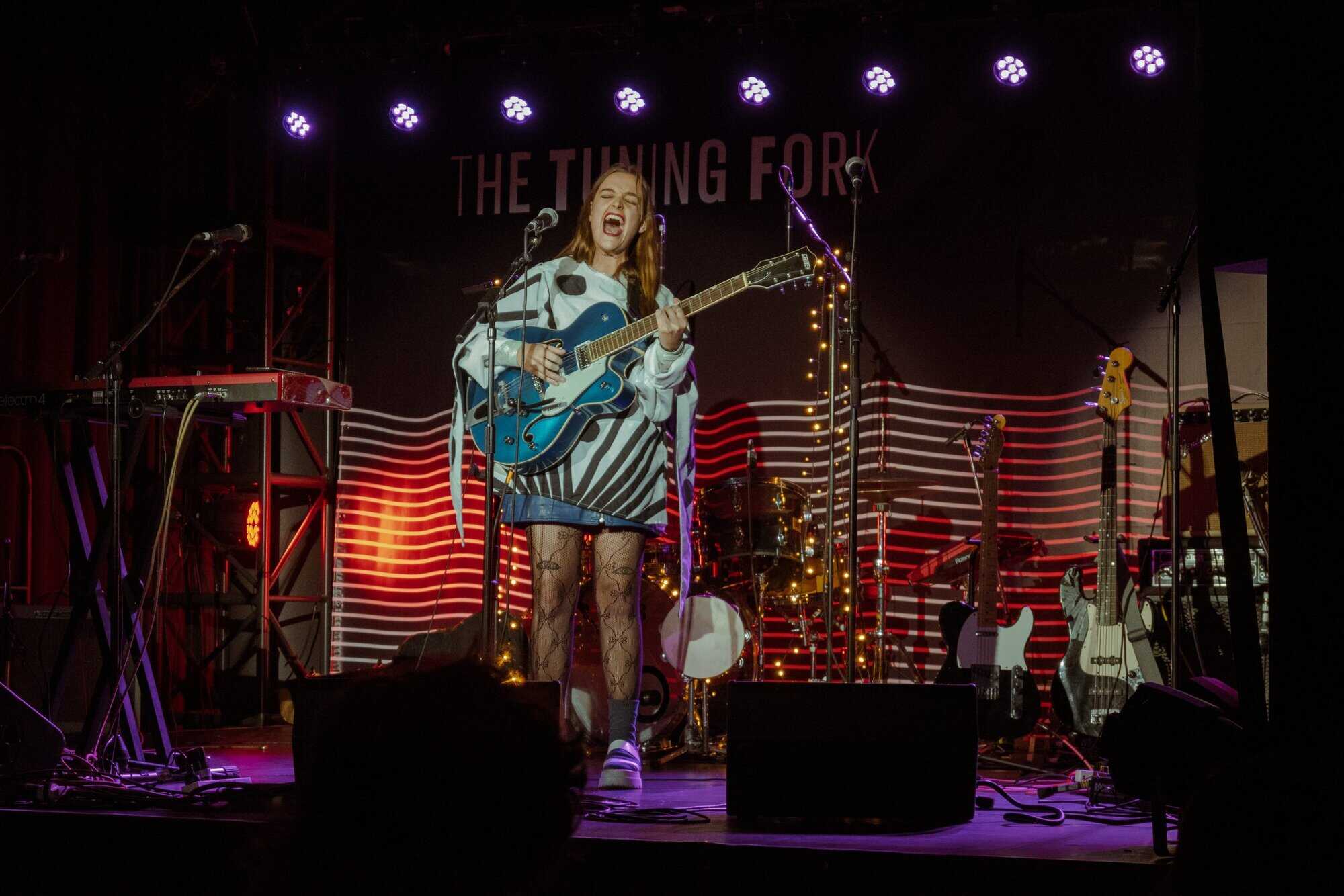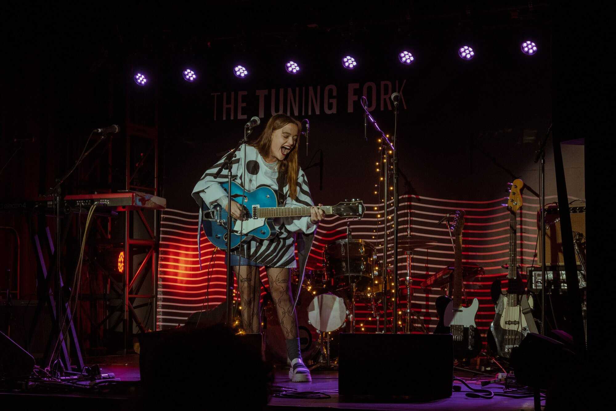 works with Fables as a producer, seems like a perfect fit for the concert. Supported only by a beautiful big Gretsch jazz guitar, which matches her fabulous polka-dot blue and white outfit, she holds the audience with delicate vocals and draws attention to her intricately crafted lyrics.