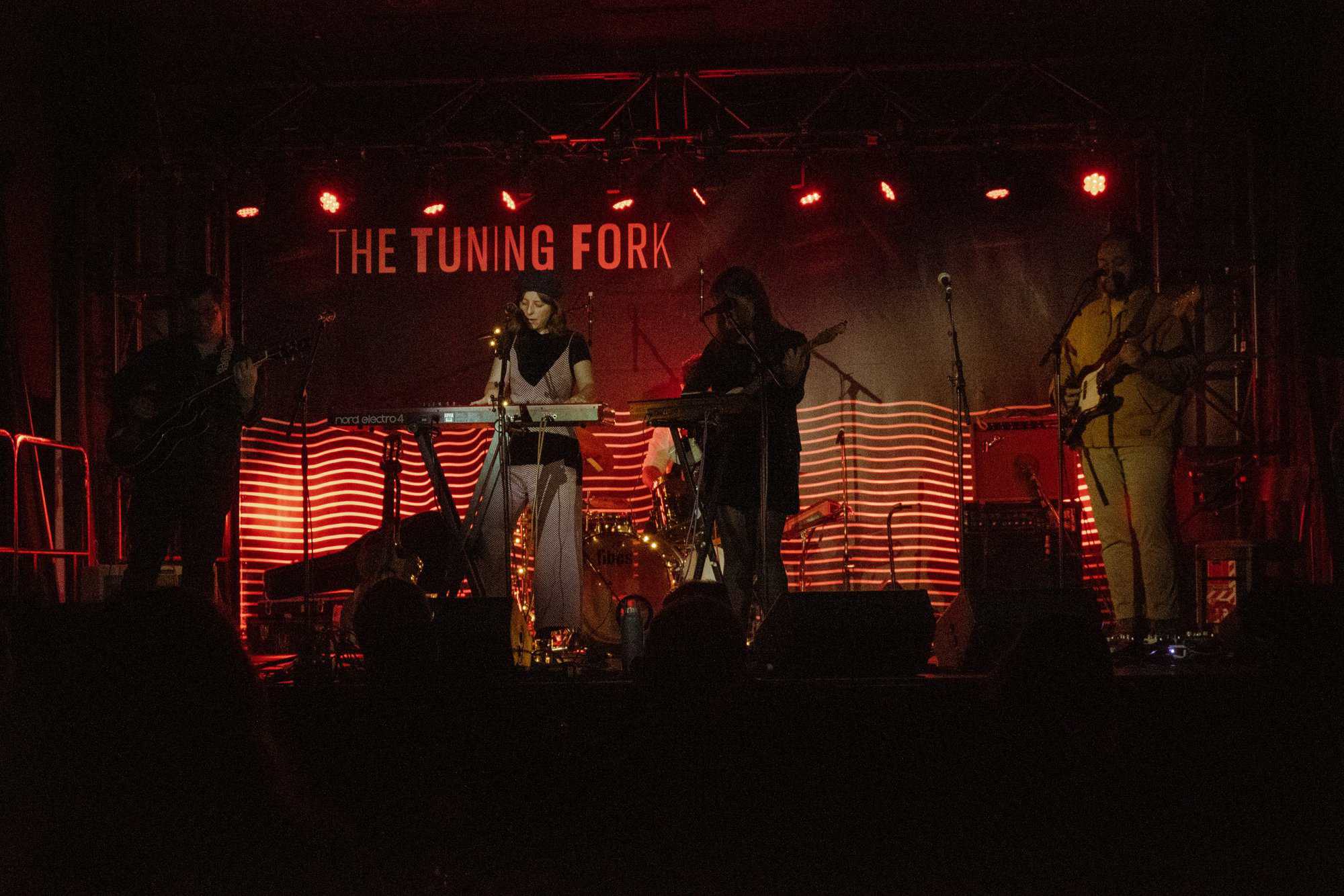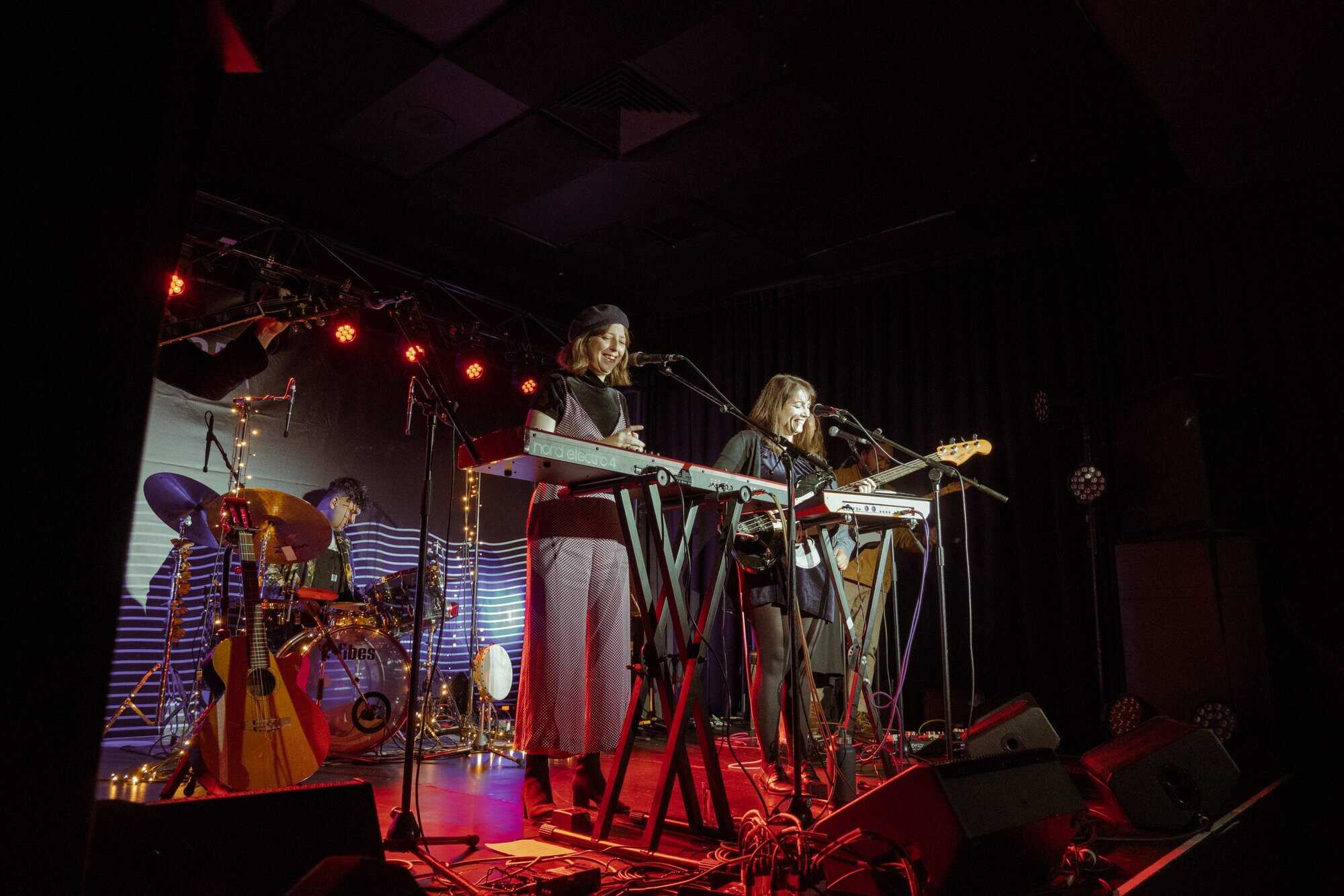 Bells ring in the start of the French For Rabbits set. John Fitzgerald sets the set’s tone with his reverb-soaked guitar while Brooke Singer holds the tempo and tone of the performance in check with keys and vocals. The band’s set is full of interesting production elements brought to the stage by Penelope Esplin who also holds down the bass and backing vocals. Additional backing vocals are supplied by Letitia Mackenzie and Ben Lemi, also on additional guitar, bringing the total vocal count to a whopping four-part harmony. Hikurangi Schaverien-Kaa might be one of the most sensitive drummers I’ve run into yet, adding just the right amount of groove and structure to the band’s sensitive music. He brings all kinds of intriguing percussion to the sound which really shines towards the end of the set.