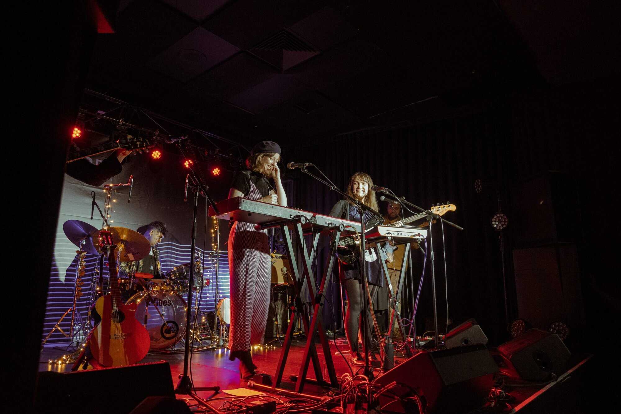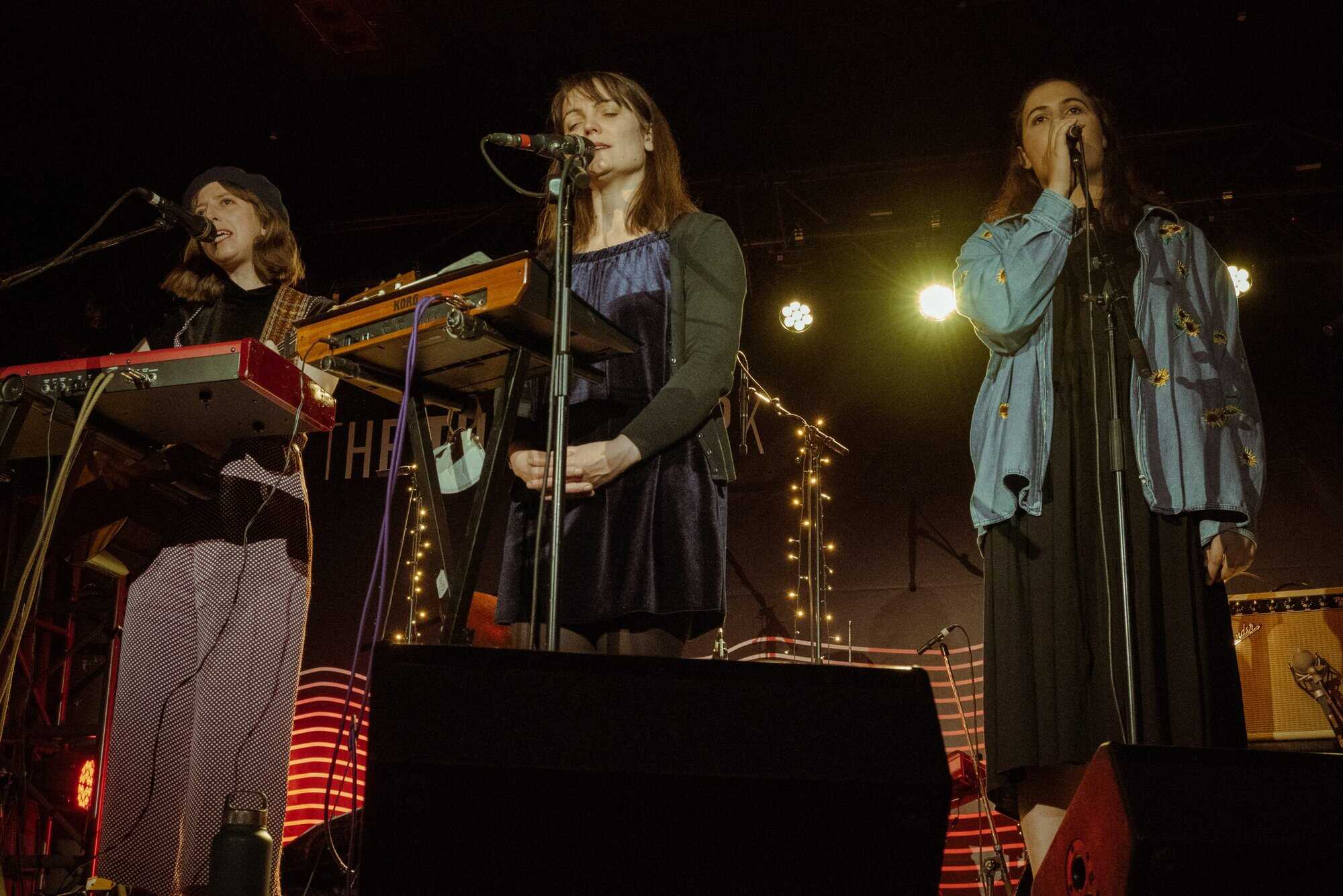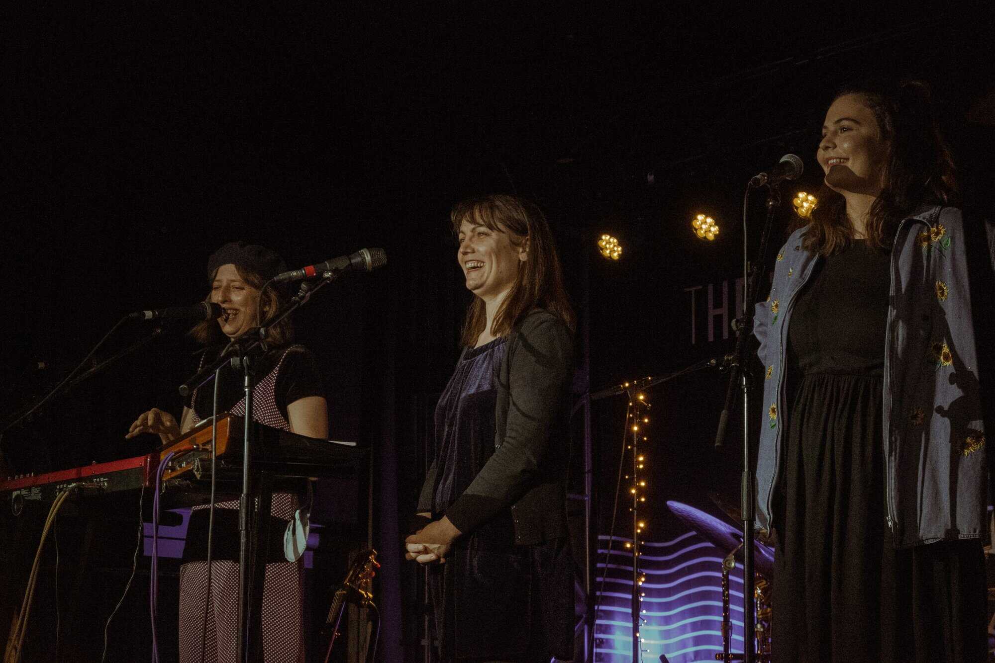 Ben, John, and Hikurangi leave the stage for the three women to sing two numbers by themselves. It’s in the Bag is performed by “just the girls because it’s a bit of a feminist number” followed by a song about leeches. The rest of the band enters the stage again to play “more songs about anxiety which seems to be a bit of a common theme in this album”.